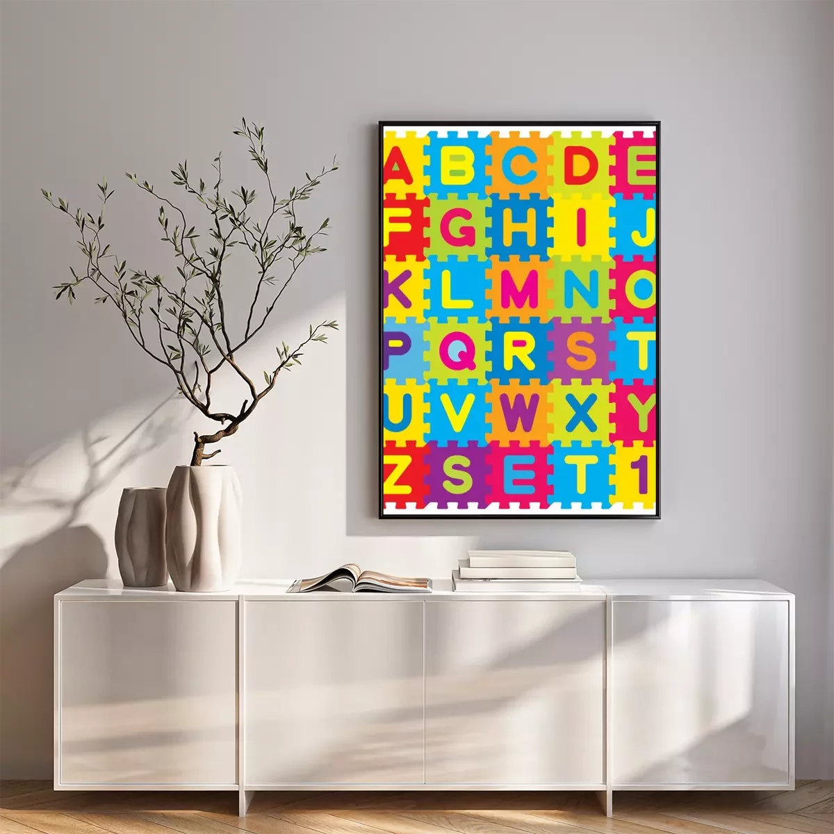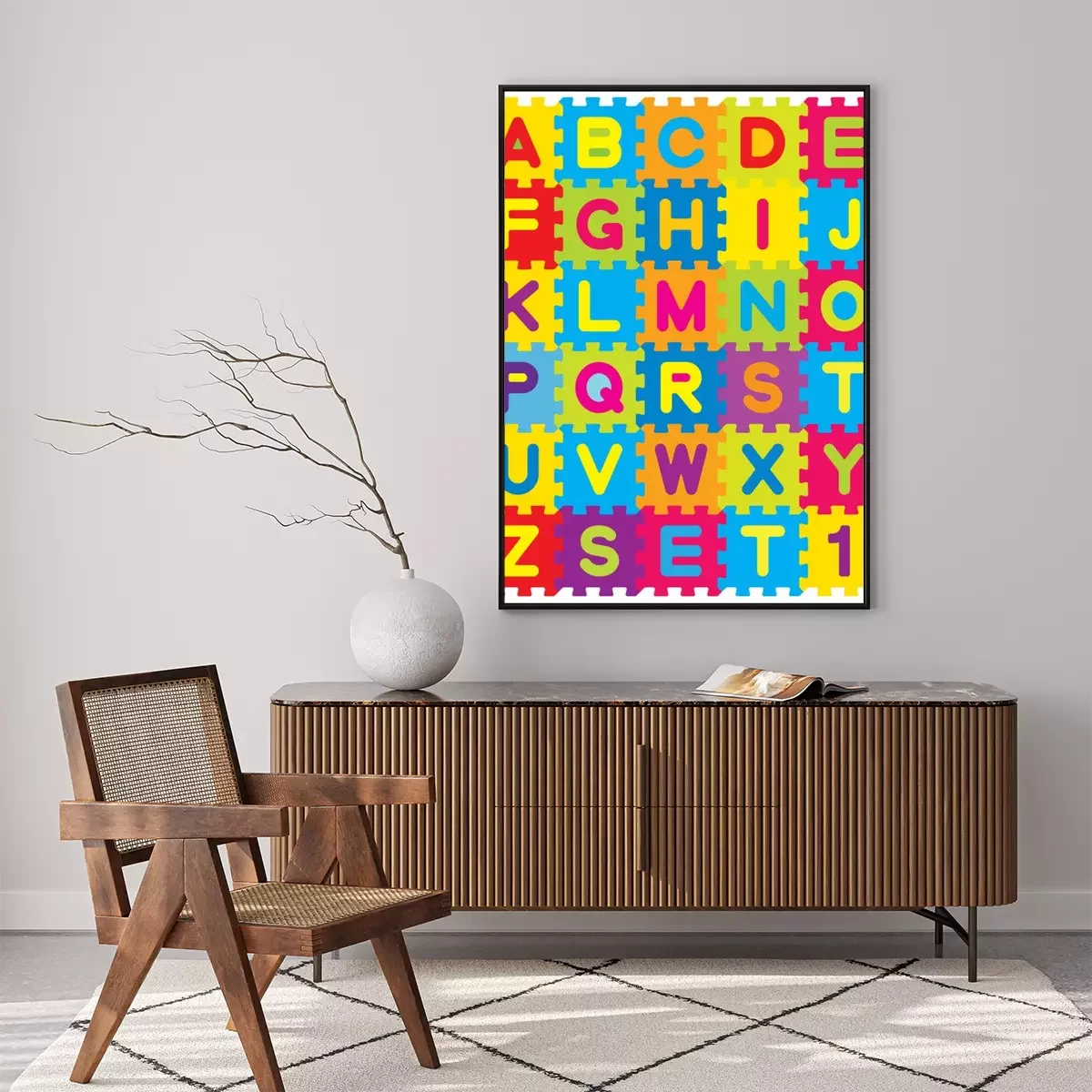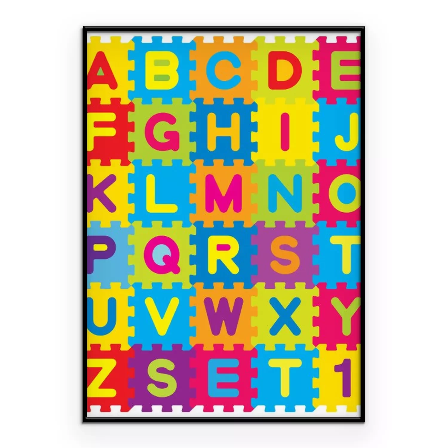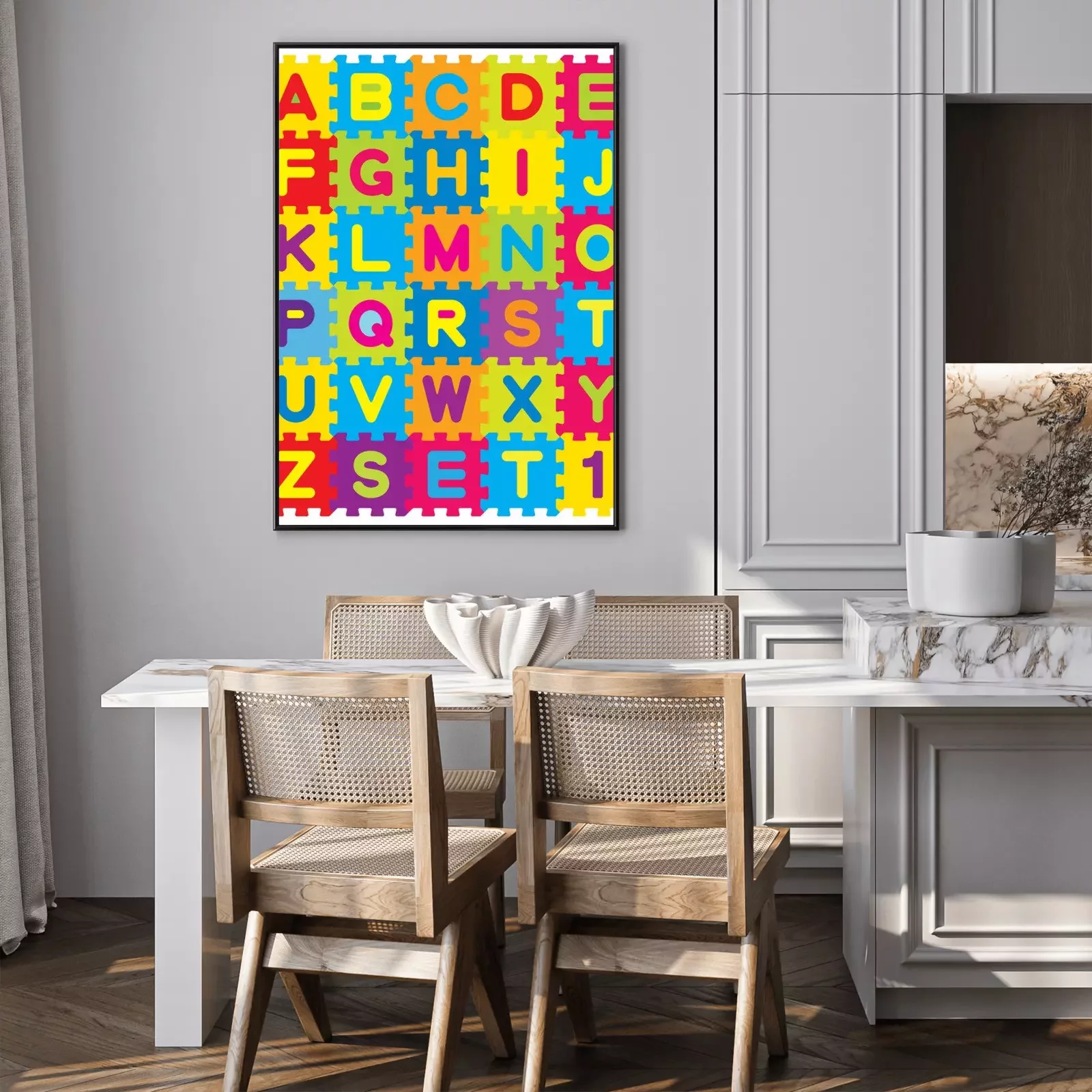 Poster : Alphabet coloré sur des pièces de puzzle connectées