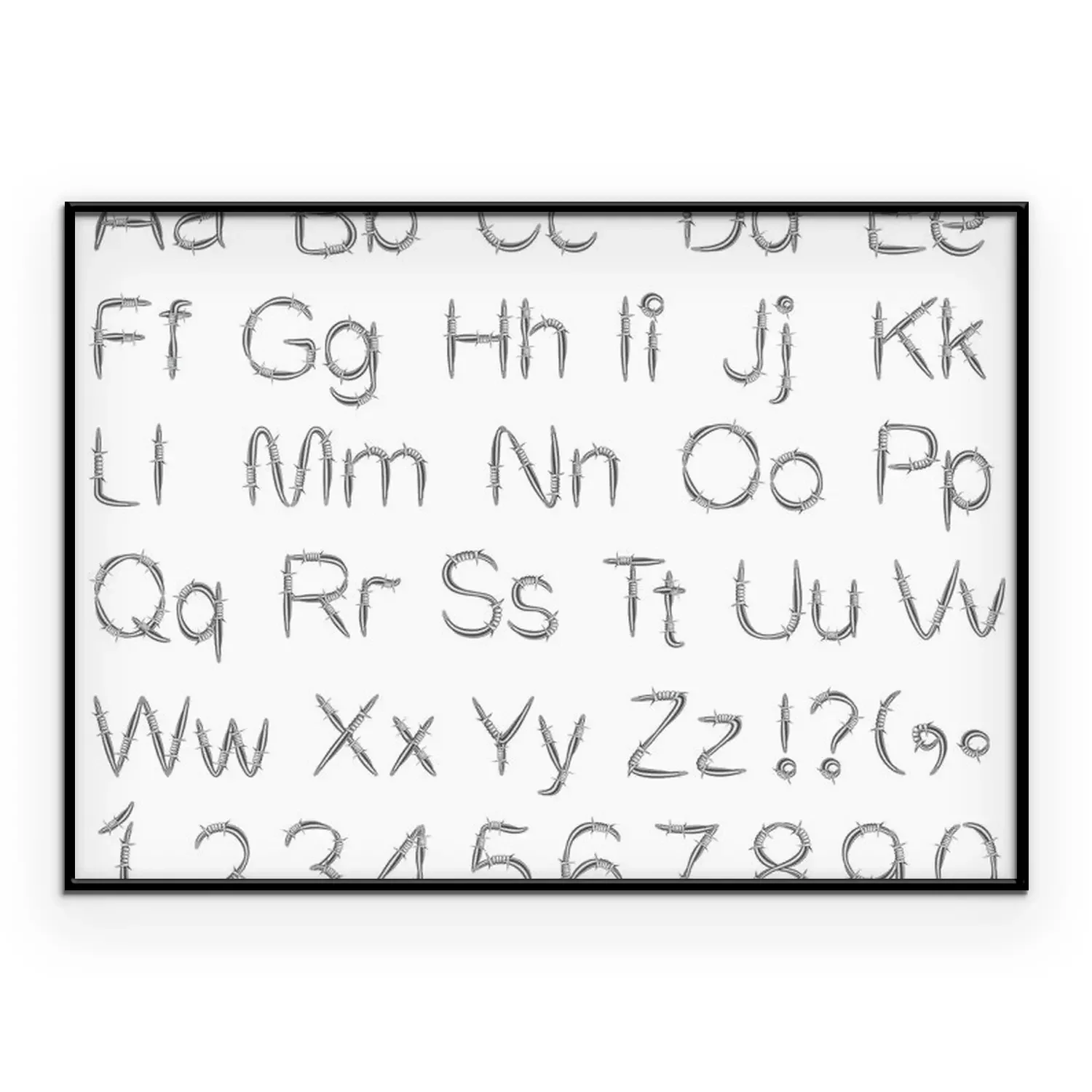 Poster  Alphabet et chiffres en fil de fer barbelé