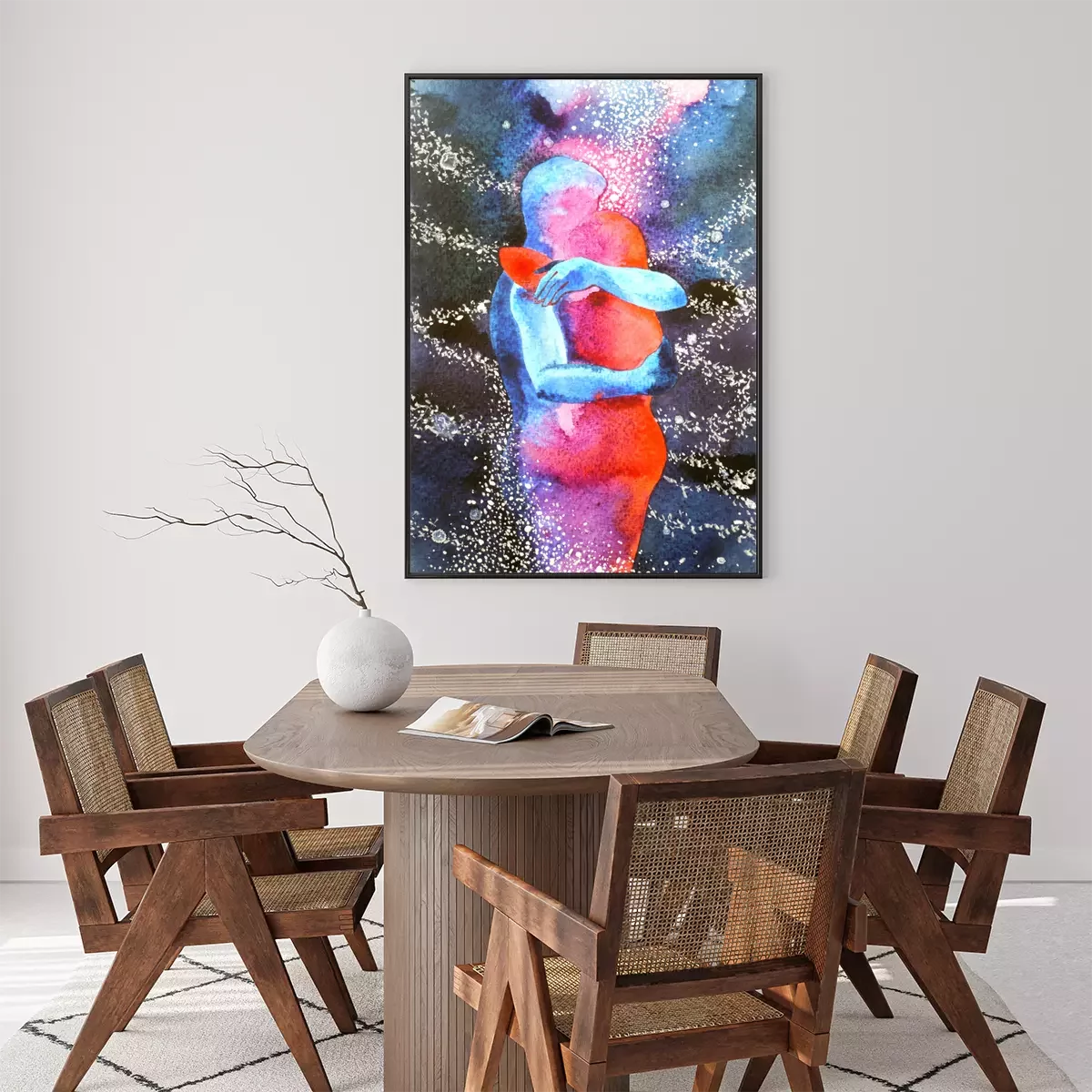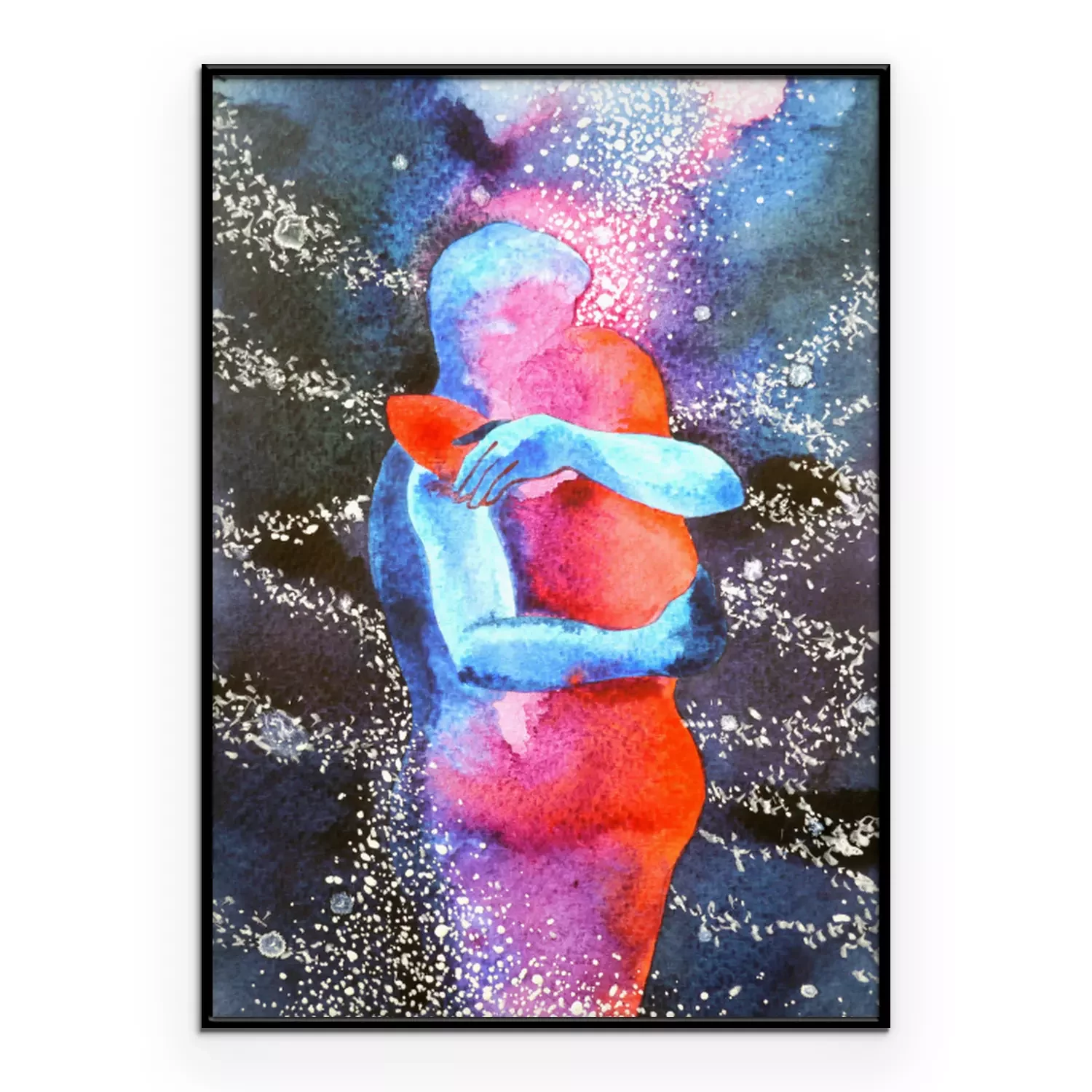 Poster  amant de couple étreindre dans l'esprit libre abstrait de l'univers, à l'intérieur de votre monde illustration de conception de peinture aquarelle