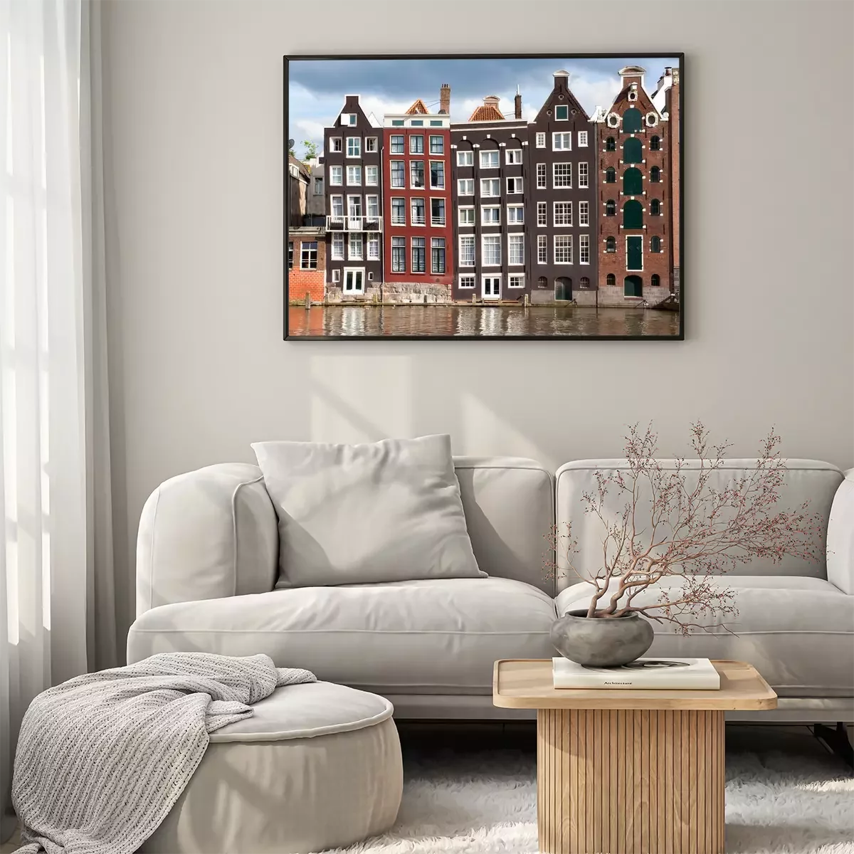Poster : Amsterdam Pays-Bas maisons au bord du canal
