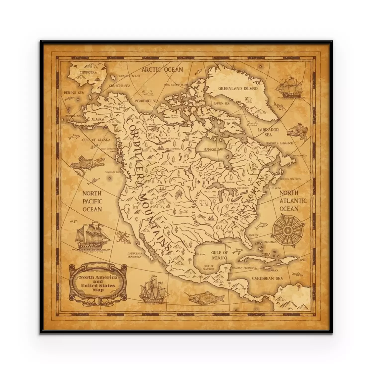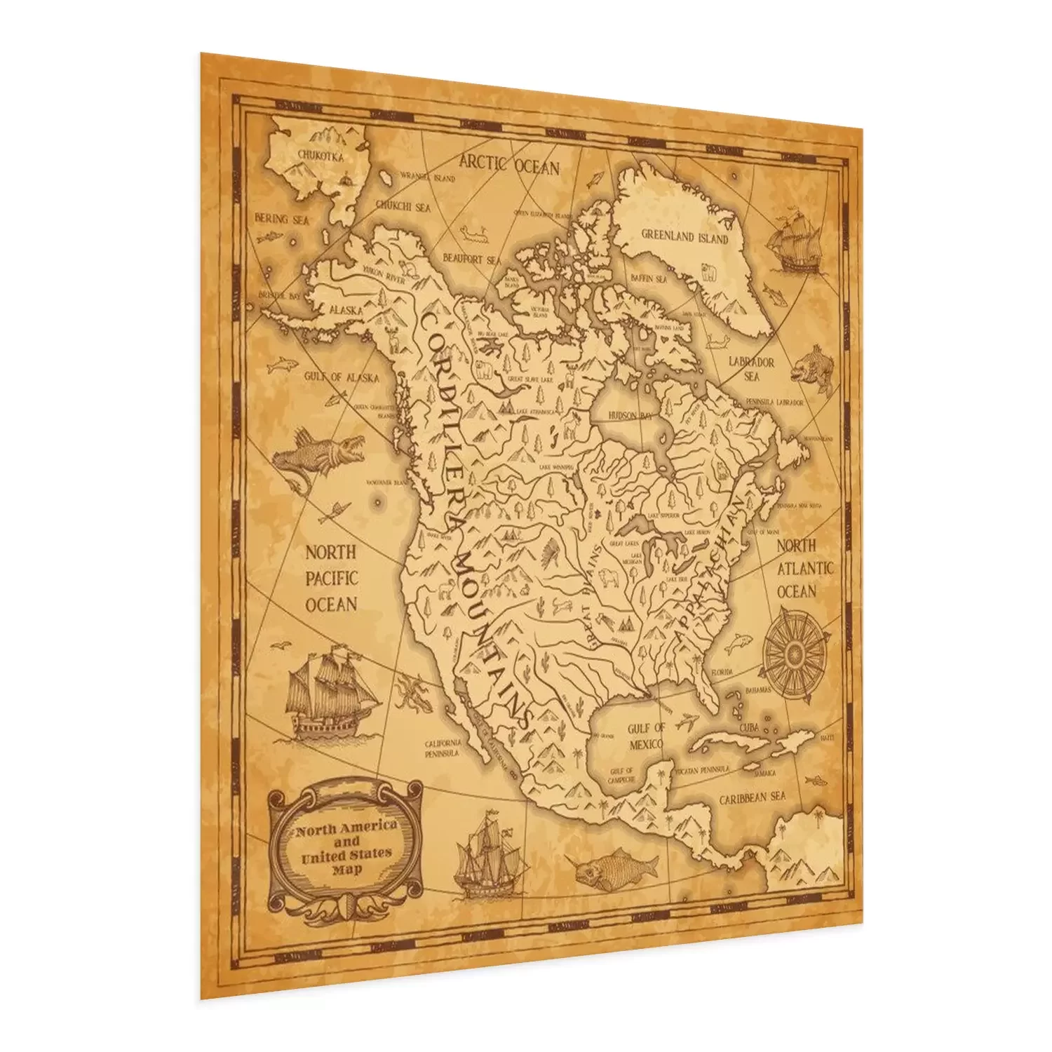 Poster : Ancienne carte du continent nord-américain