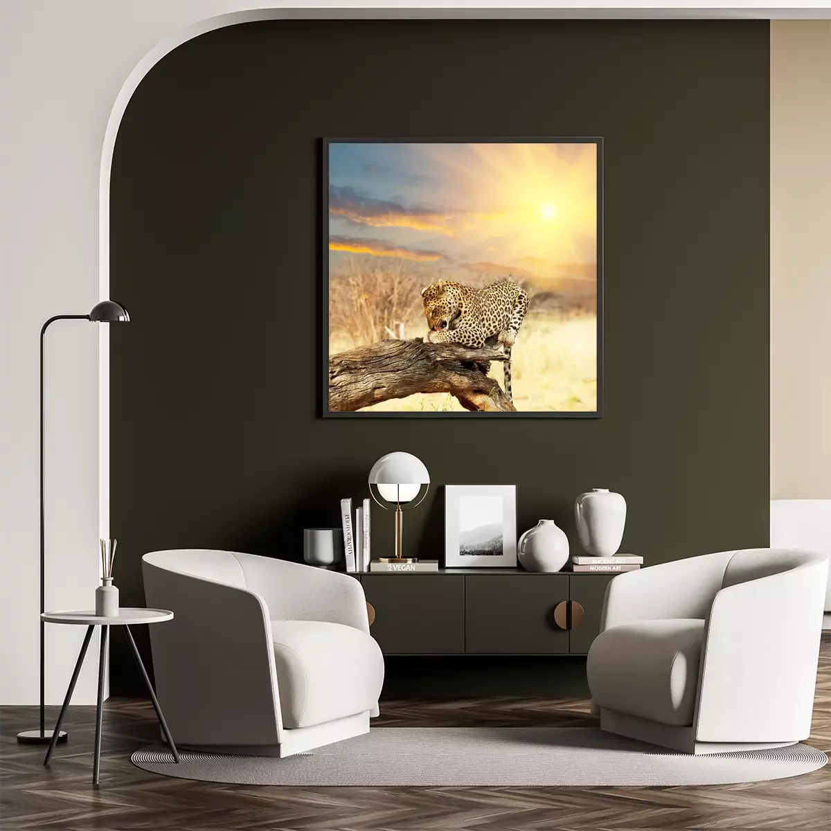 Poster : Animal léopard au soleil couchant