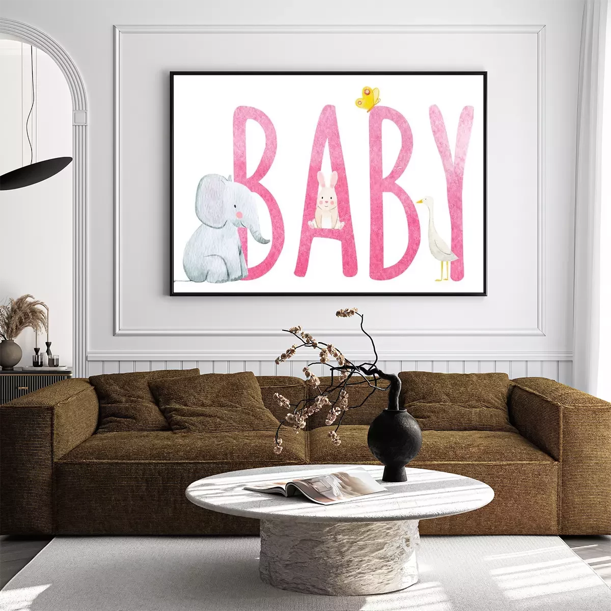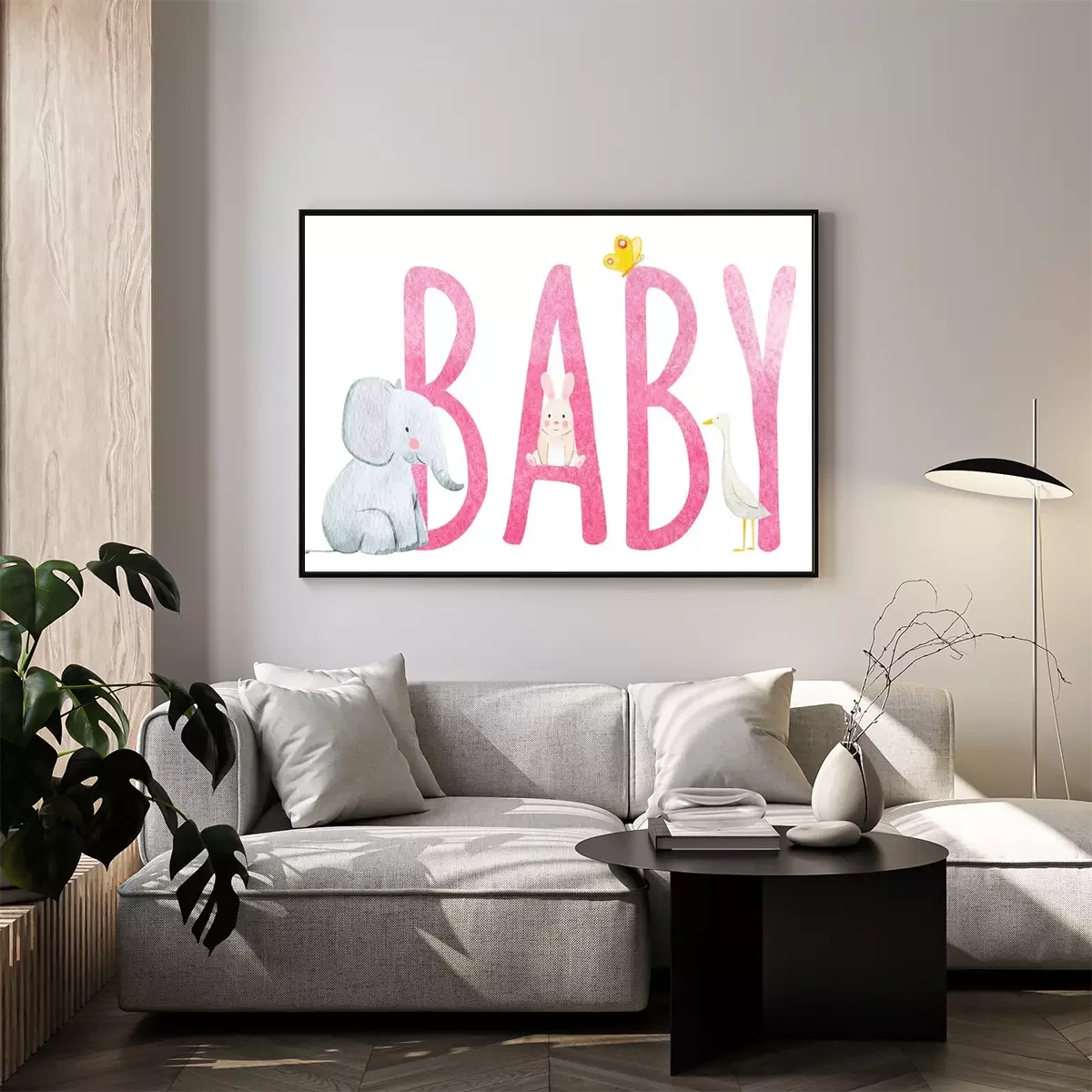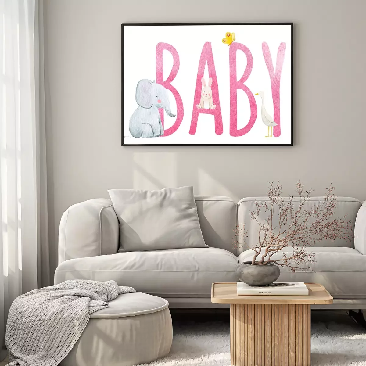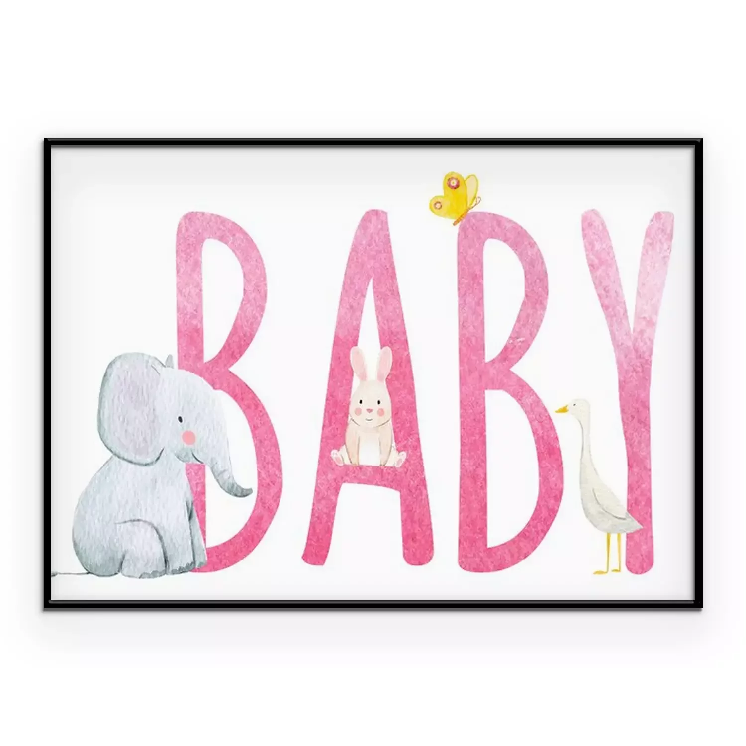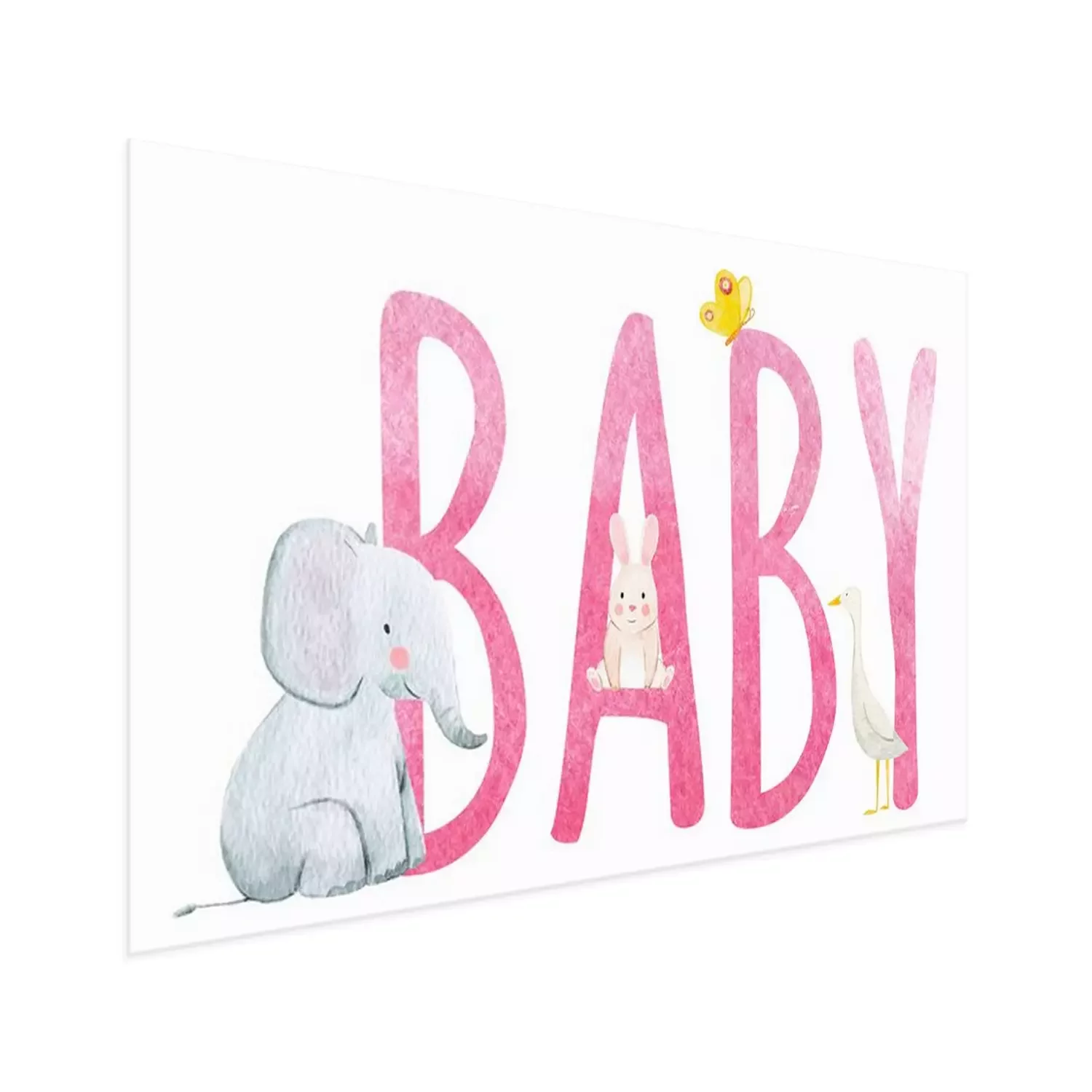 Poster : Animaux assis sur une inscription rose "enfant"