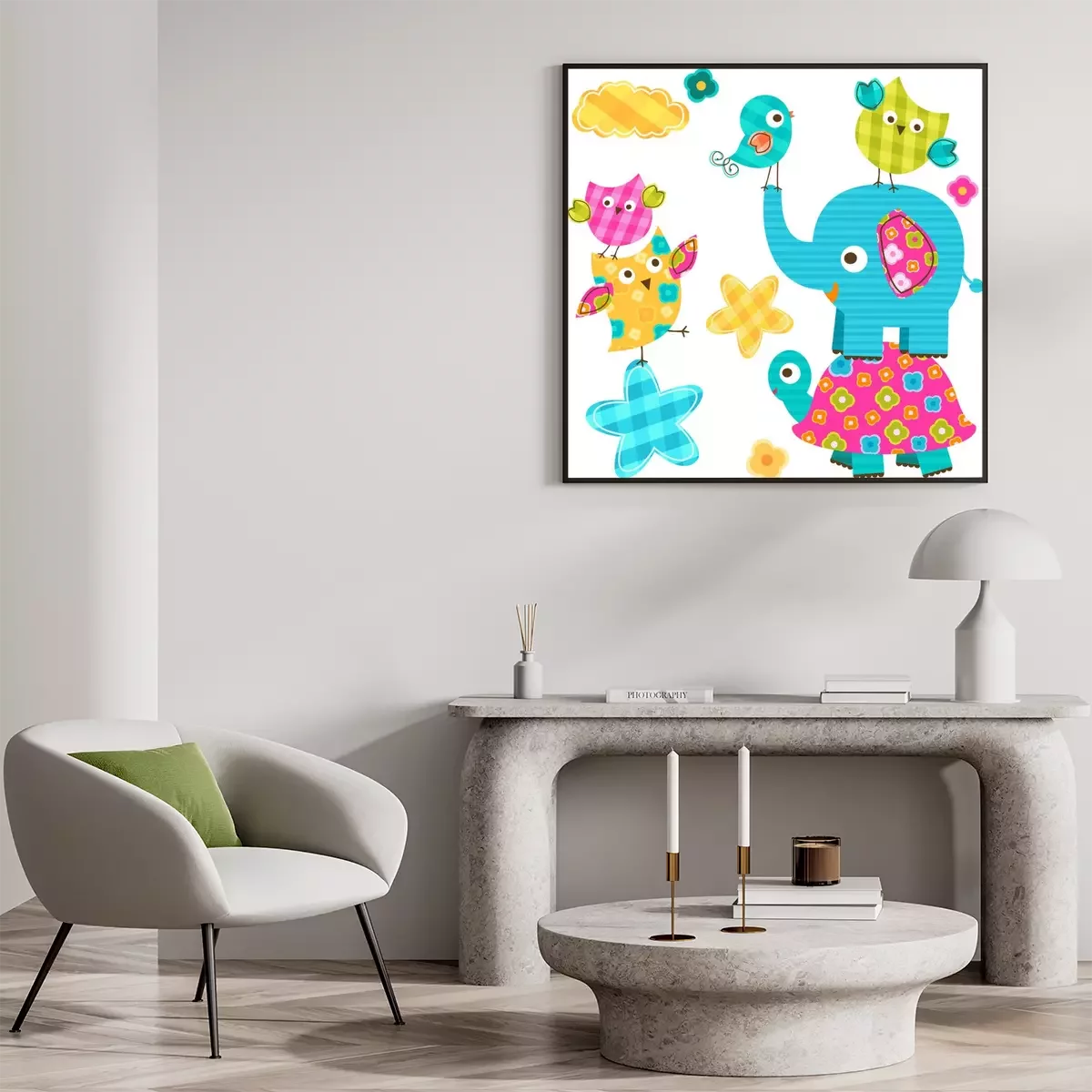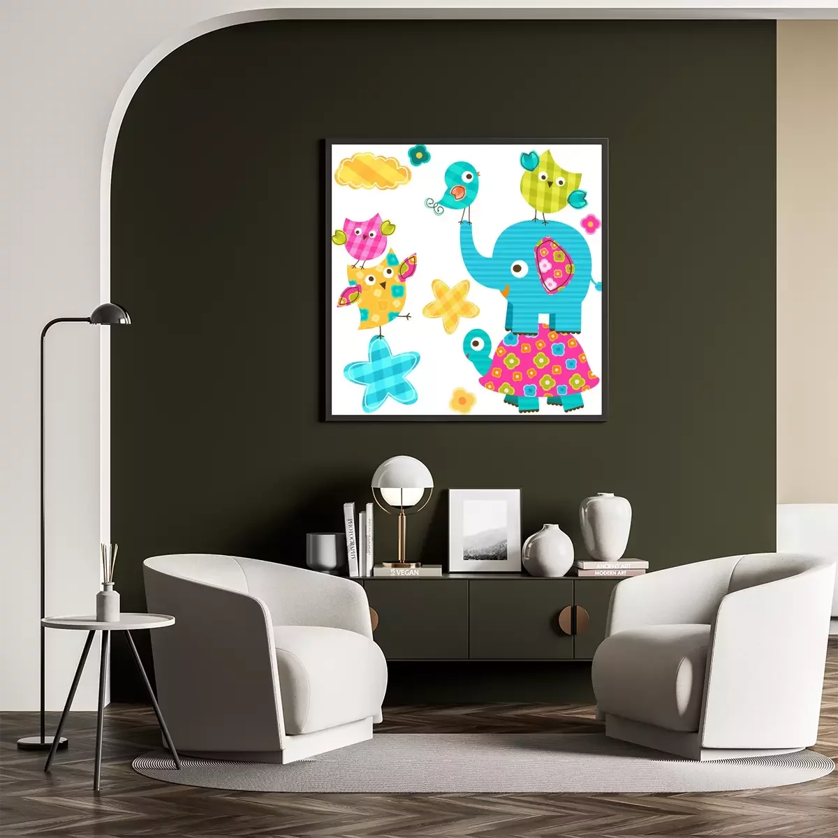 Ensemble de graphiques colorés oiseaux girafes nuages