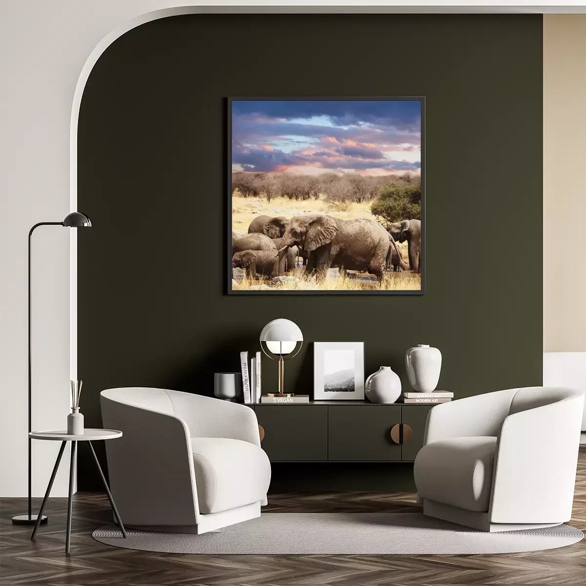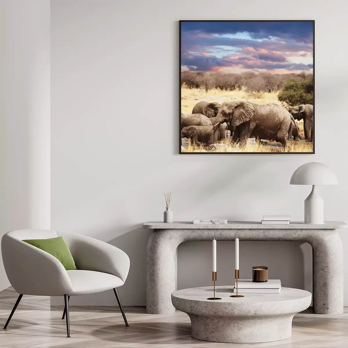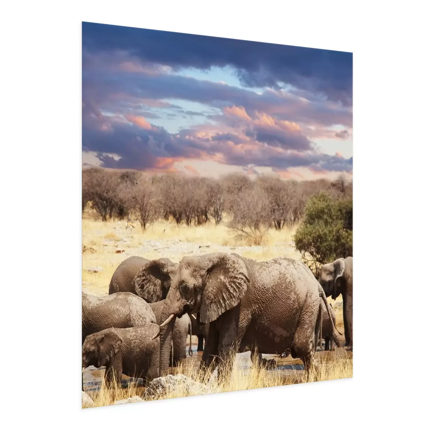 Poster  Animaux d'éléphants d'Afrique dans l'herbe