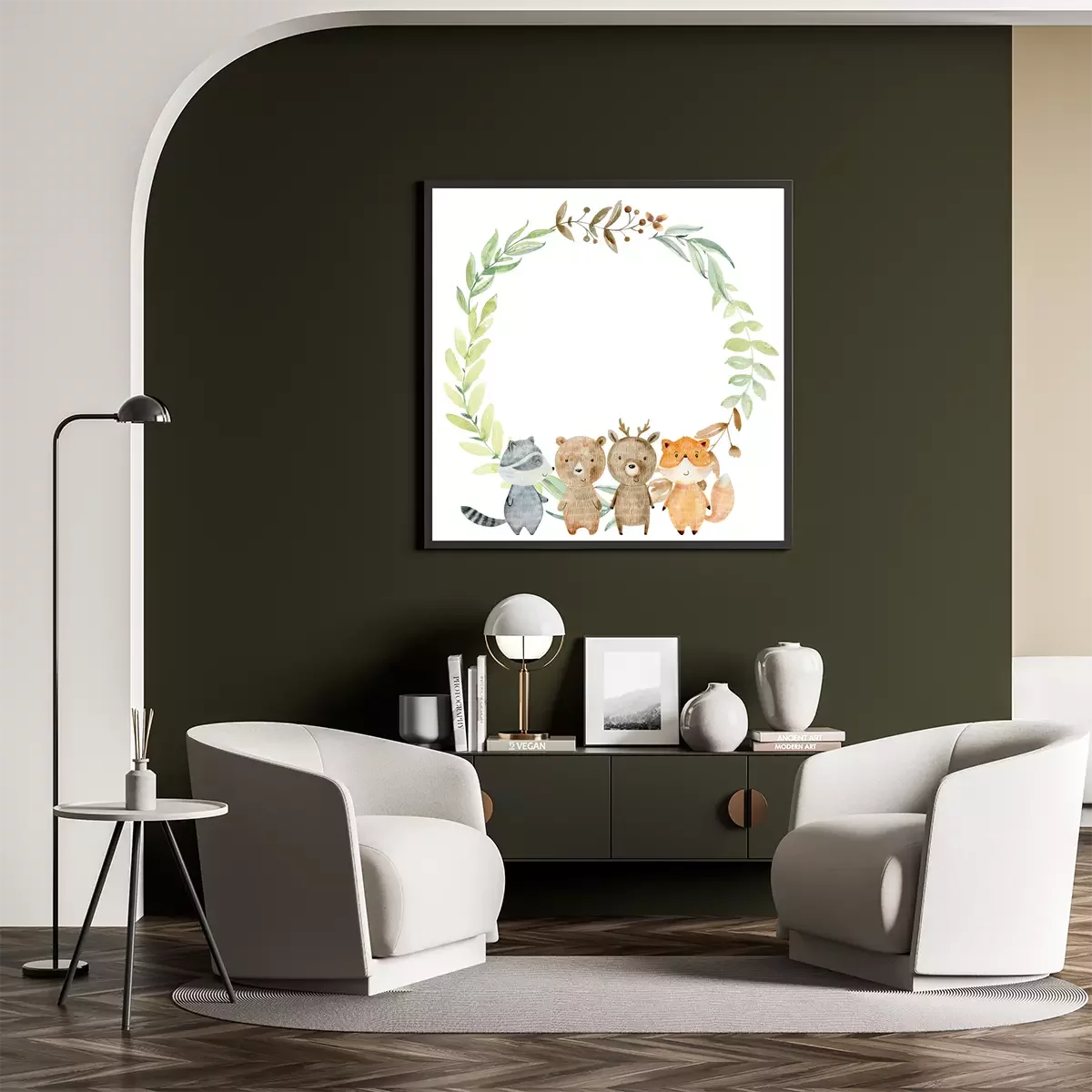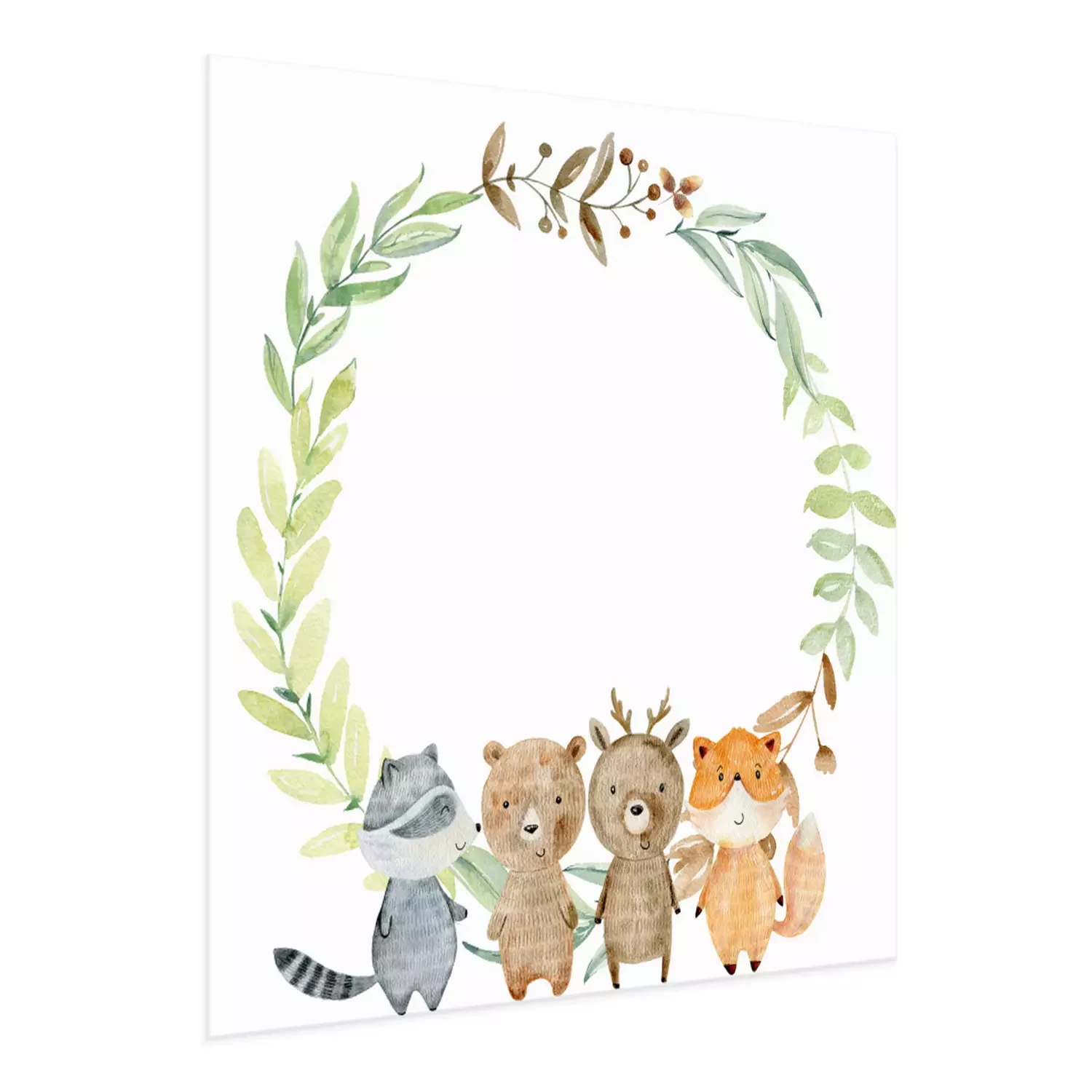 Poster : Animaux de la forêt sur le fond d'une couronne de feuilles