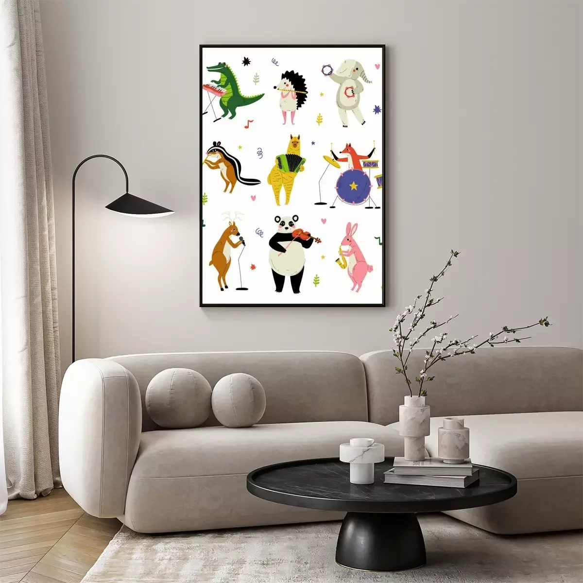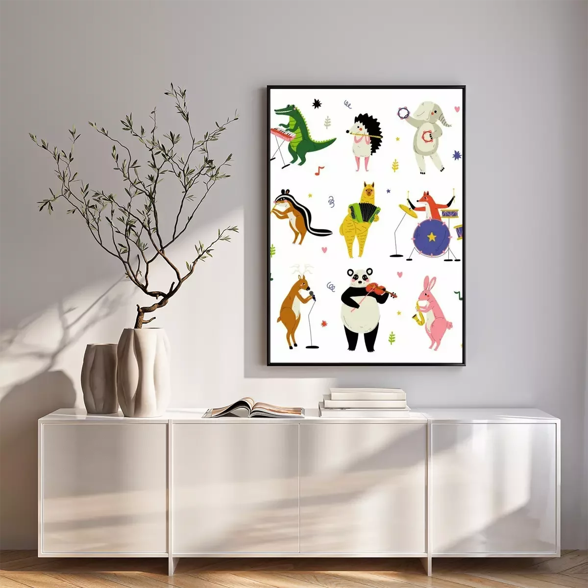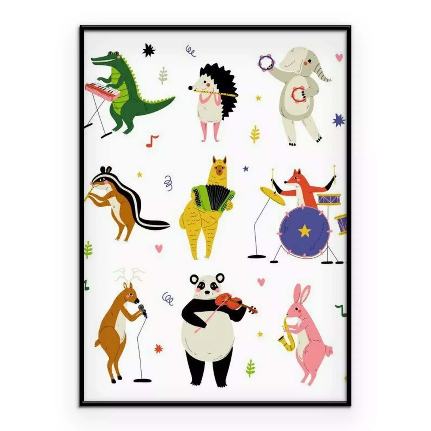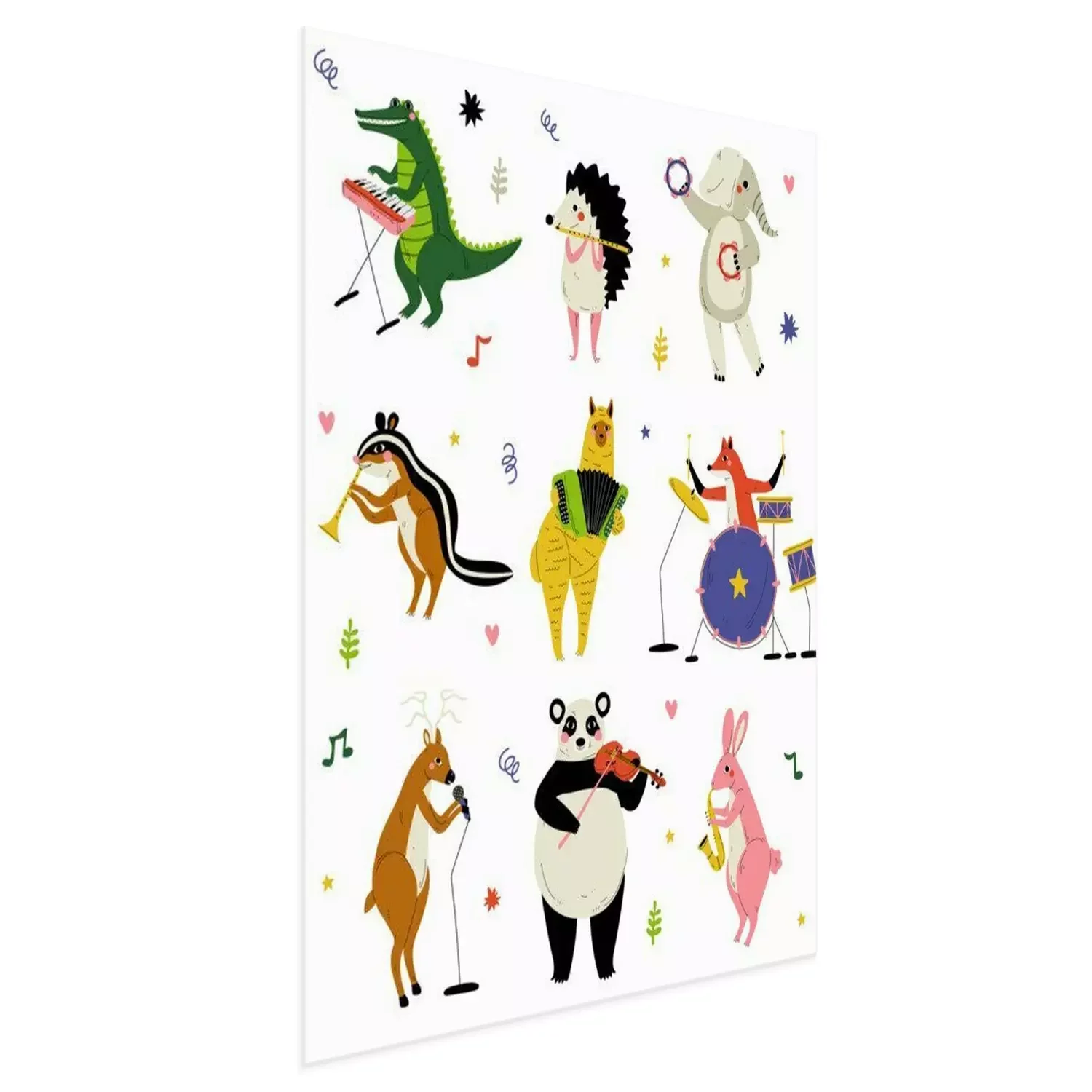 Poster  Animaux jouant des instruments et des notes de musique colorées
