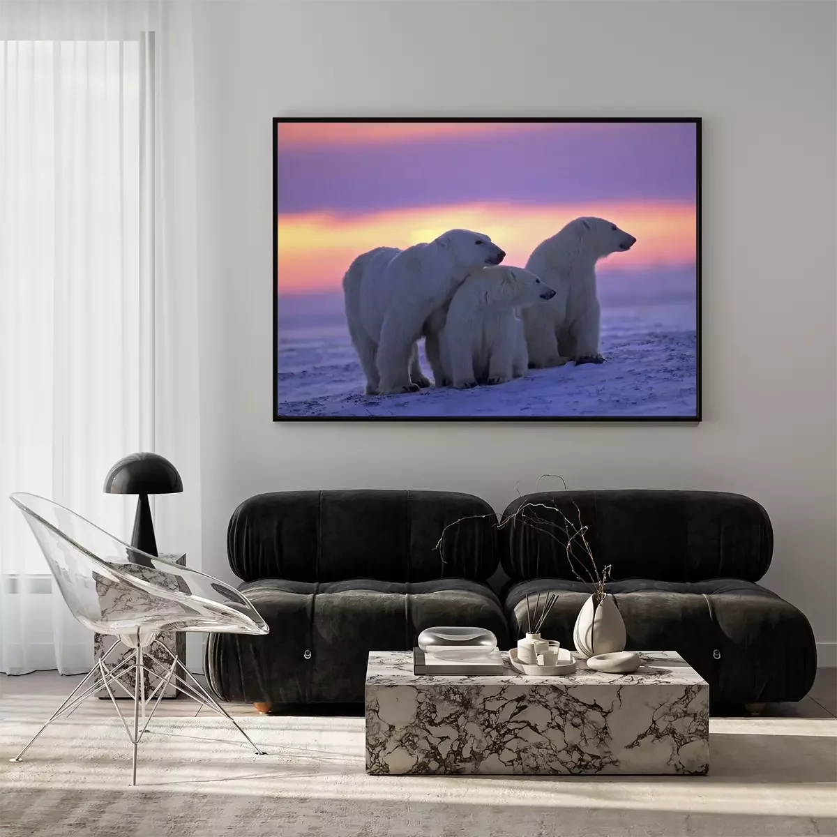 Poster : Animaux polaires au soleil couchant