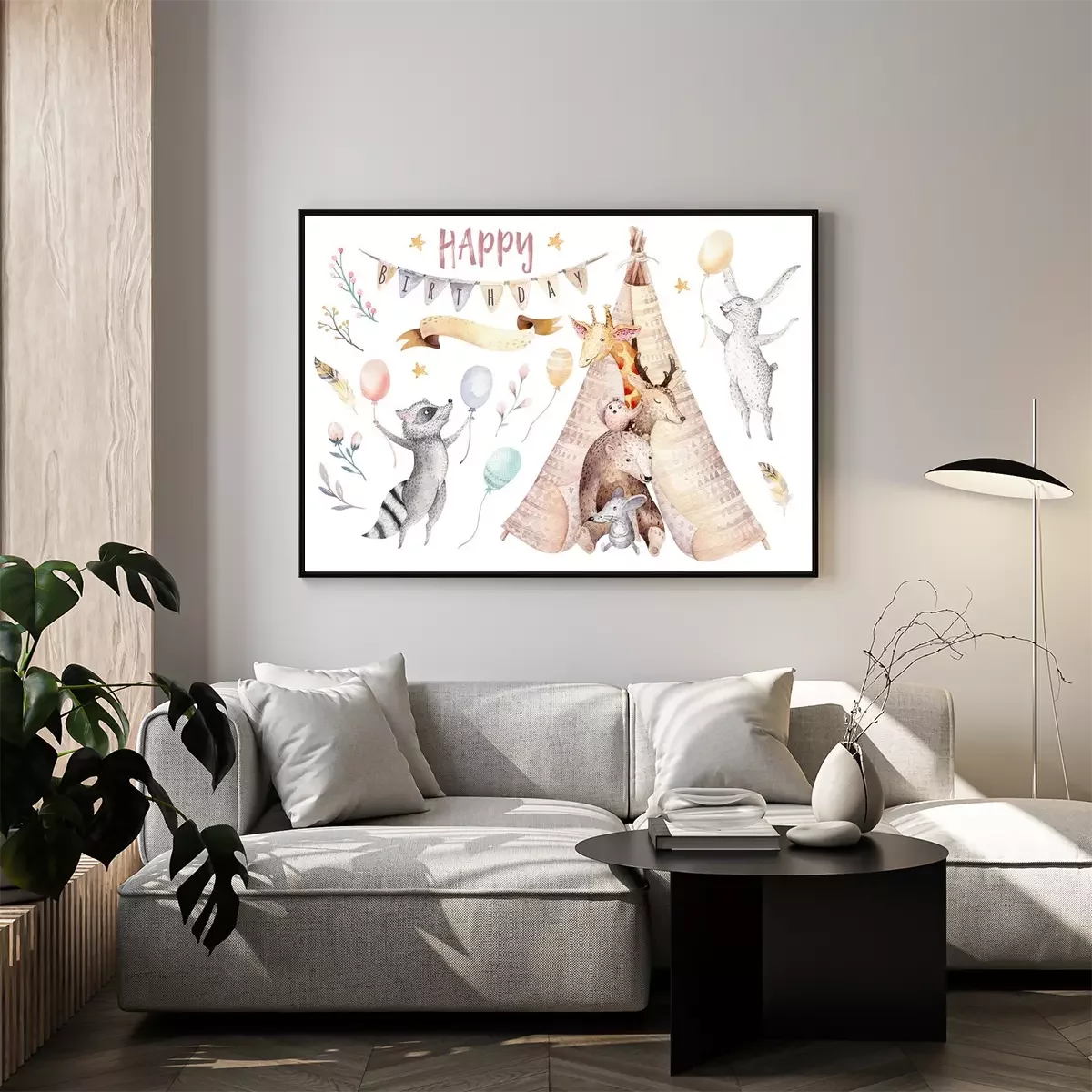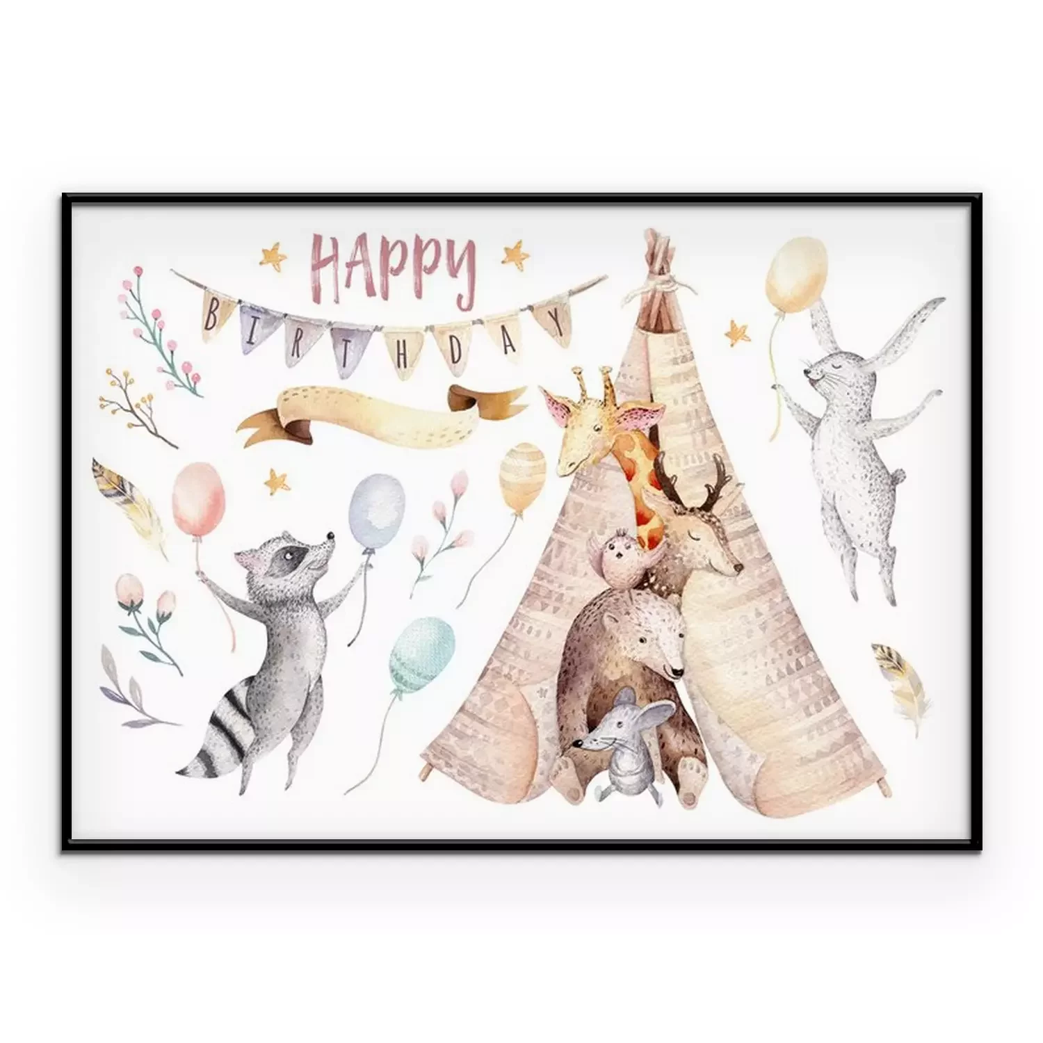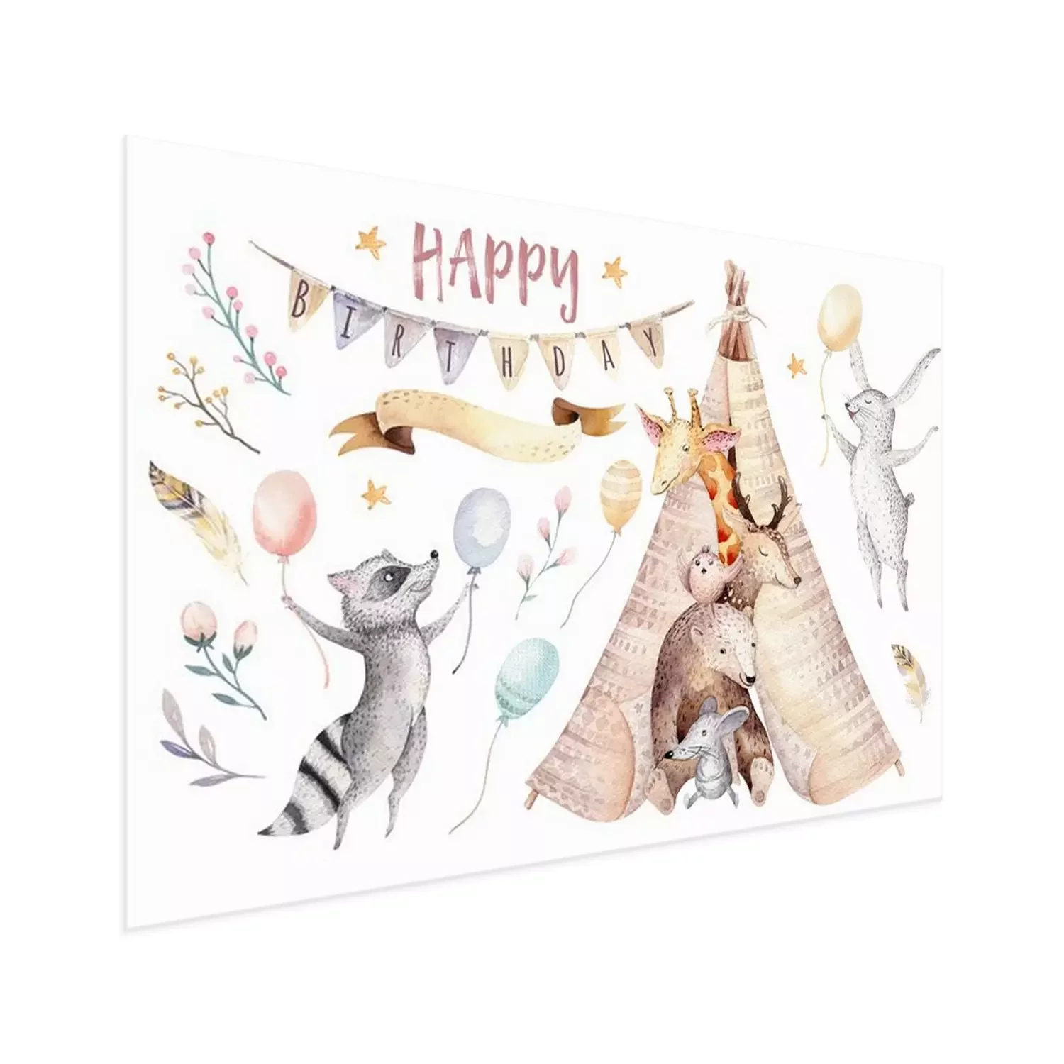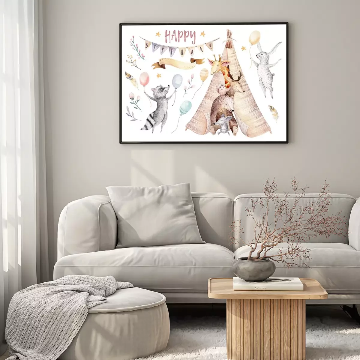 Poster  Animaux se penchant hors du tipi et l'inscription anniversaire