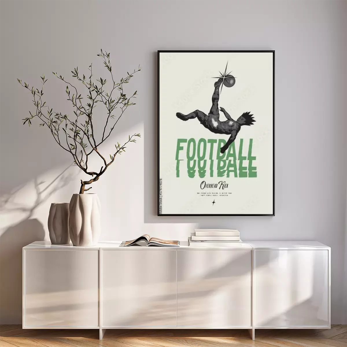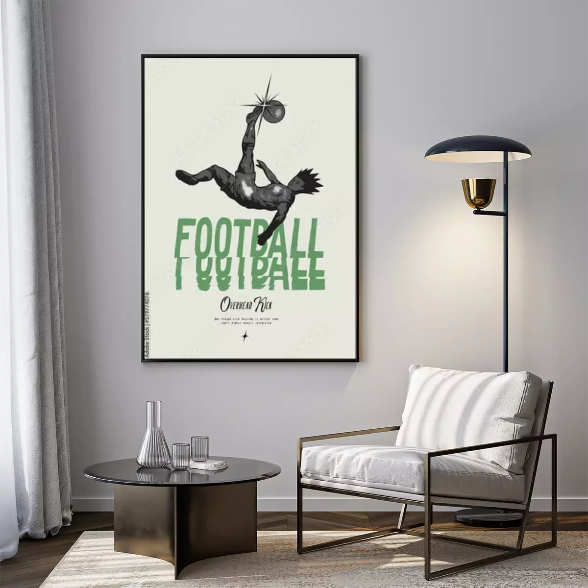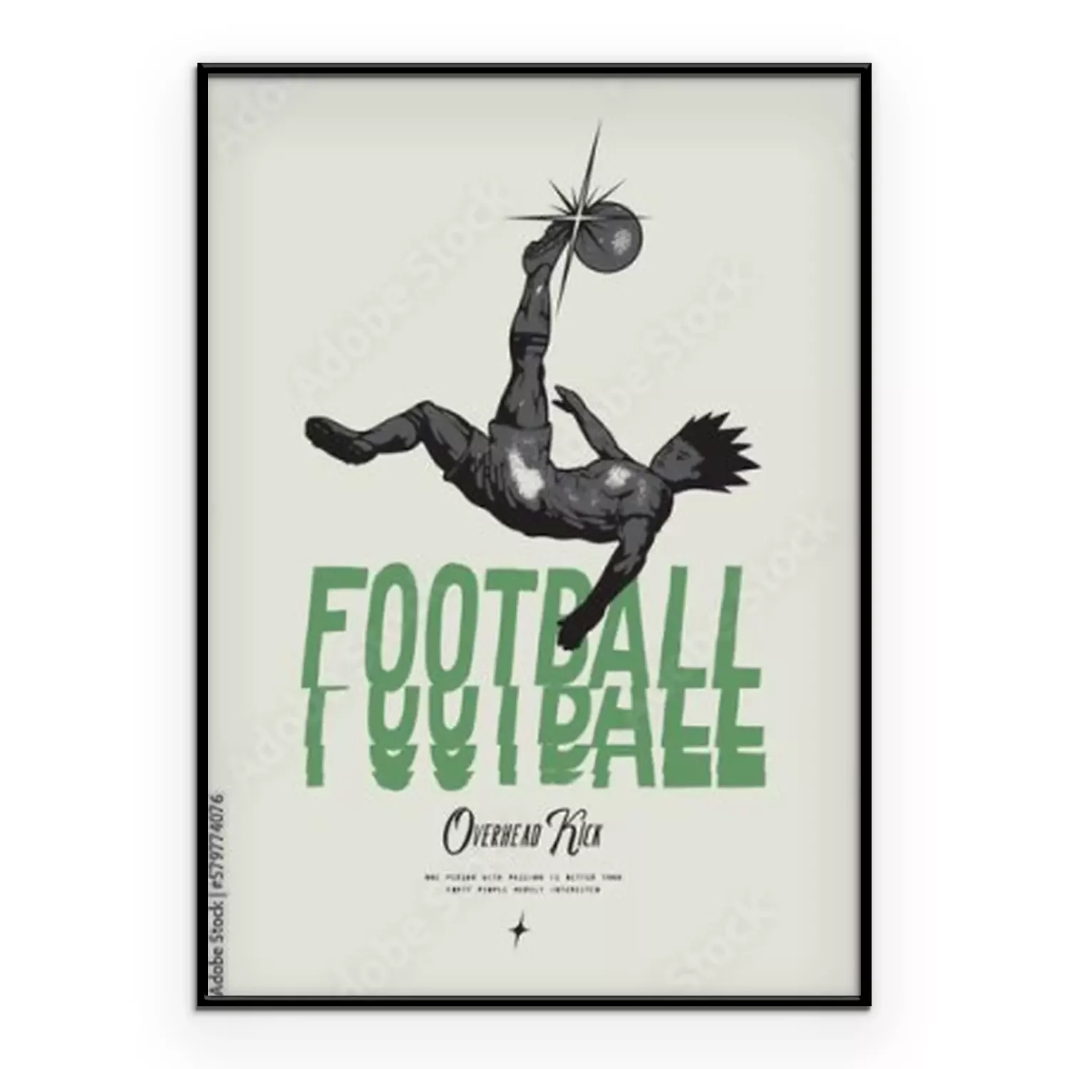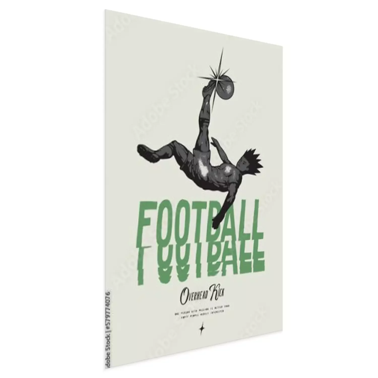 Poster : Anime Football. Soccer player kicking ball overhead. Football vintage typography silkscreen t-shirt print vector illustration