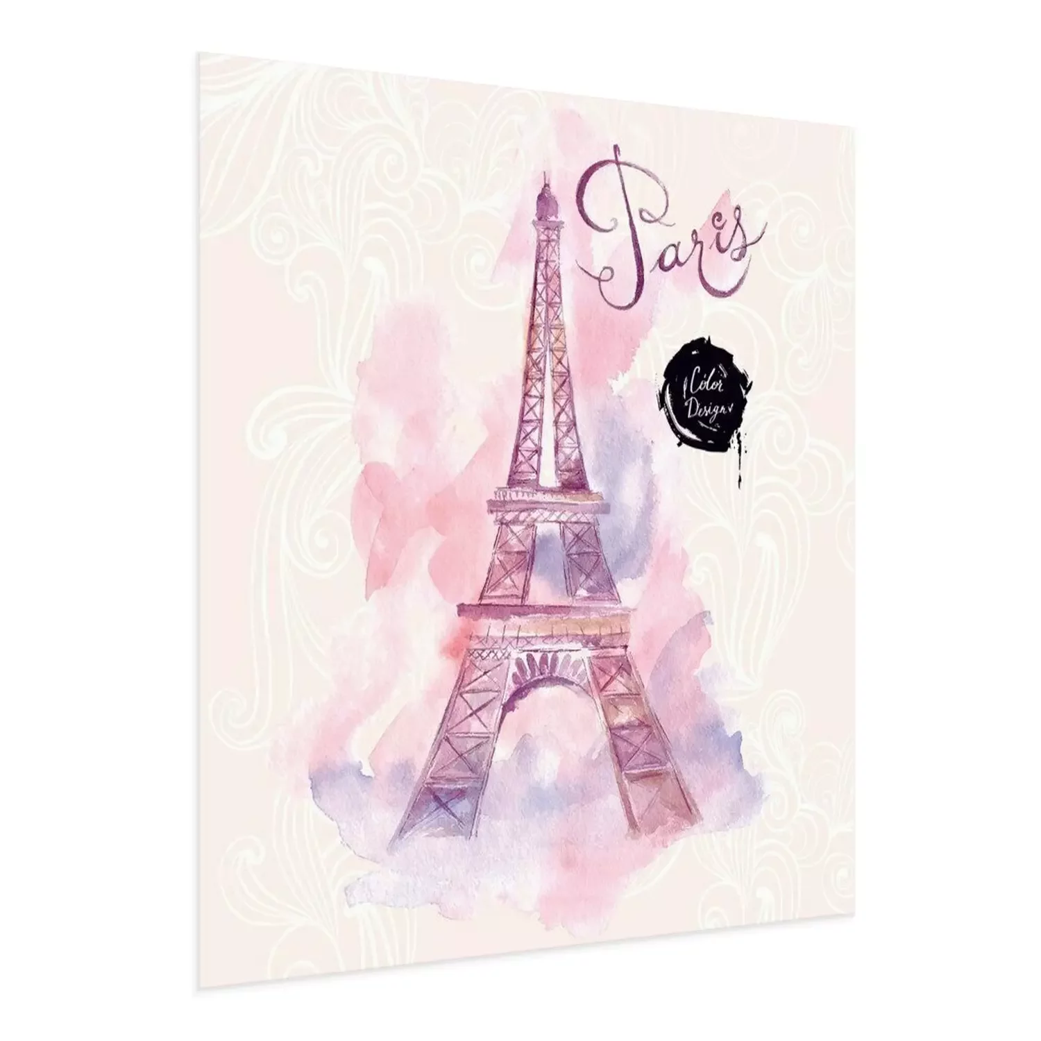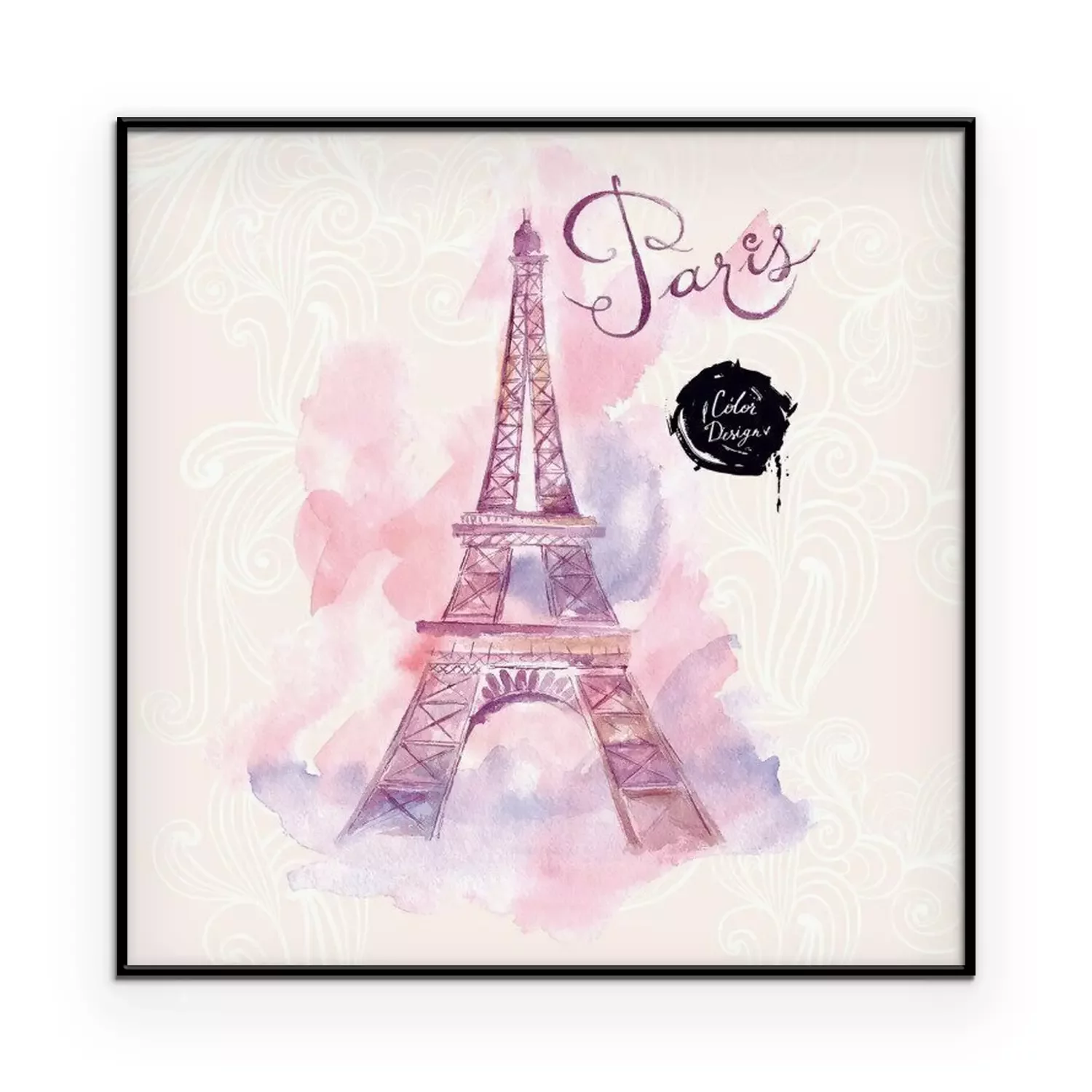 Poster : Aquarelle de Paris sur fond rose