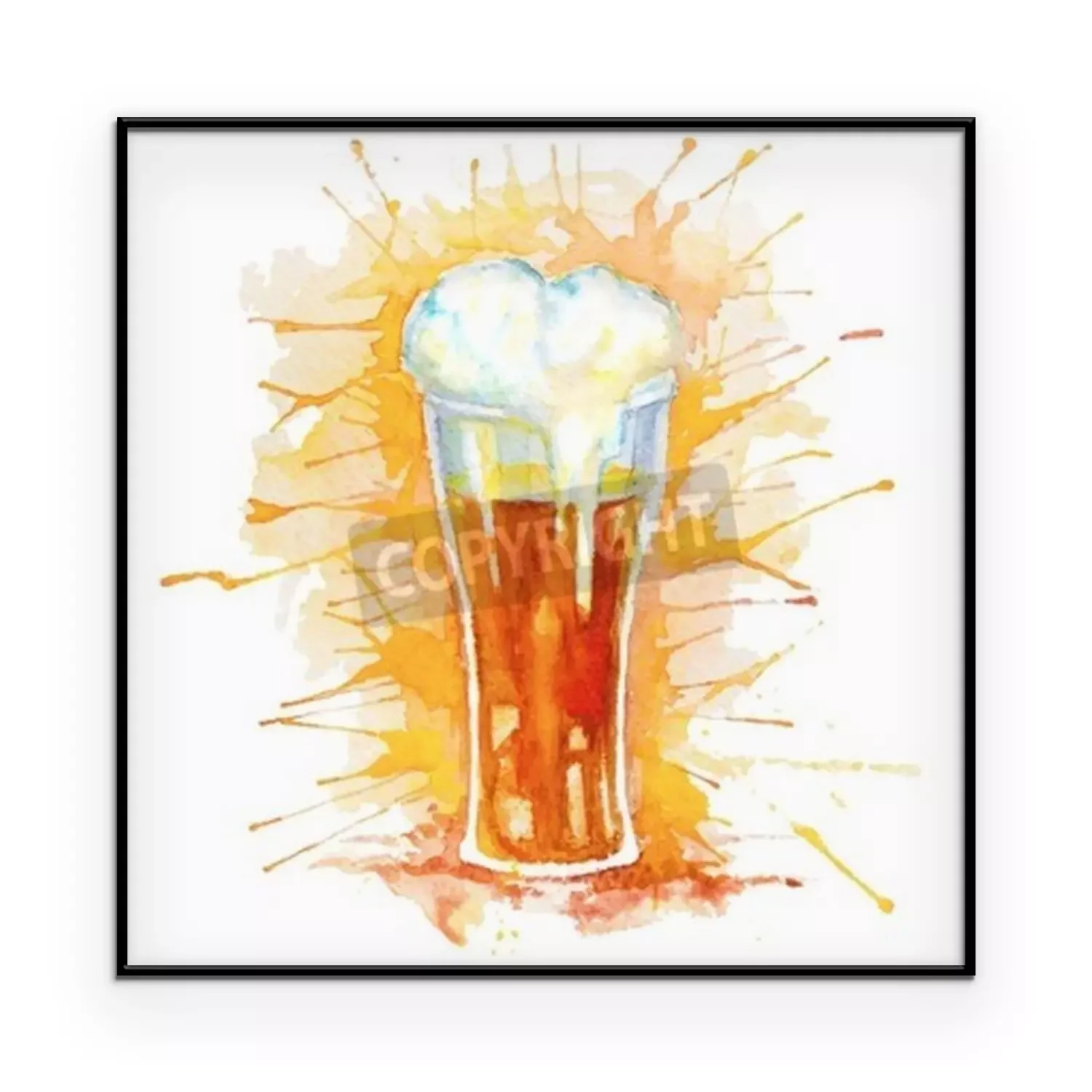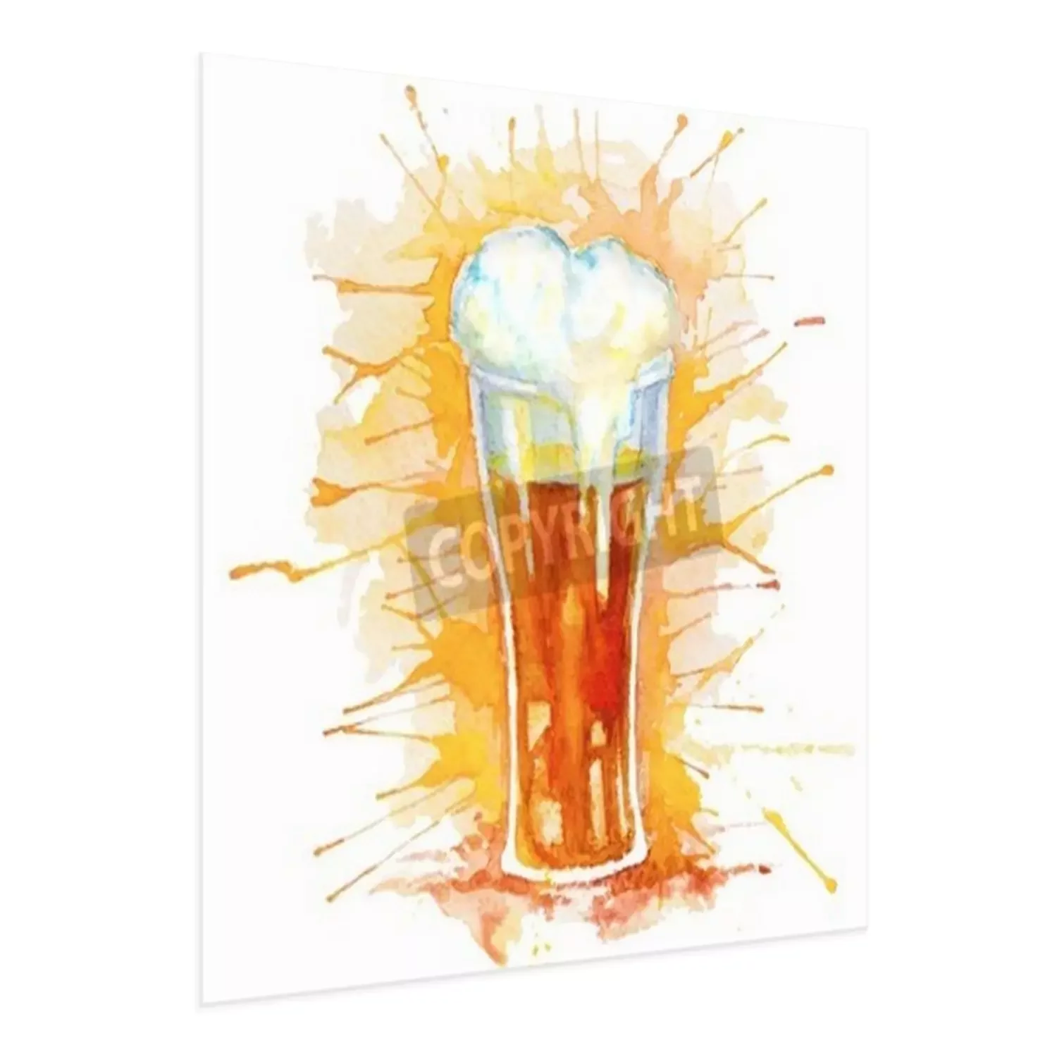 Poster : Aquarelle, main, dessiné, verre, frais, bière, mousse, éclaboussures, isolé, blanc, fond