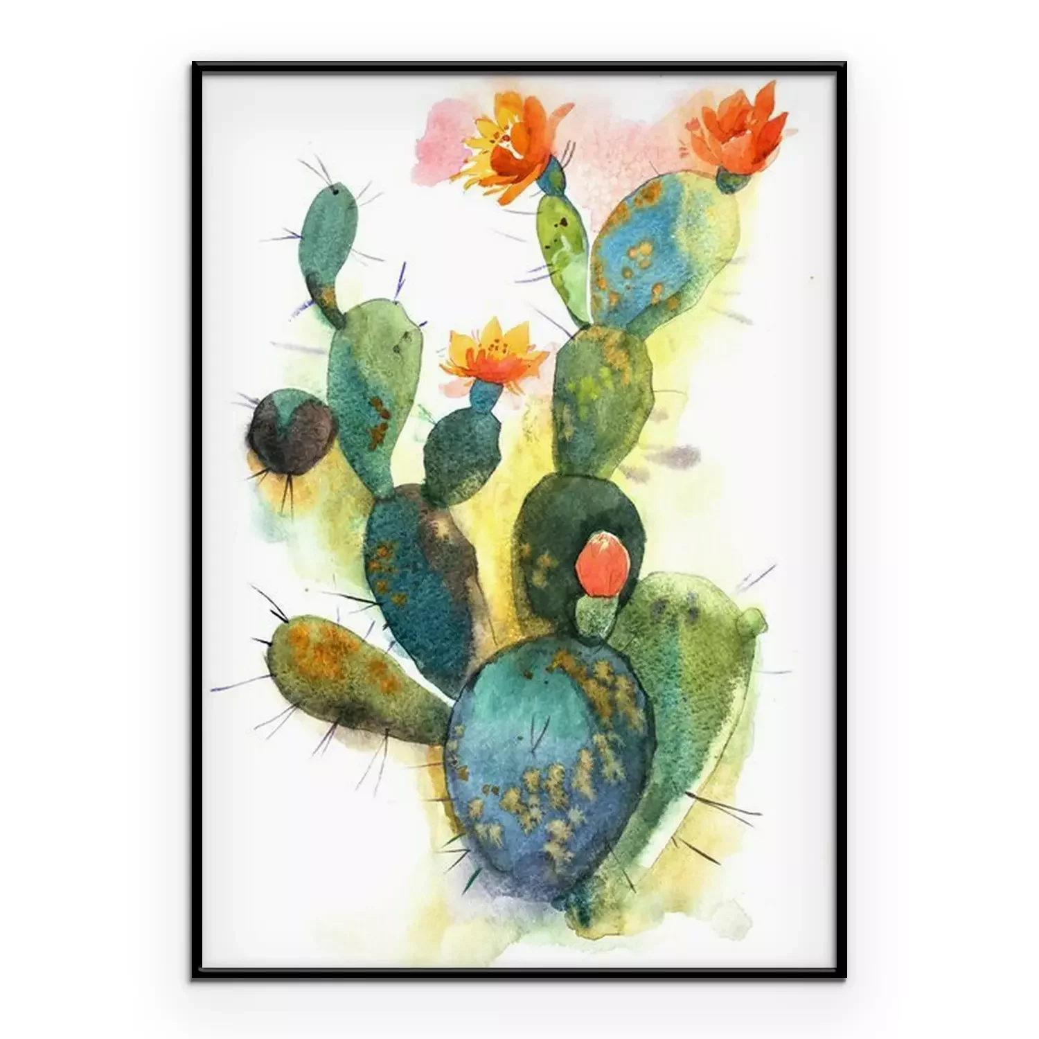 Poster  Aquarelle main dessinée fleur de fleur de cactus en épi