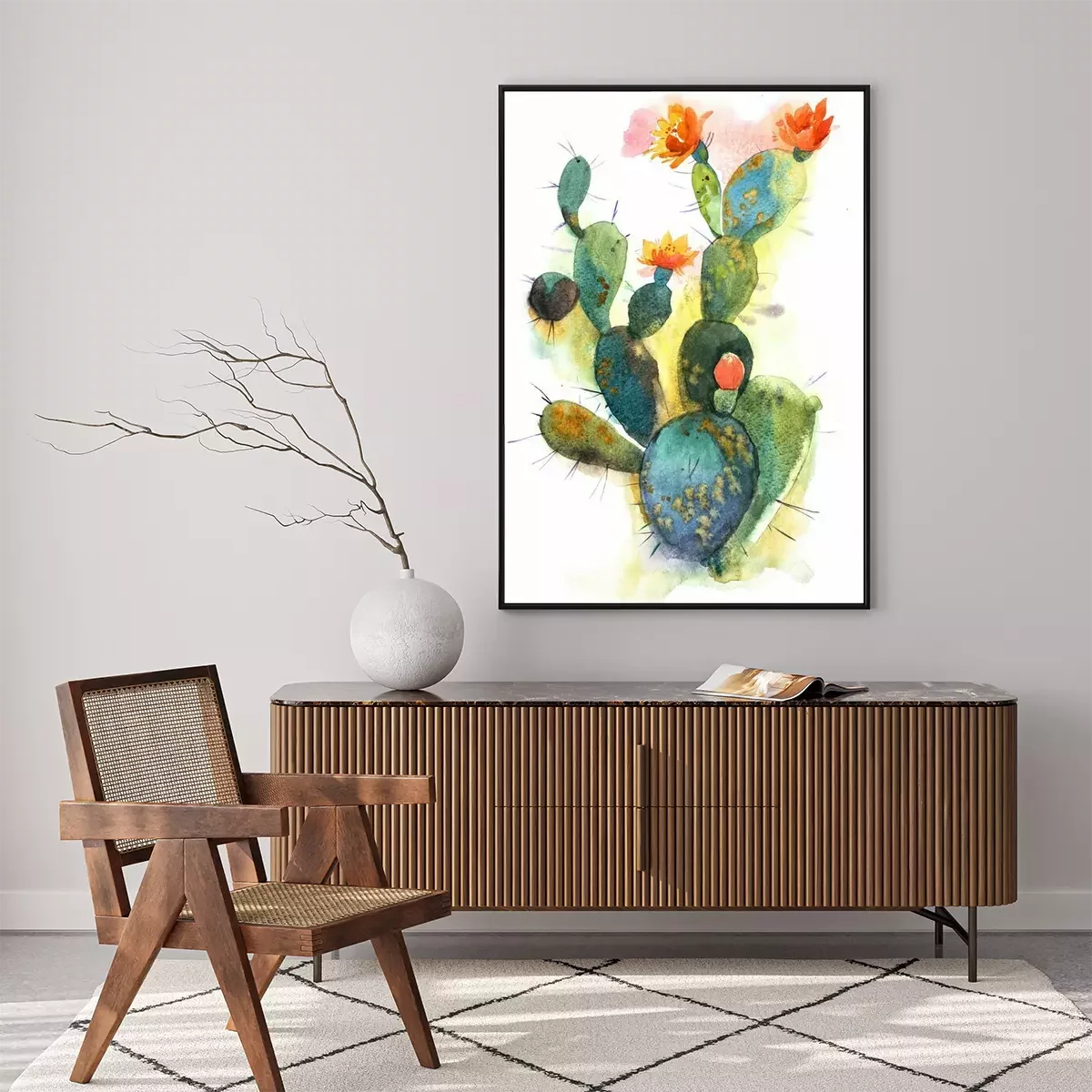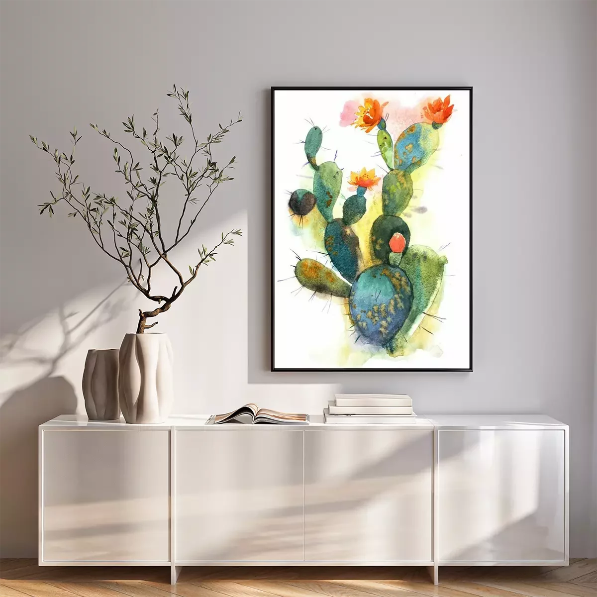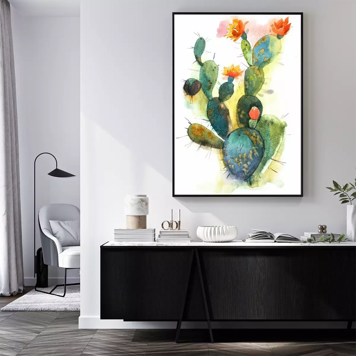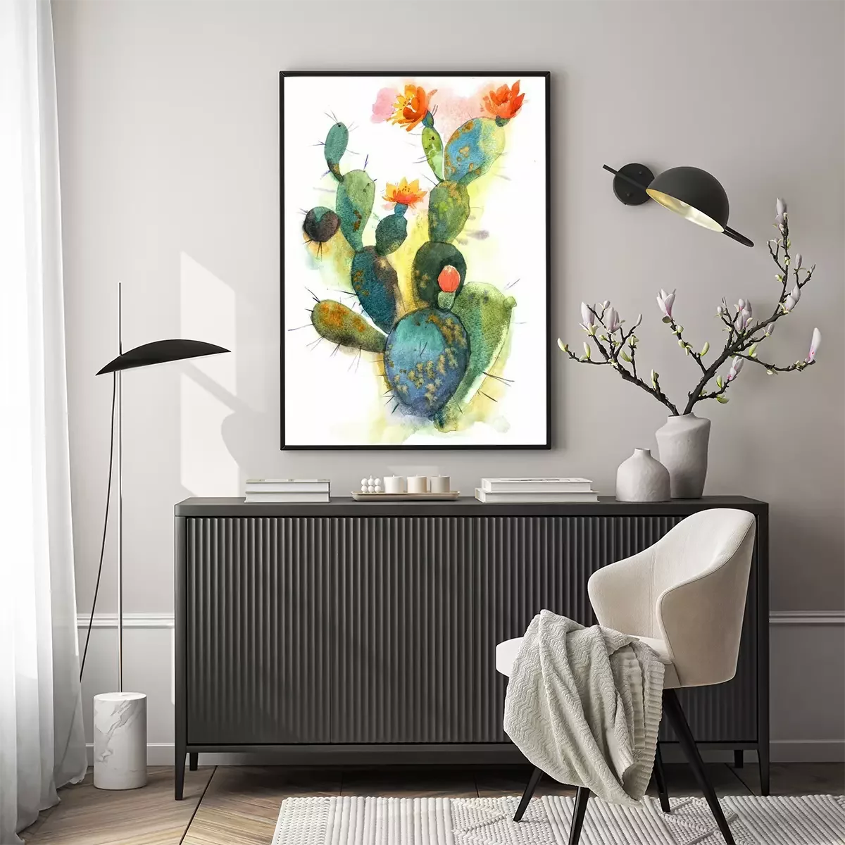 Poster : Aquarelle main dessinée fleur de fleur de cactus en épi