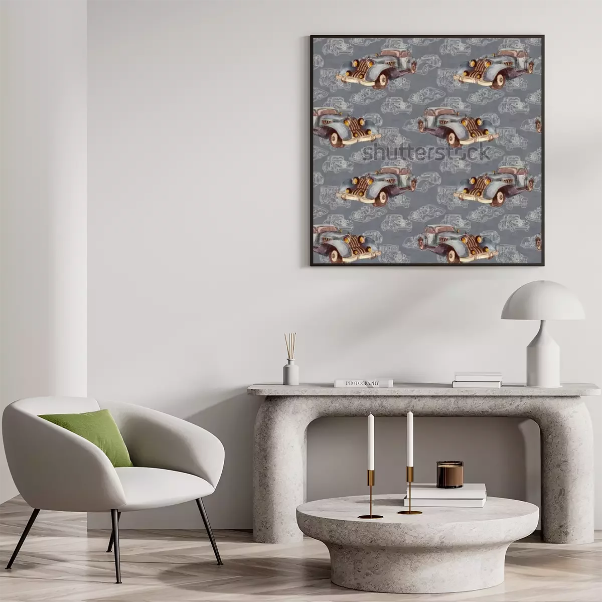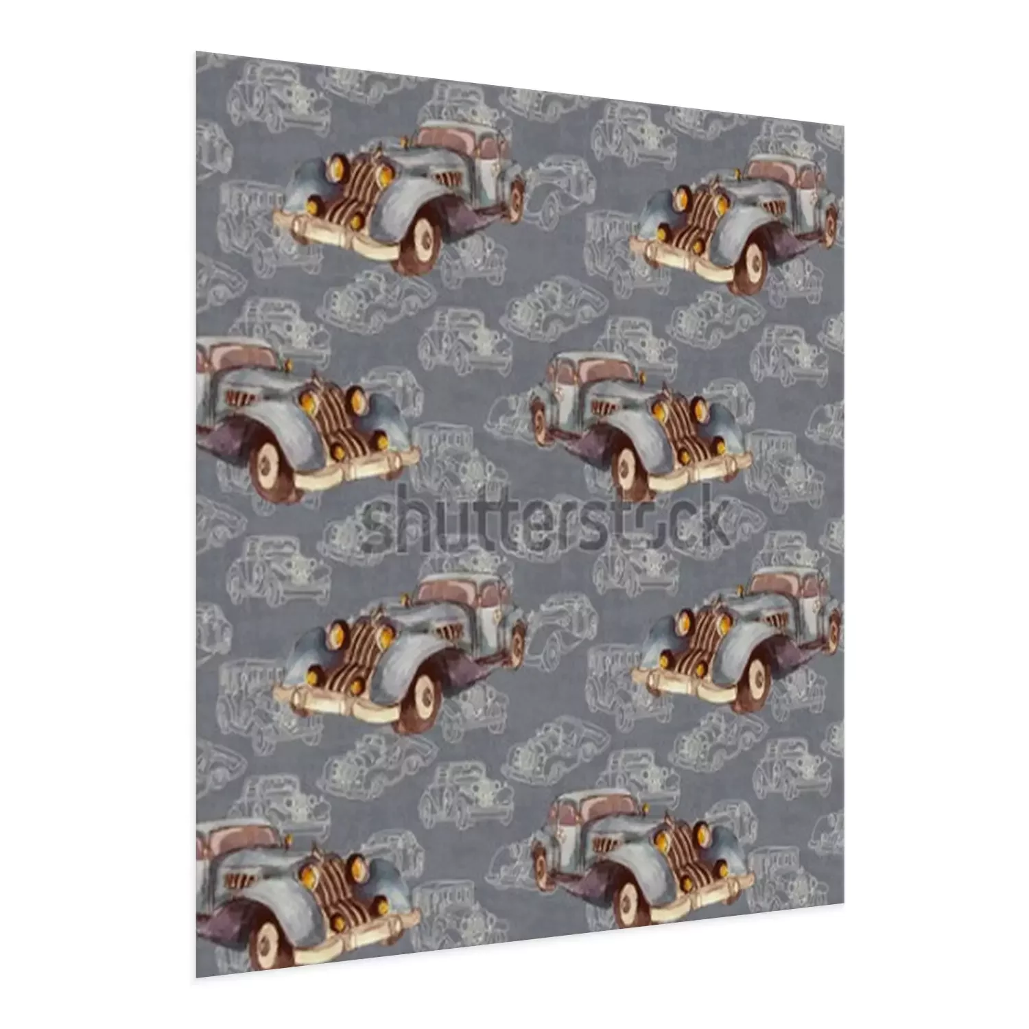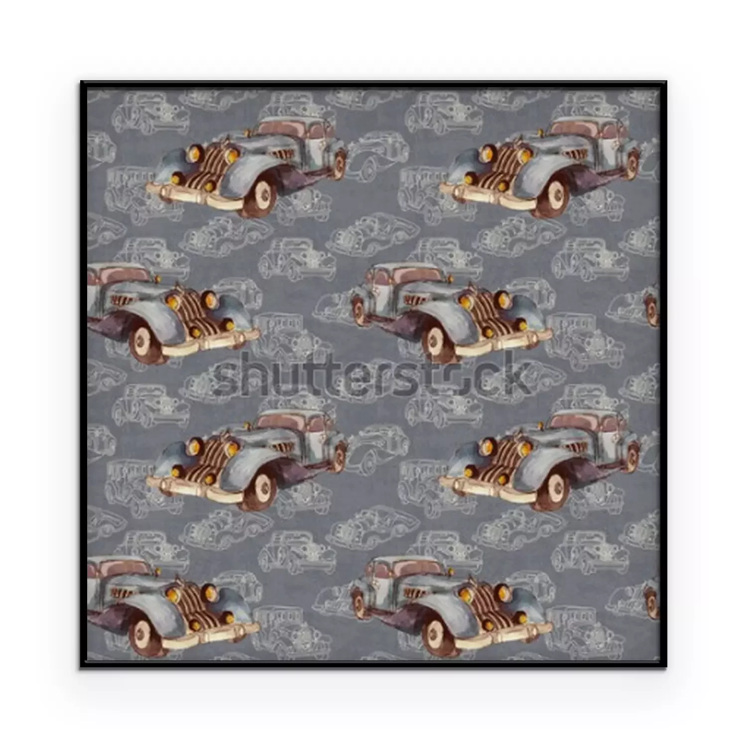 Poster  Aquarelle main dessinée modèle sans couture artistique coloré rétro voiture vintage