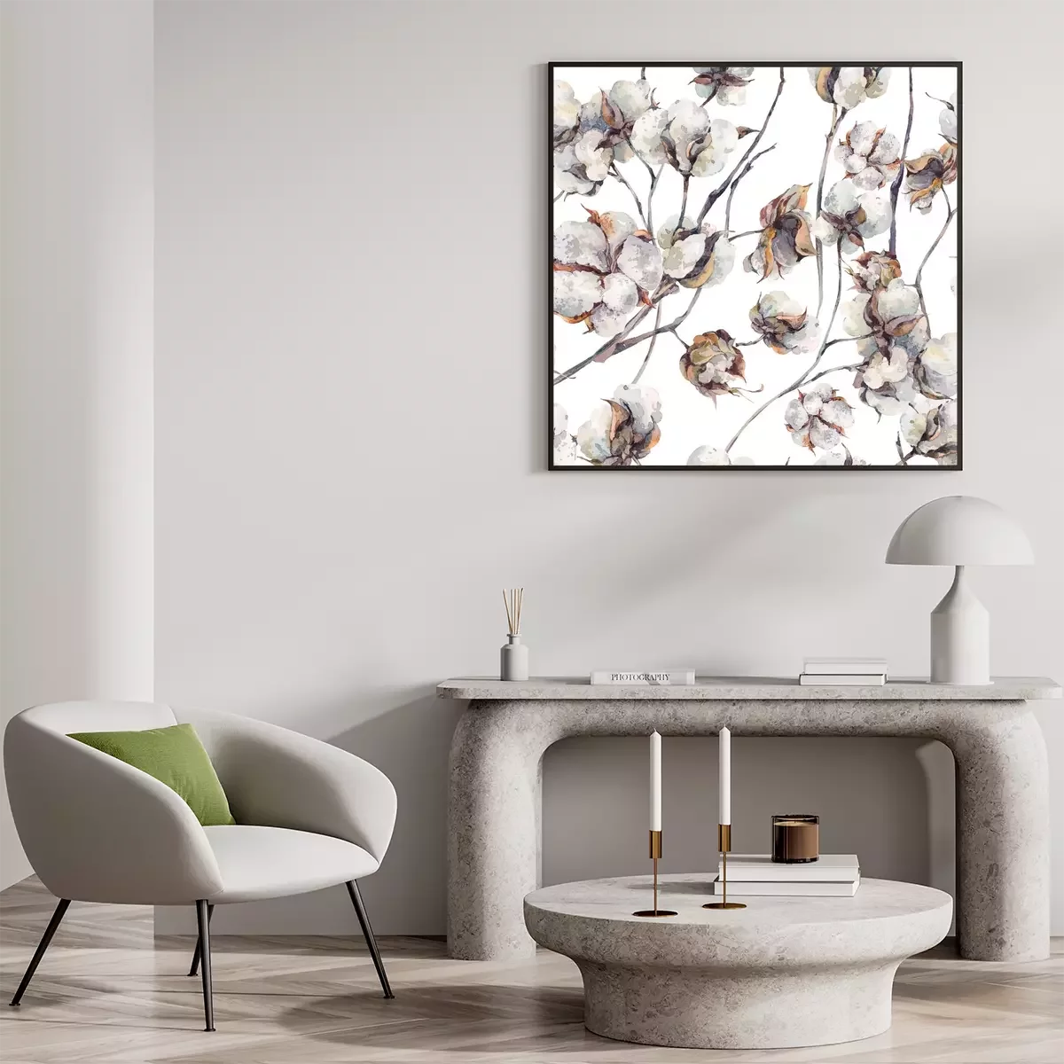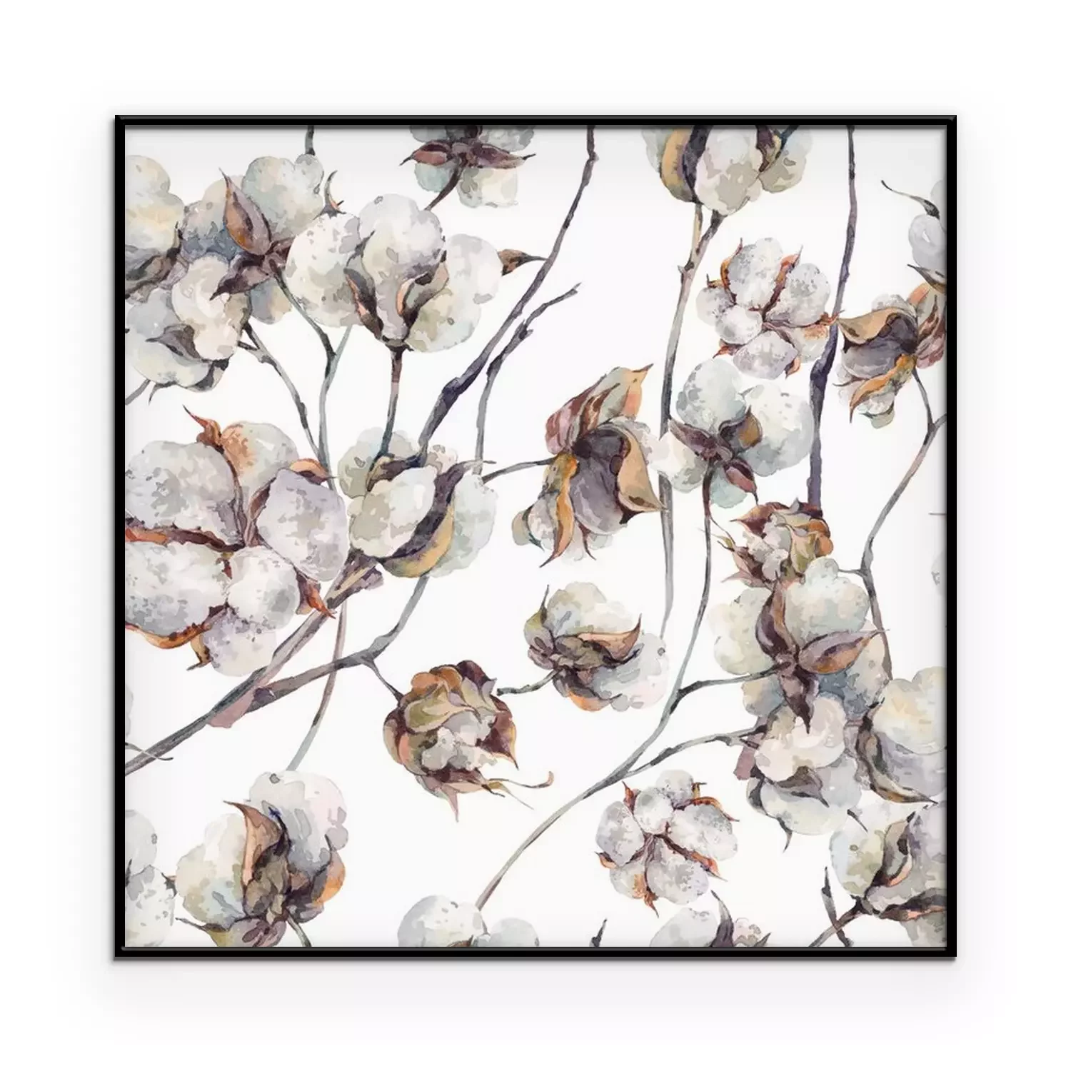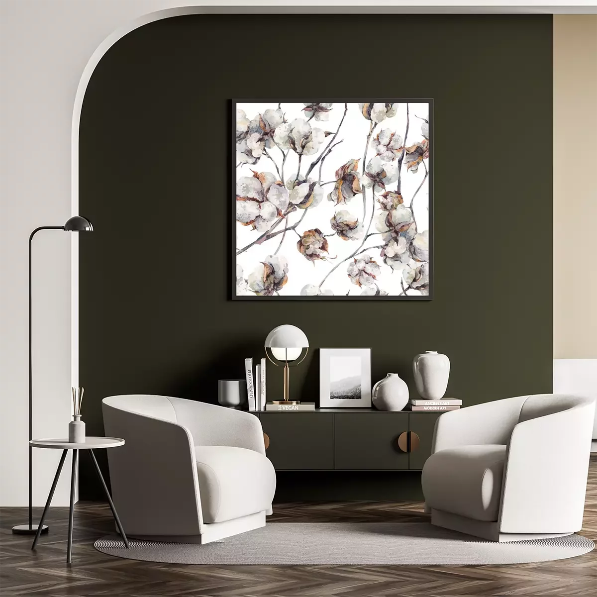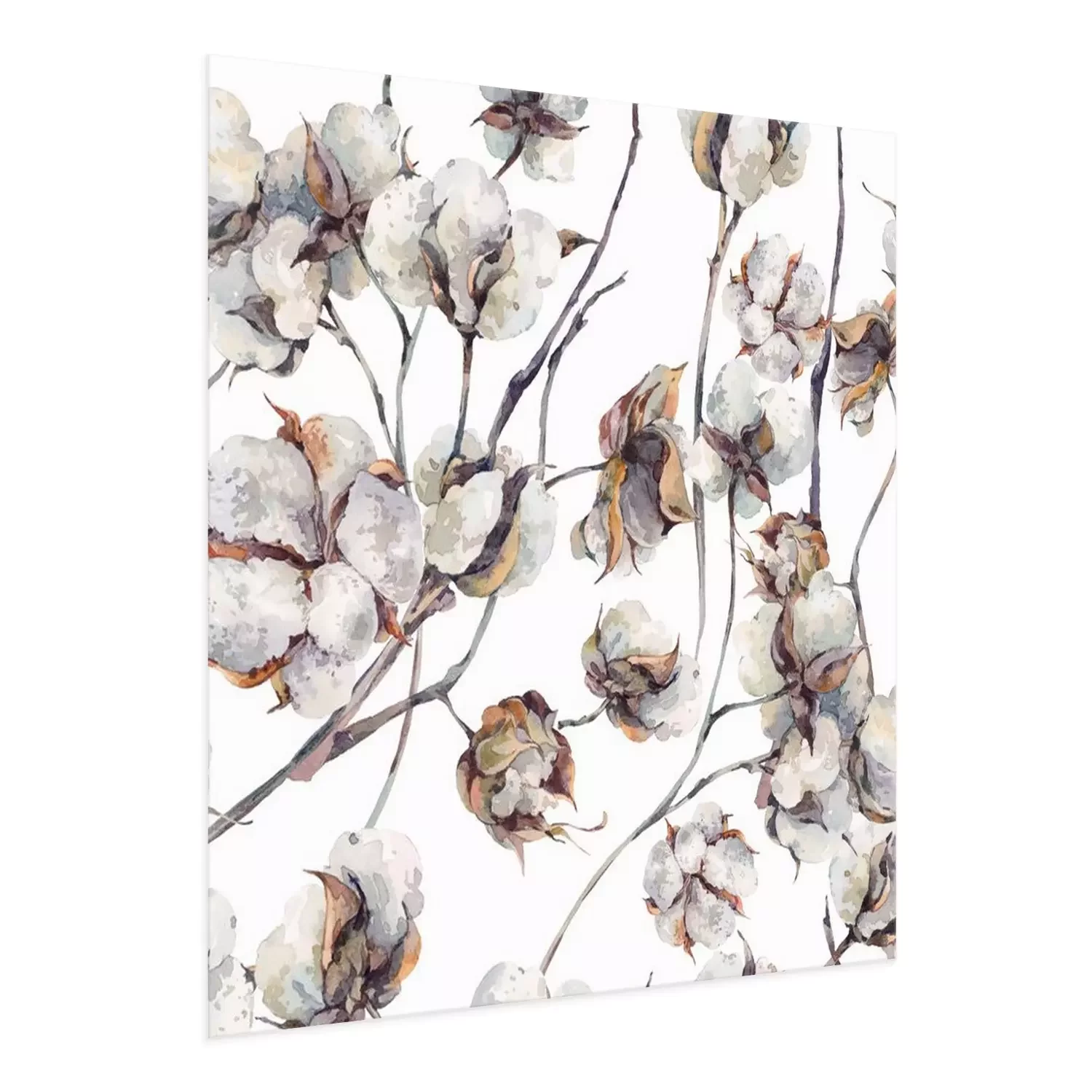 Poster  Aquarelle modèle sans soudure avec des brindilles et des fleurs de coton.