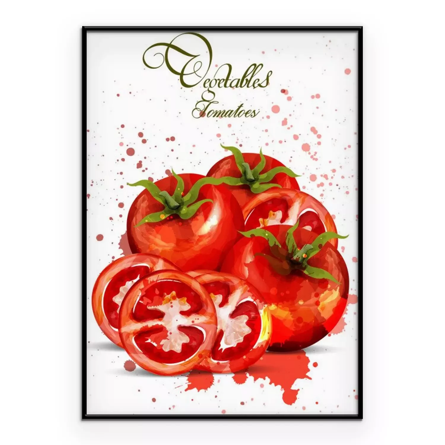 Poster  Aquarelle vecteur de tomates. Design délicieux avec des taches colorées à la main