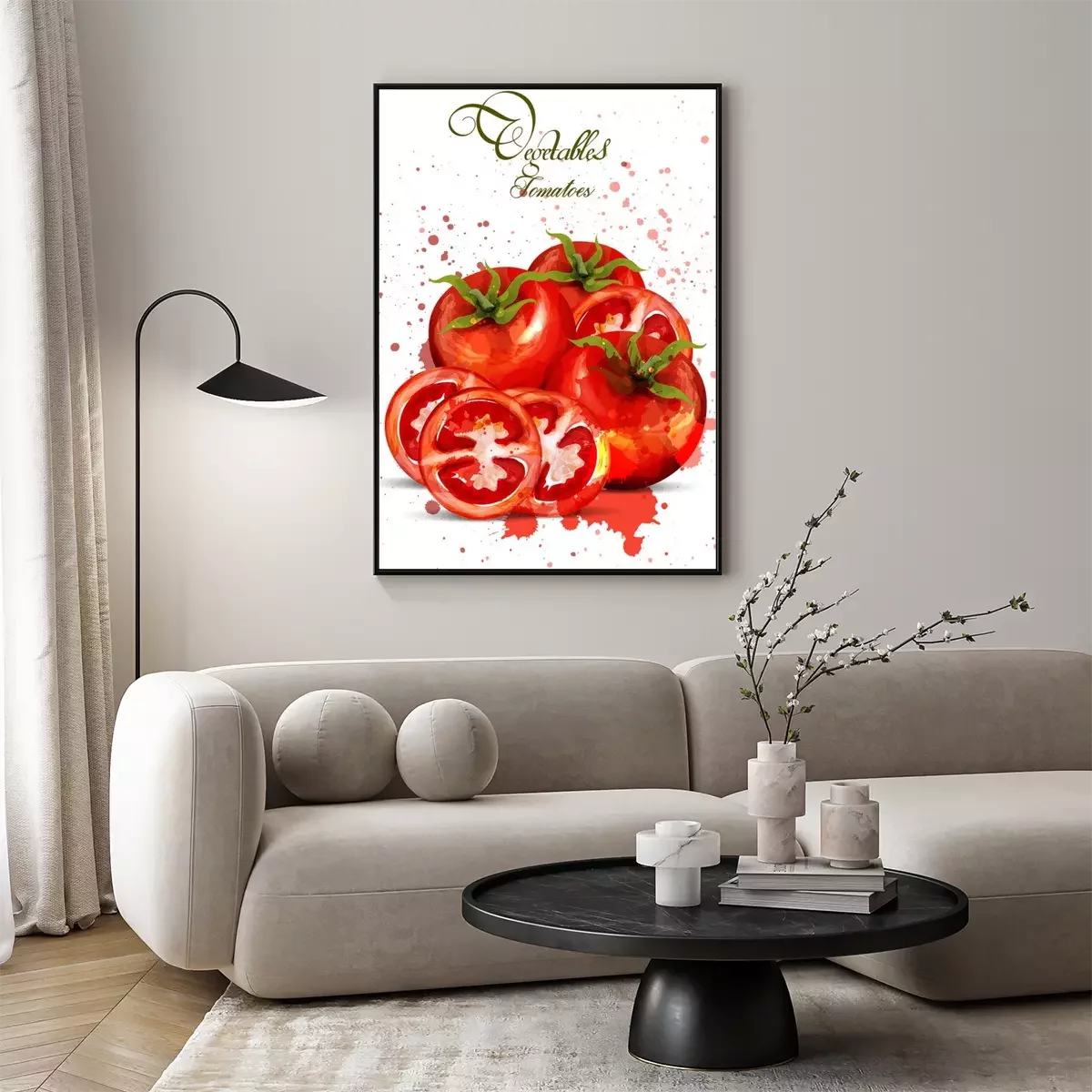 Poster : Aquarelle vecteur de tomates. Design délicieux avec des taches colorées à la main