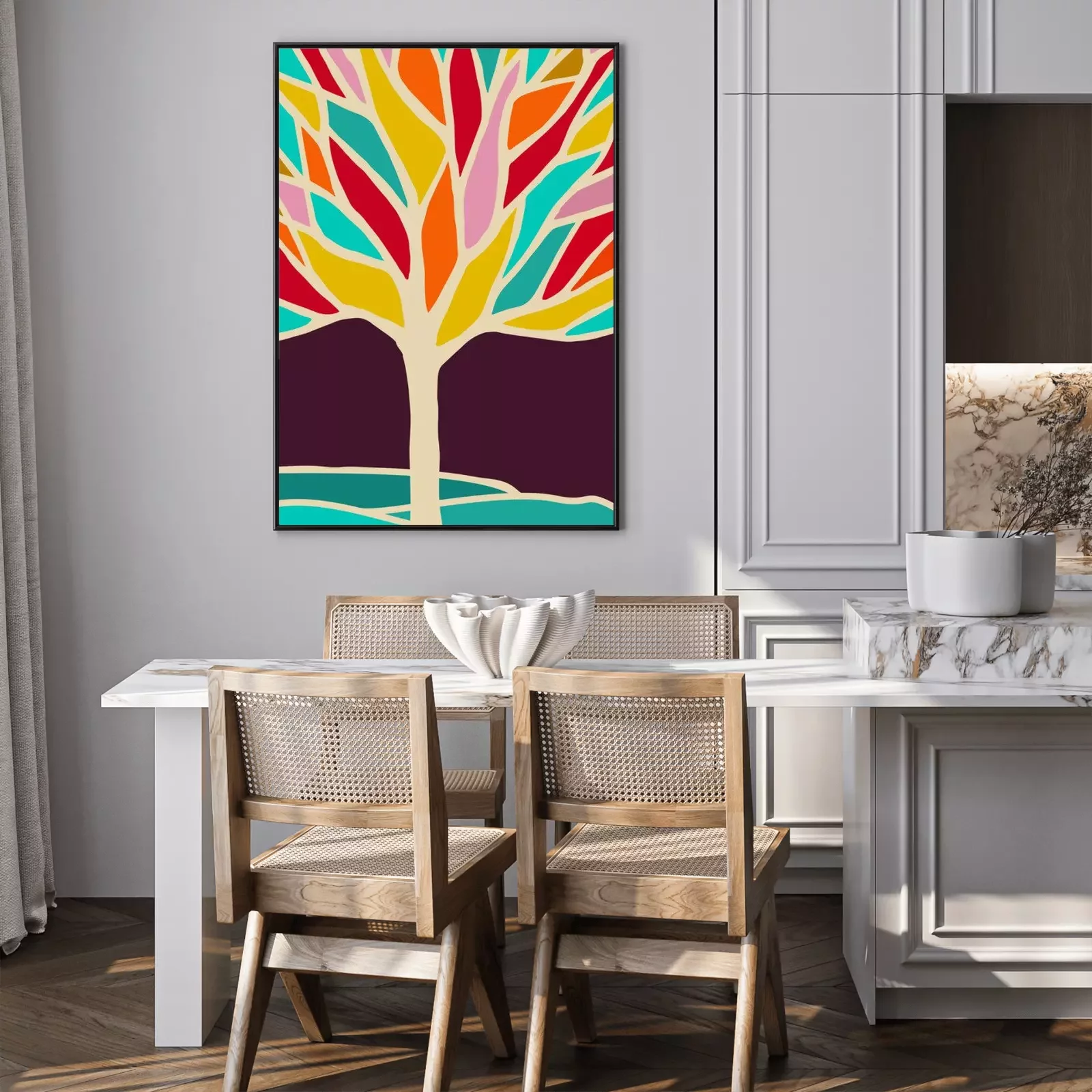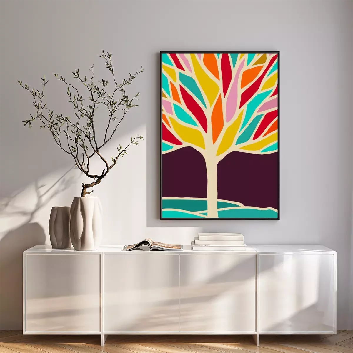 Poster : Arbre arc-en-ciel composé de formes colorées
