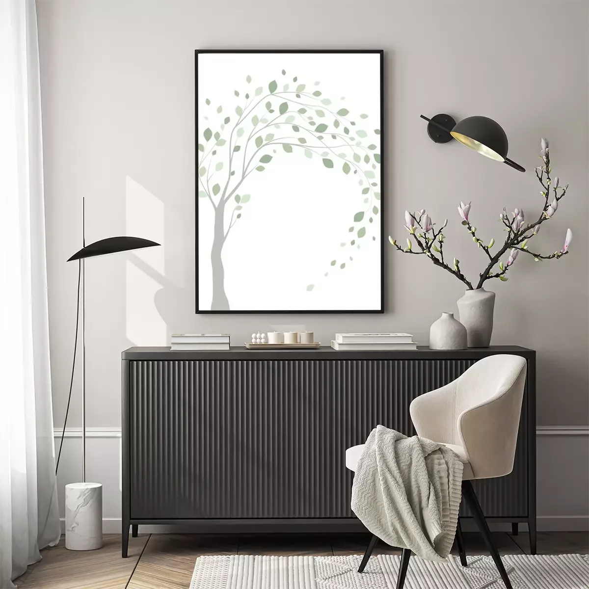 Poster : Arbre avec des branches secouées par le vent