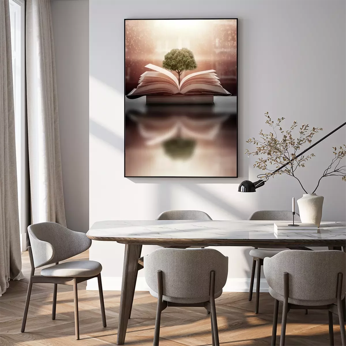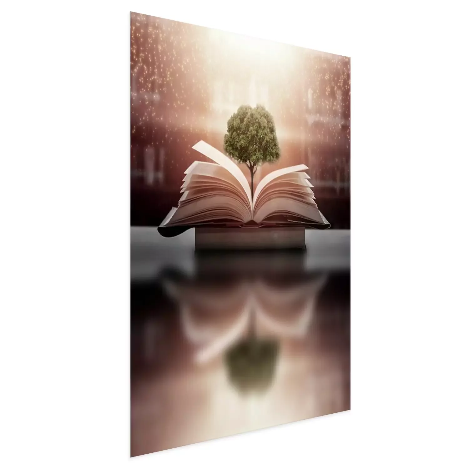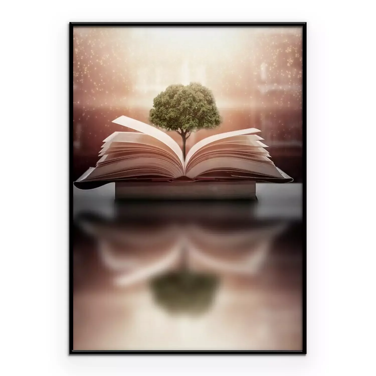 The concept of education by planting a tree of knowledge in the opening of an old book in the library and the magical magic of light that flies to the destination of success. Beautiful background