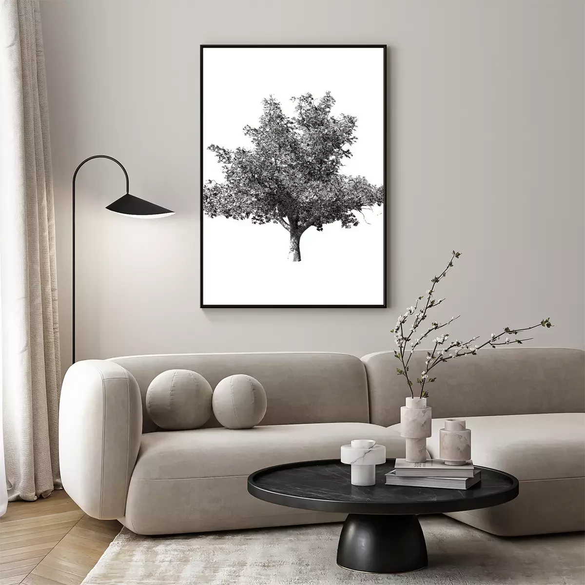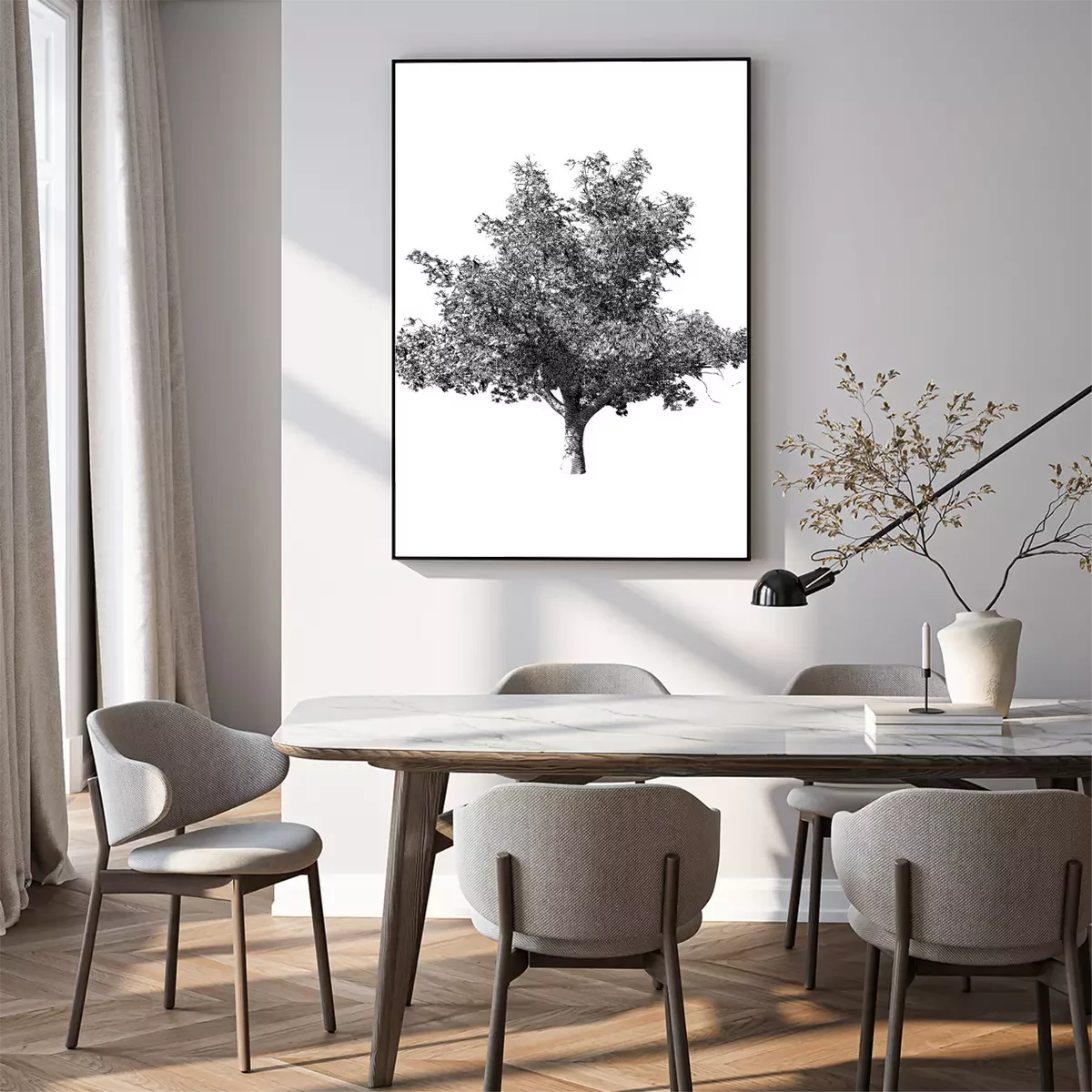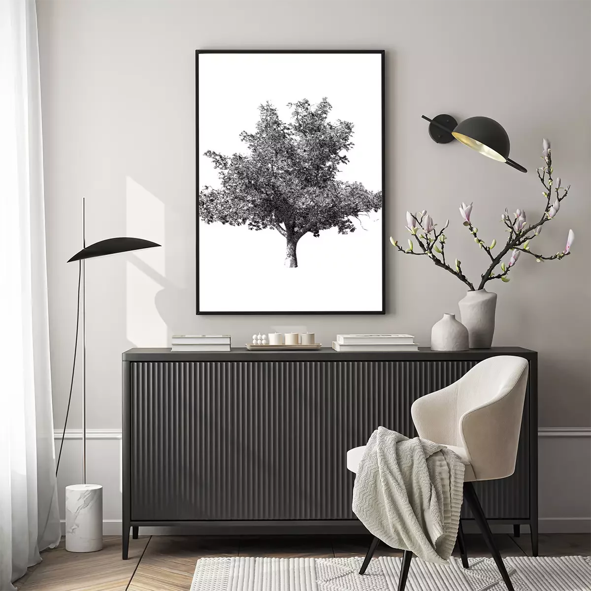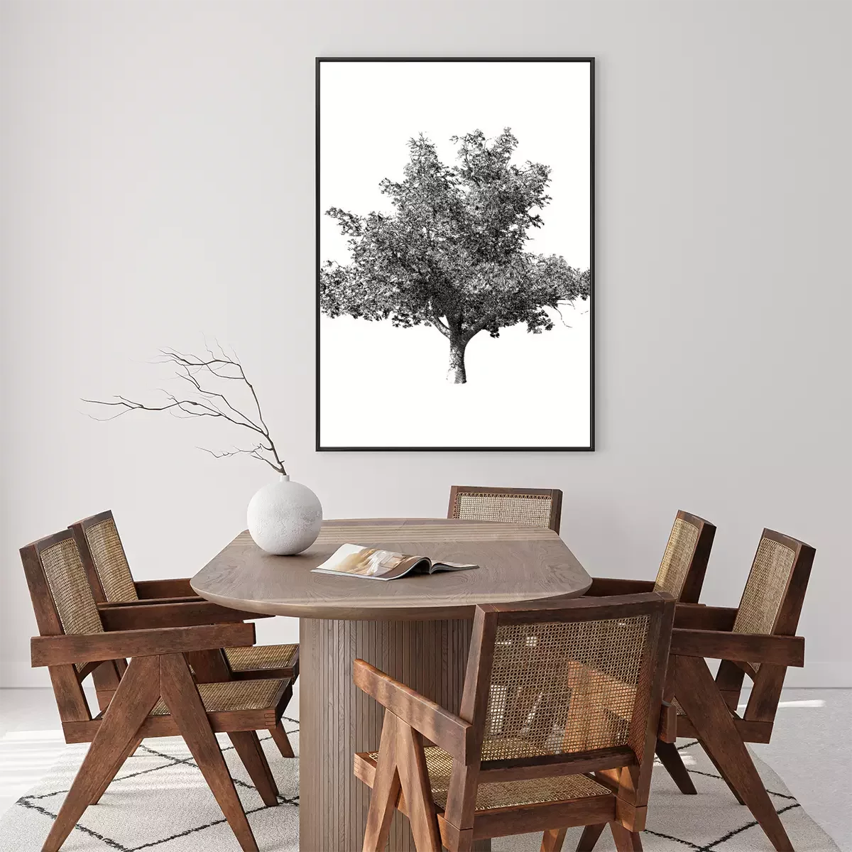 Poster : Arbre solitaire en noir et blanc