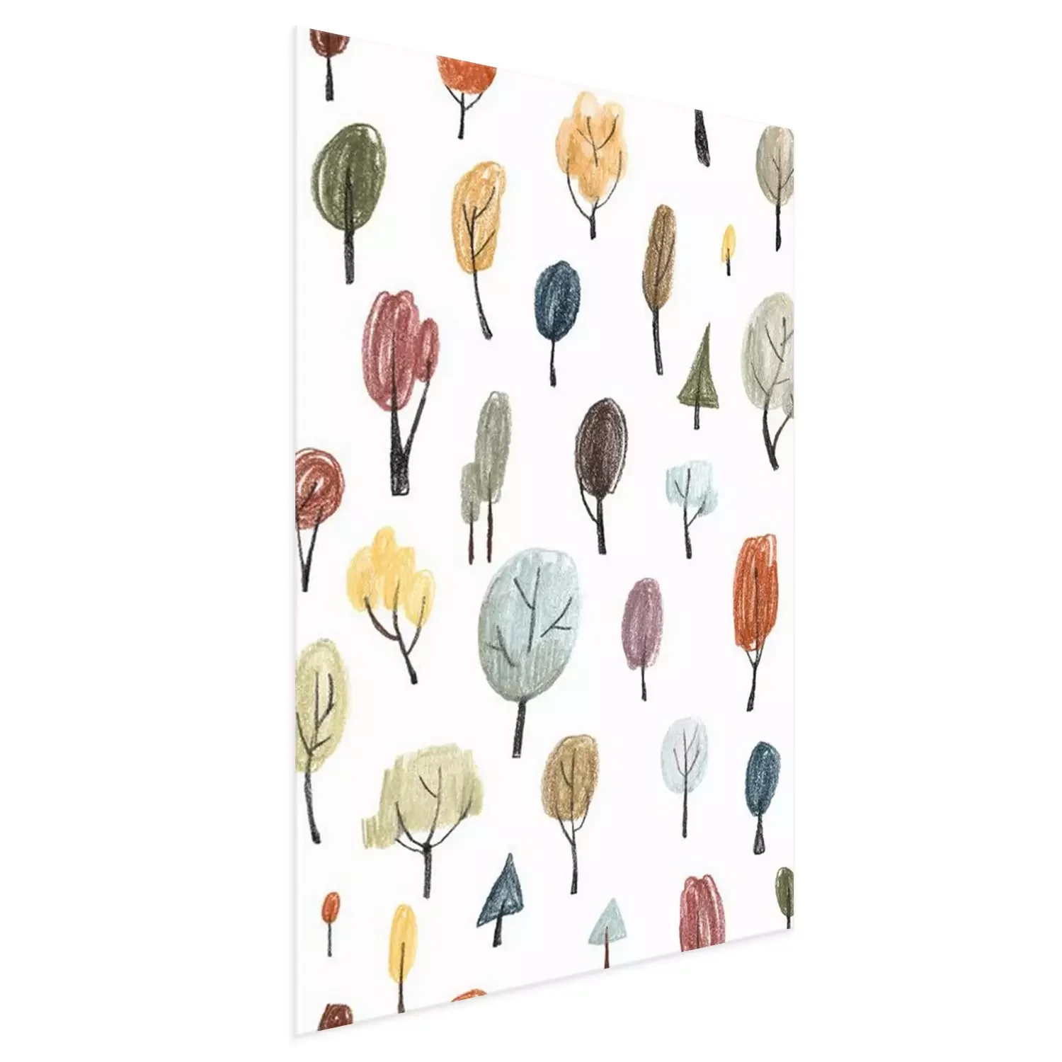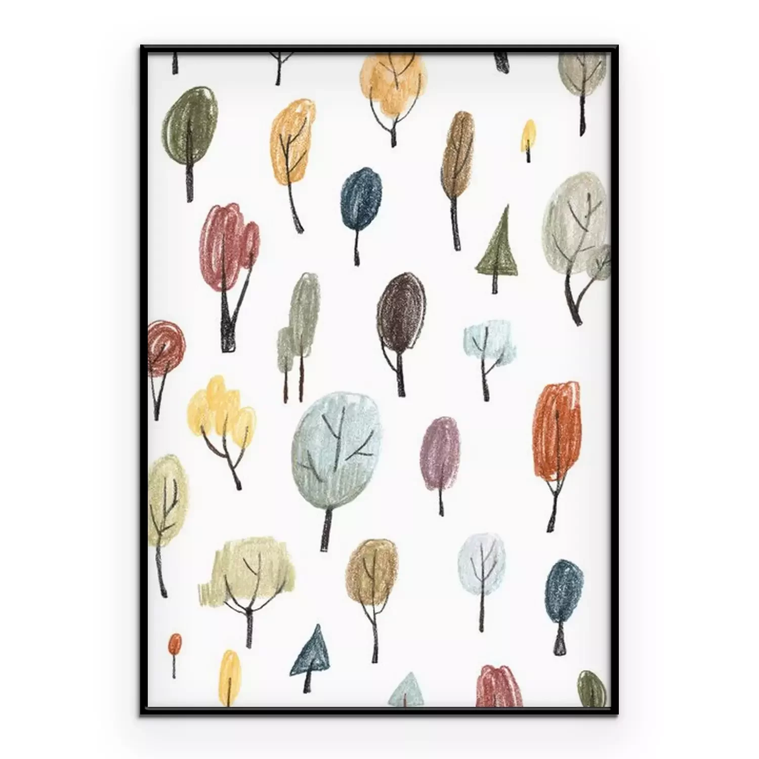 Poster  Arbres imitation de dessin d'enfant en couleur