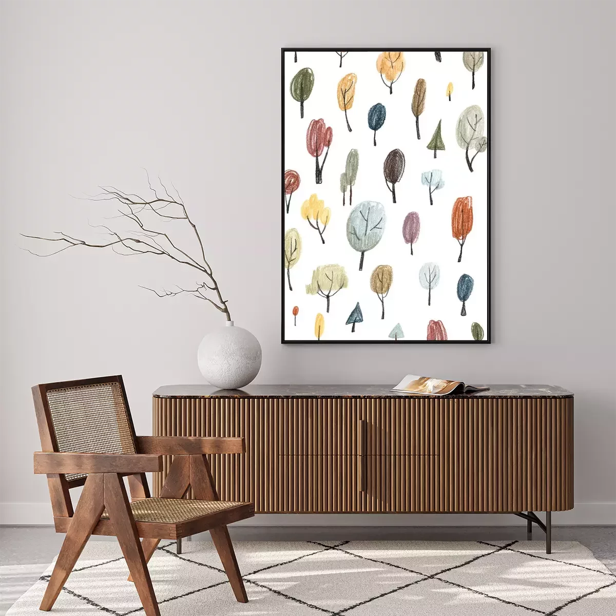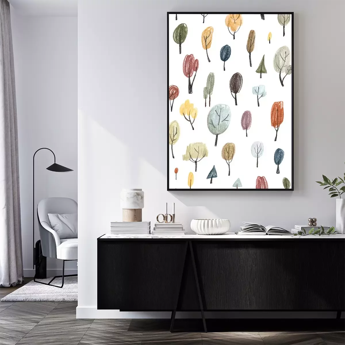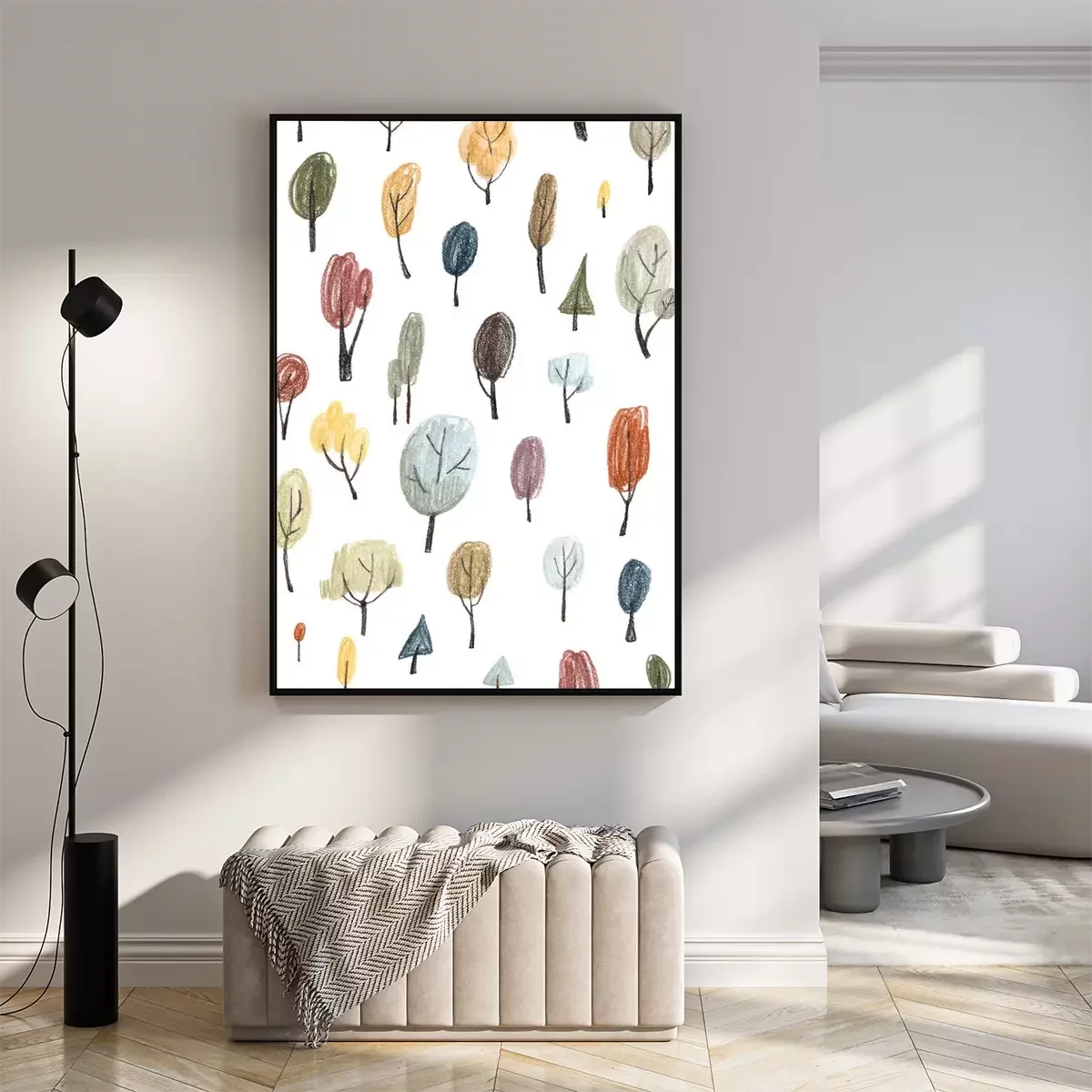Poster : Arbres imitation de dessin d'enfant en couleur