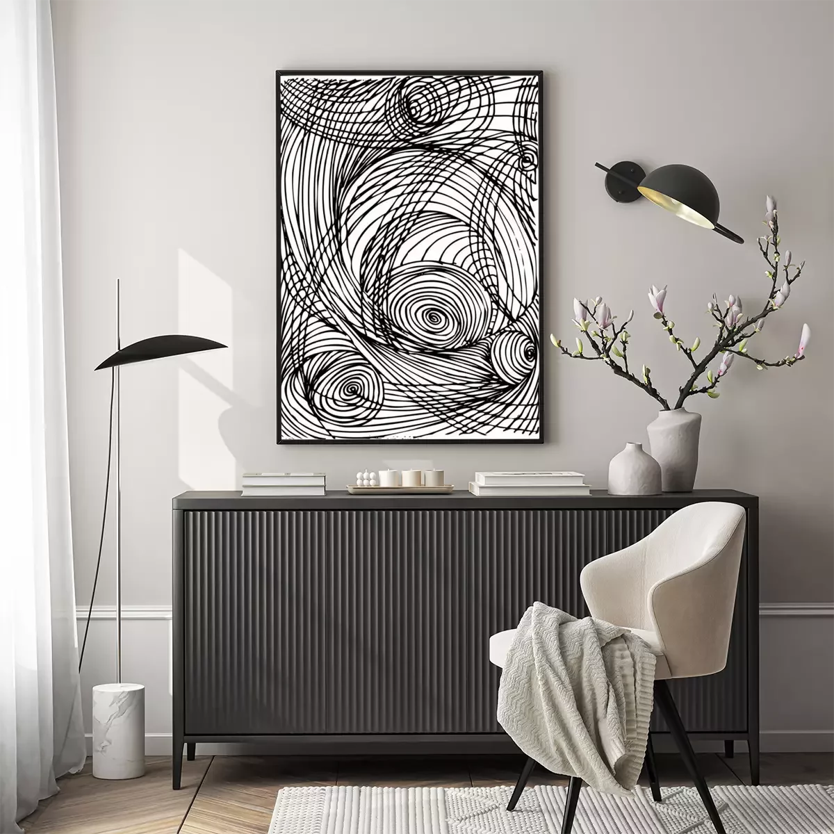 Texture tridimensionnelle en noir et blanc
