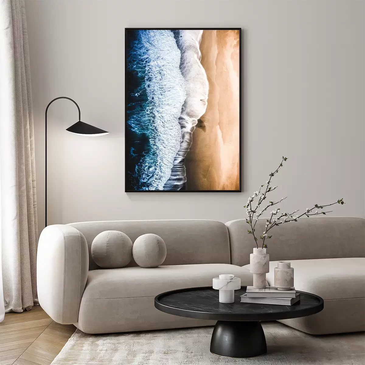 Poster  arial drone shot of coast beach