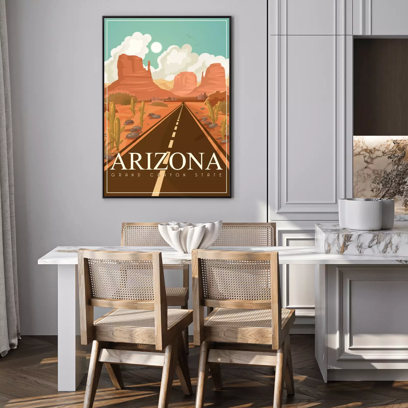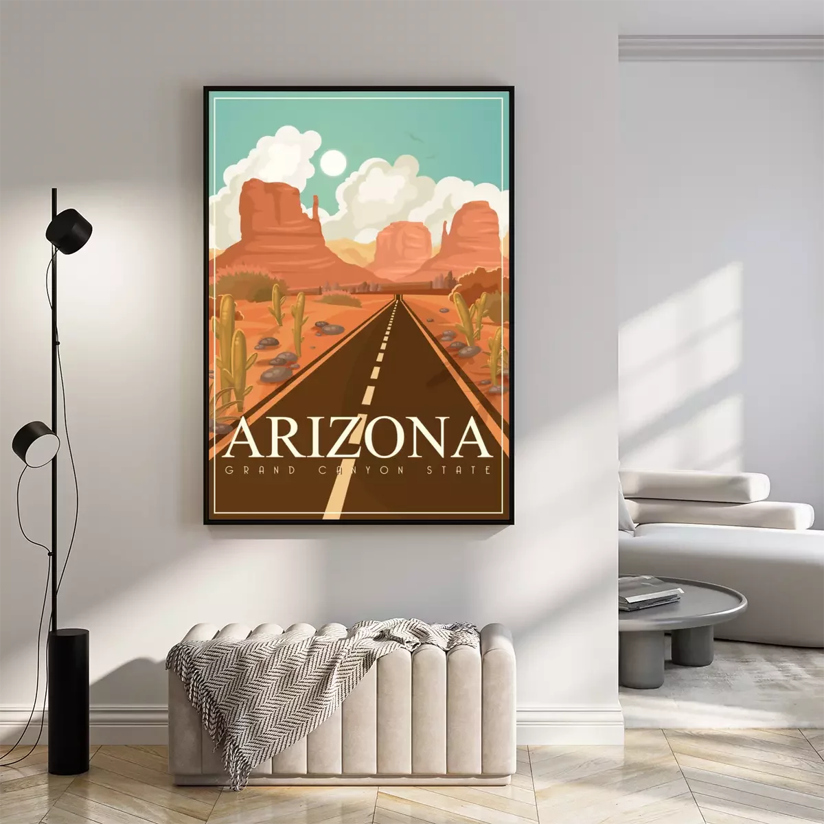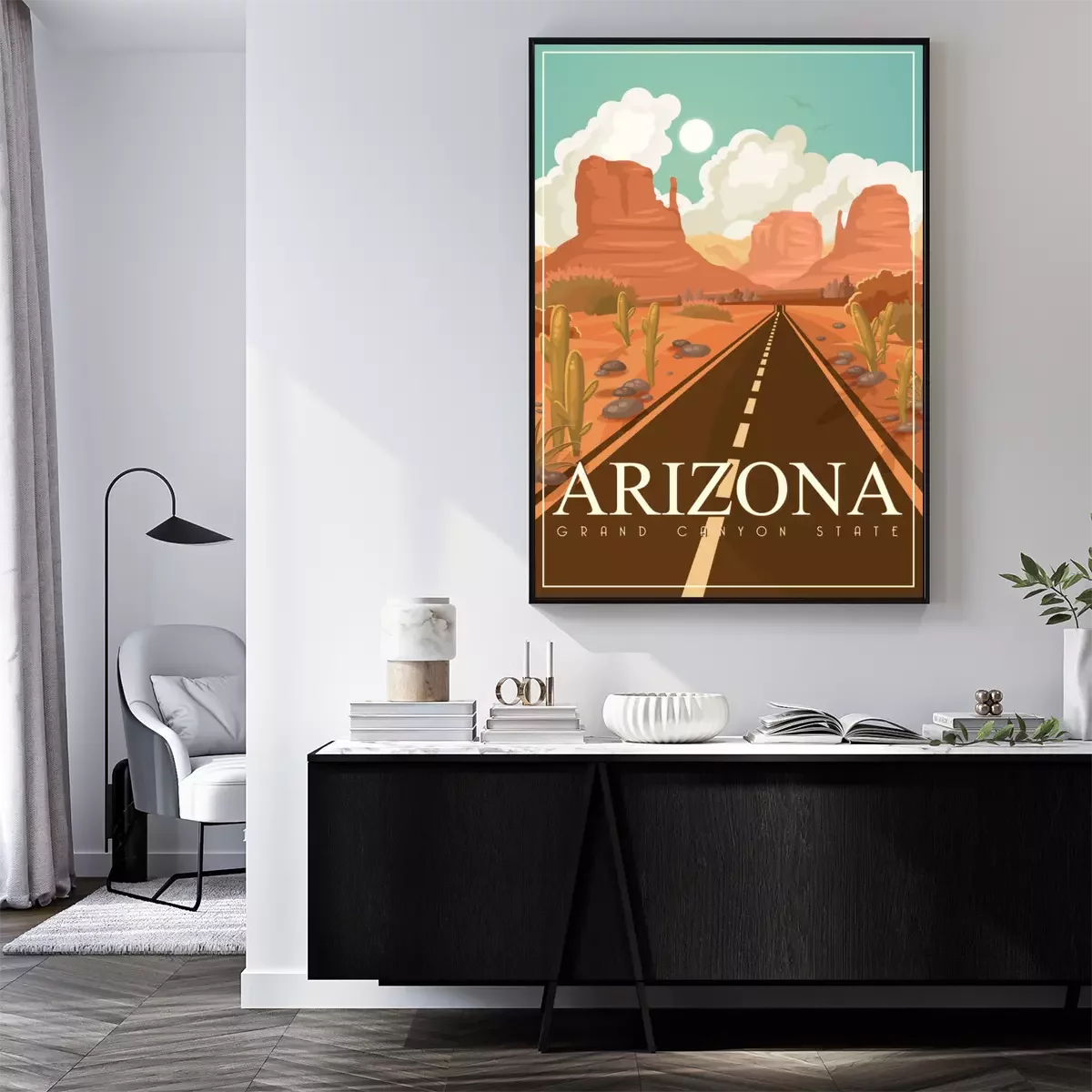 Poster  Arizona, vecteur, Américain, affiche. USA, voyage, Illustration. Carte de voeux des Etats-Unis d'Amérique