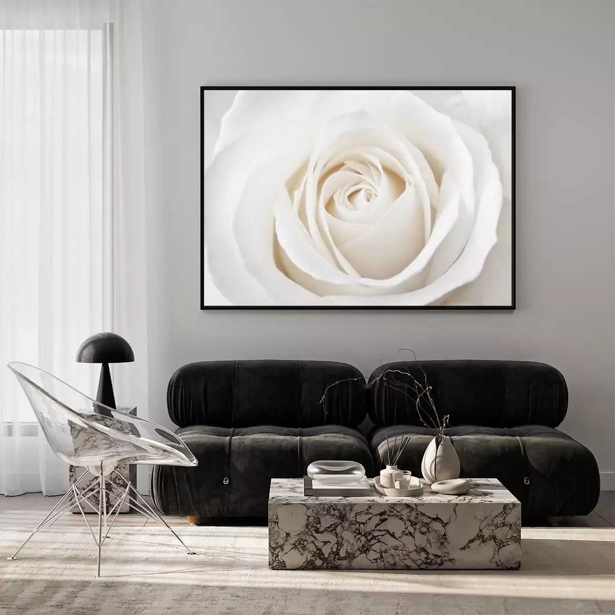 Poster  Arrangement de pétales de rose blanche sur gros plan