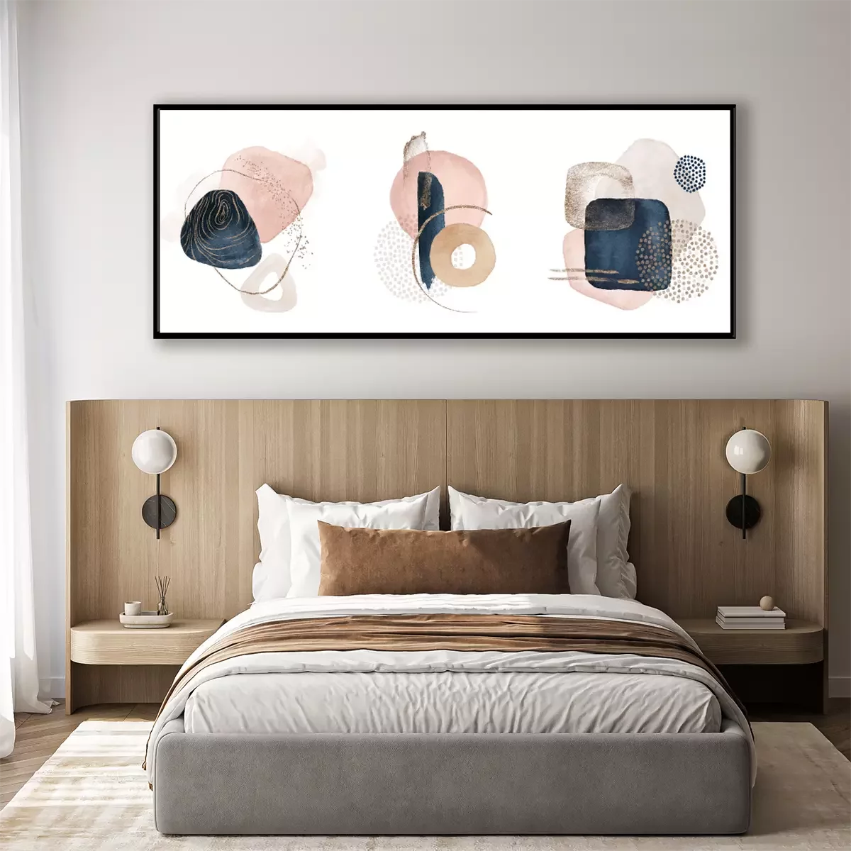 Poster : Arrangements. Navy blue, blush, pink, ivory, beige watercolor Illustration and gold elements, on white background. Abstract modern print set. Logo. Wall art. Poster. Business card.