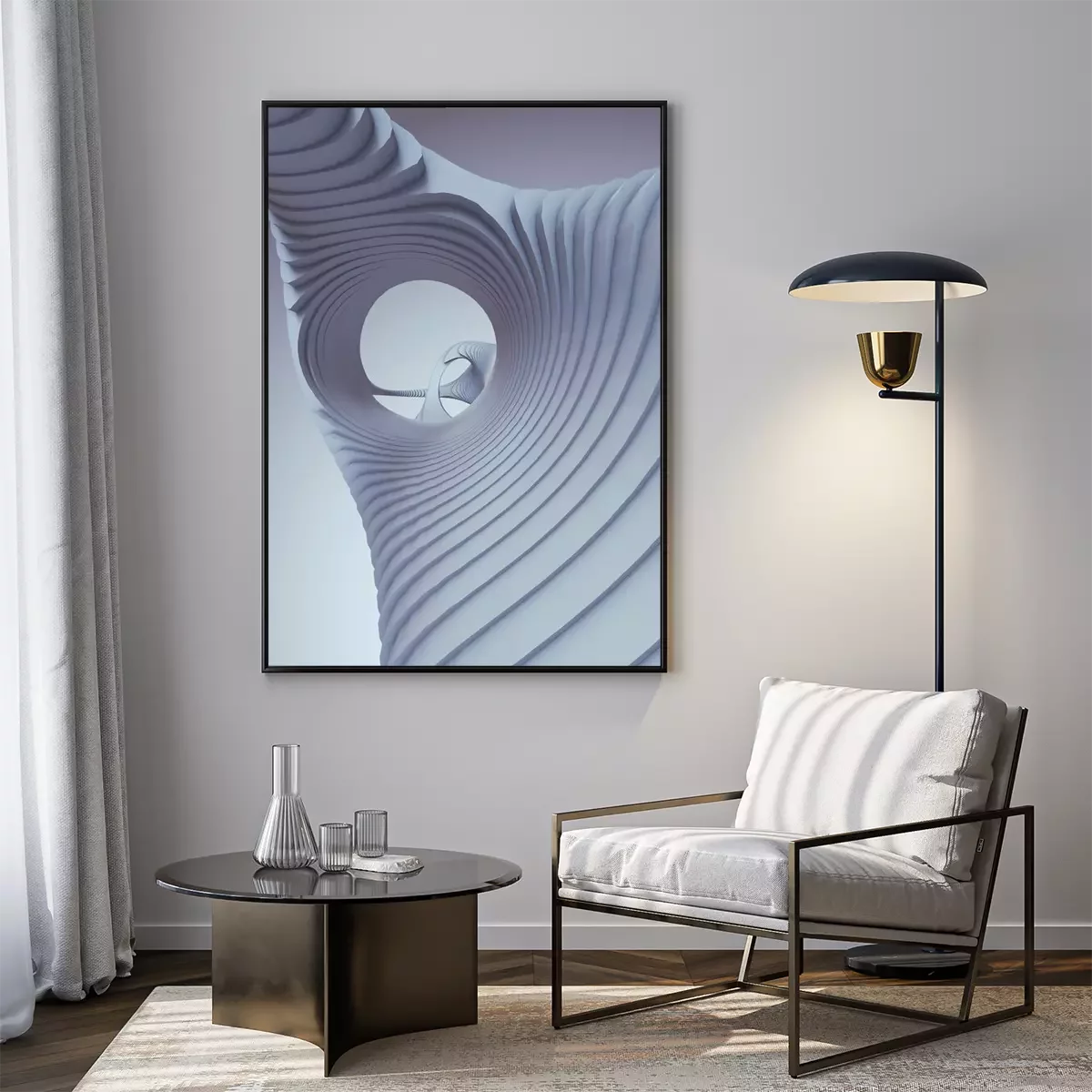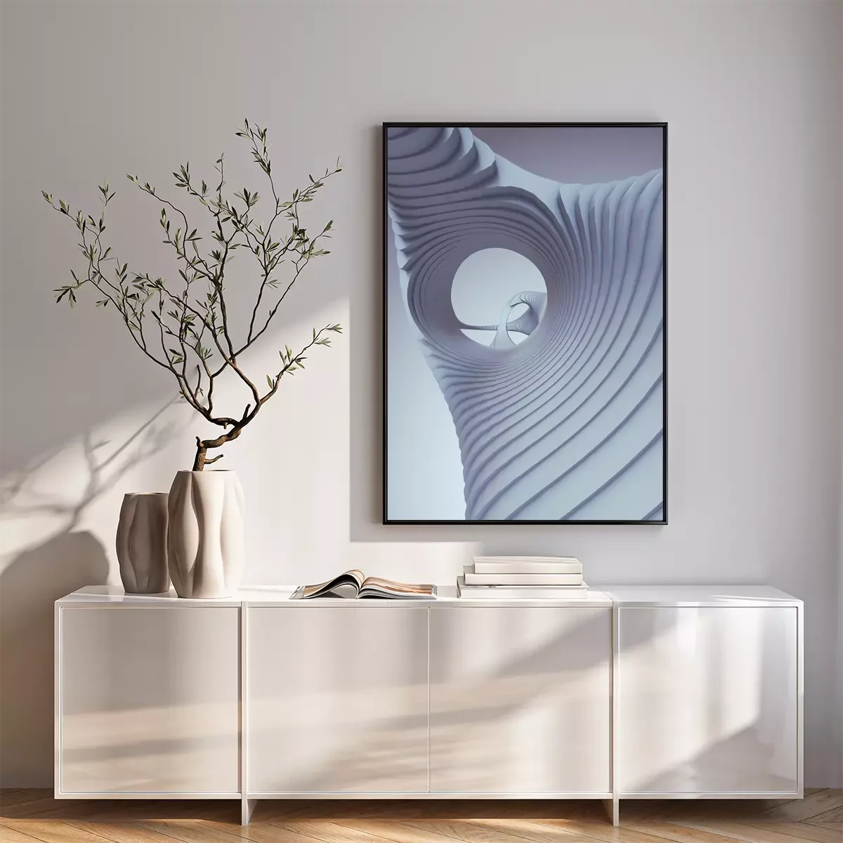 Poster  Arrière-plan futuriste en forme de rayures blanches. Illustration de rendu 3D