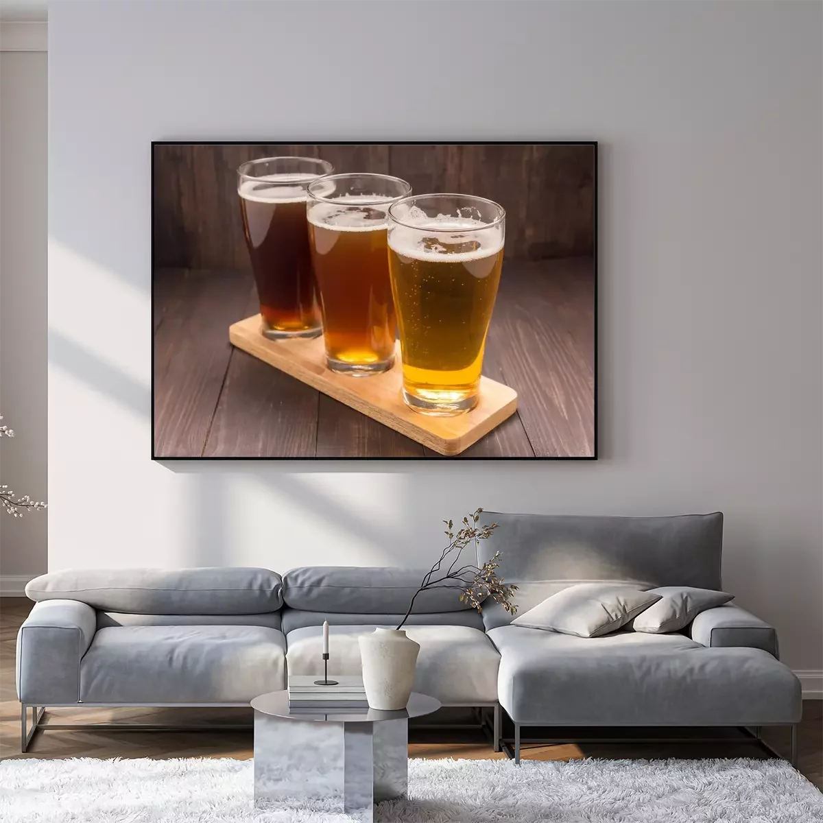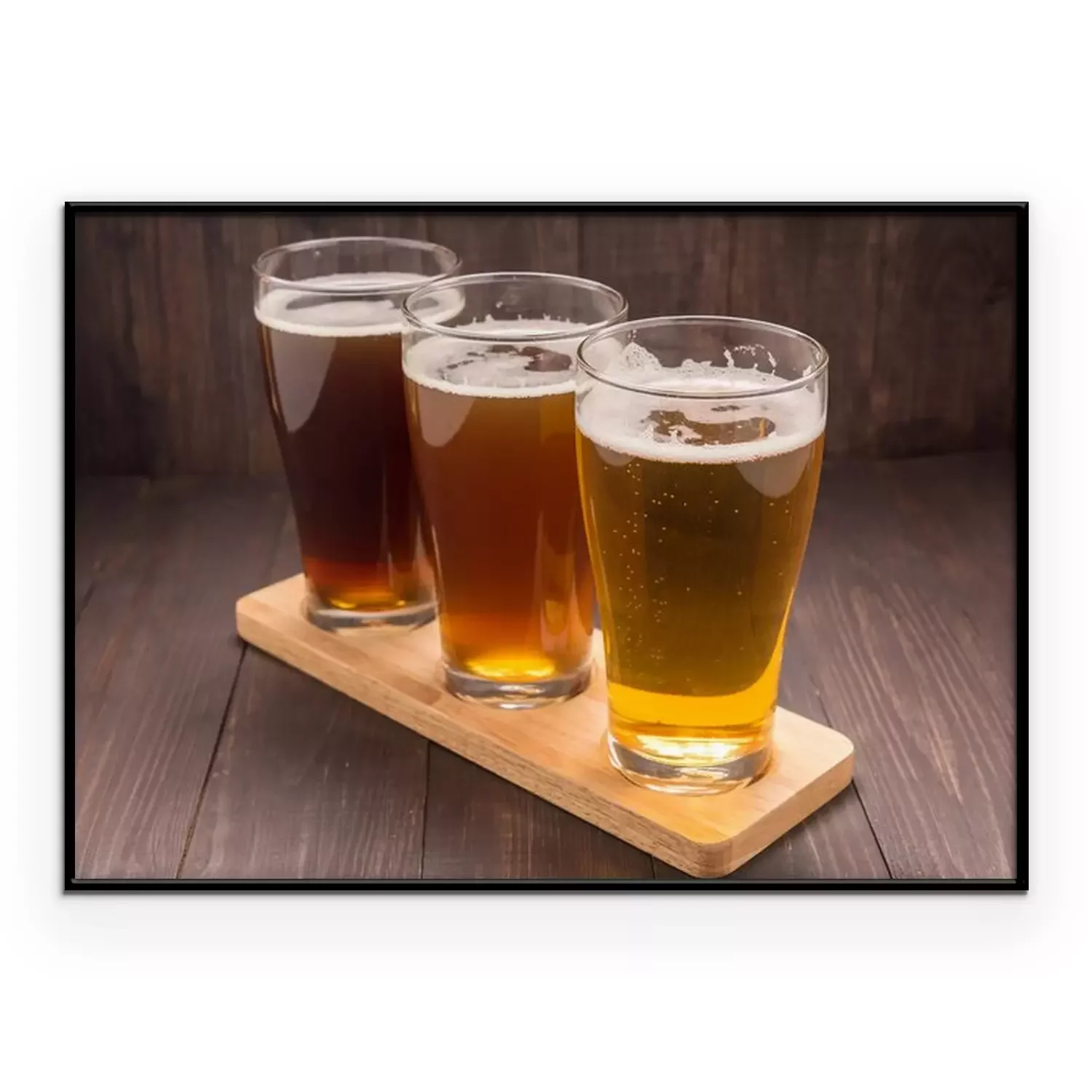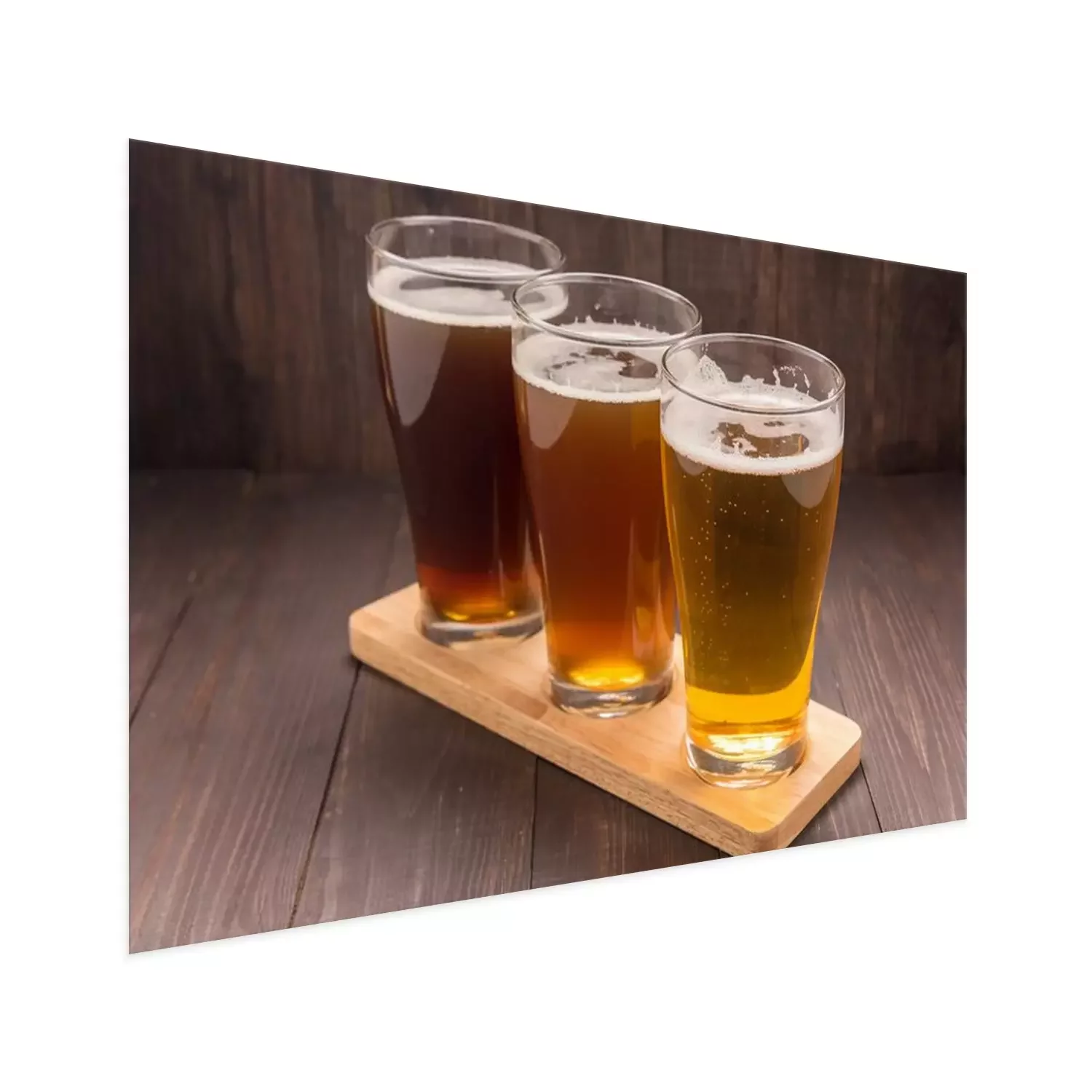Poster : Assortiment de verres de bière sur une table en bois