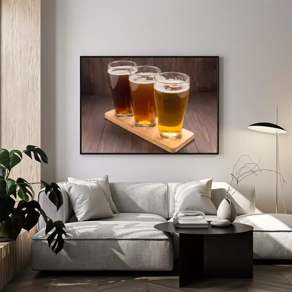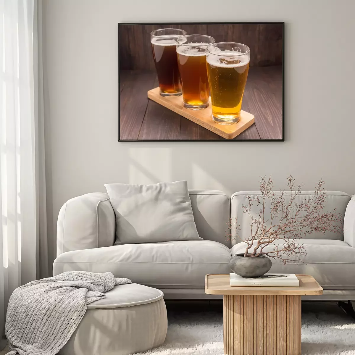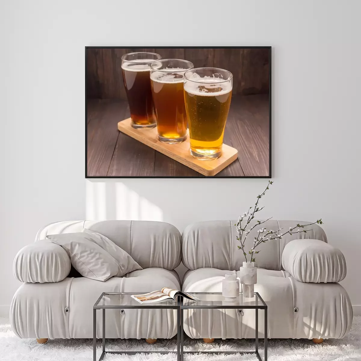 Poster : Assortiment de verres de bière sur une table en bois