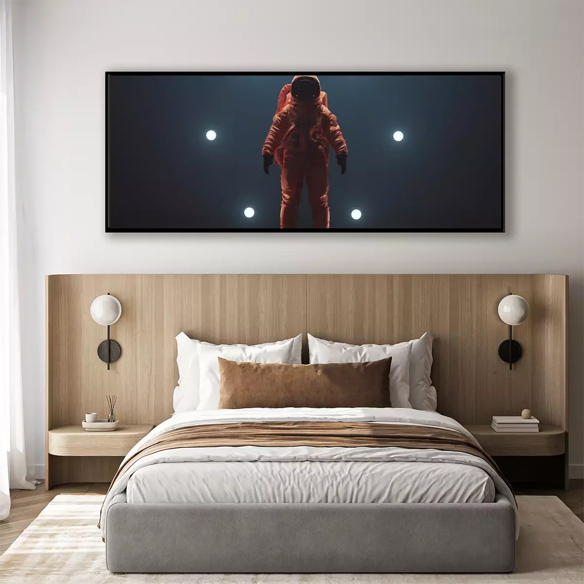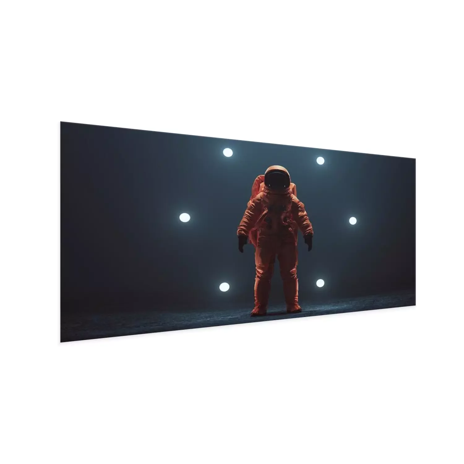 Poster  Astronaut in an Orange Space Suit with Black Visor Standing in a Alien Void 3d illustration 3d render