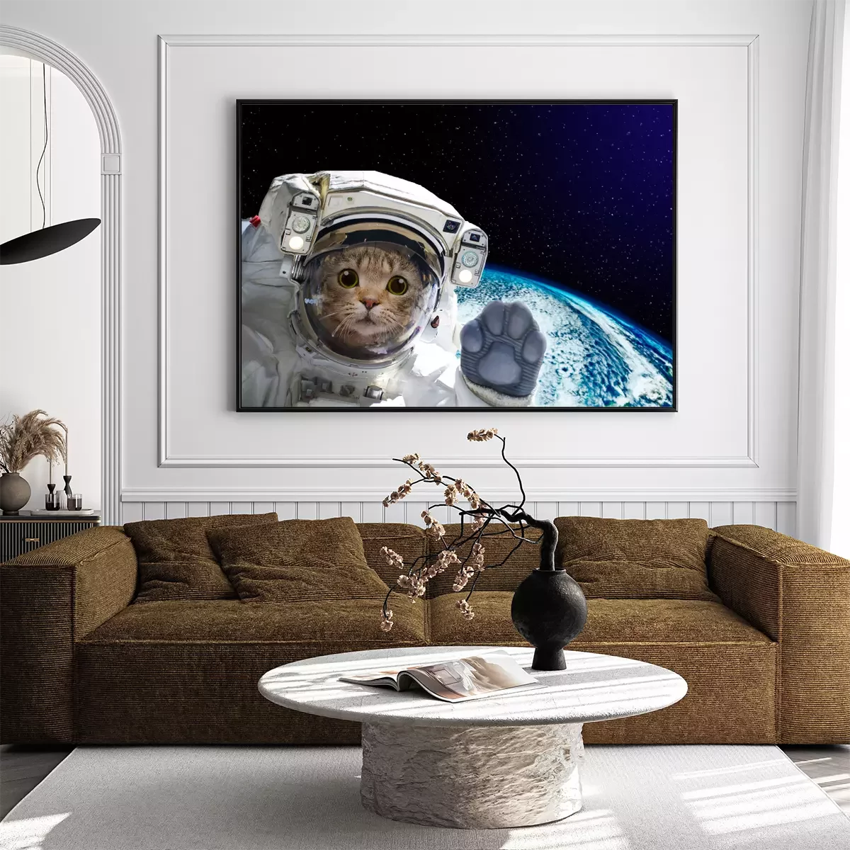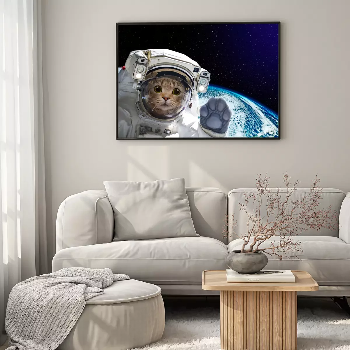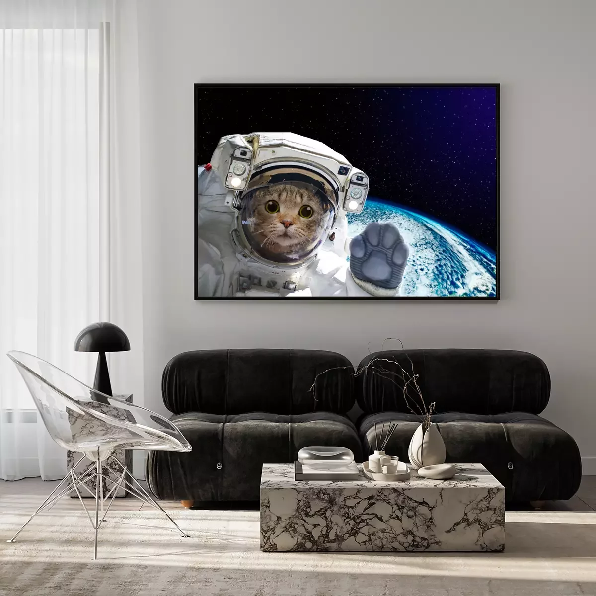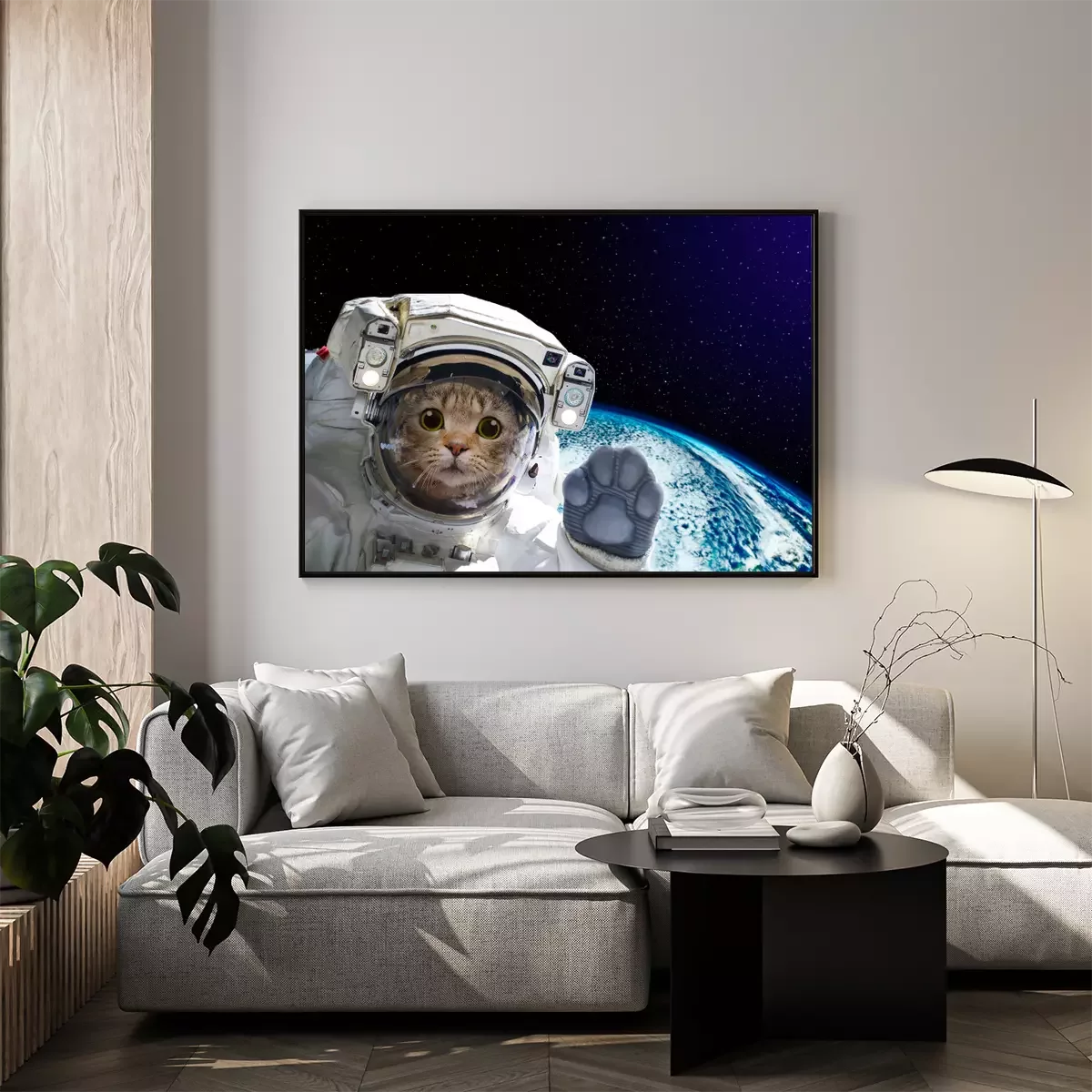 Poster : Astronaute de chat dans l'espace sur fond du globe. Éléments de cette image fournis par la NASA.