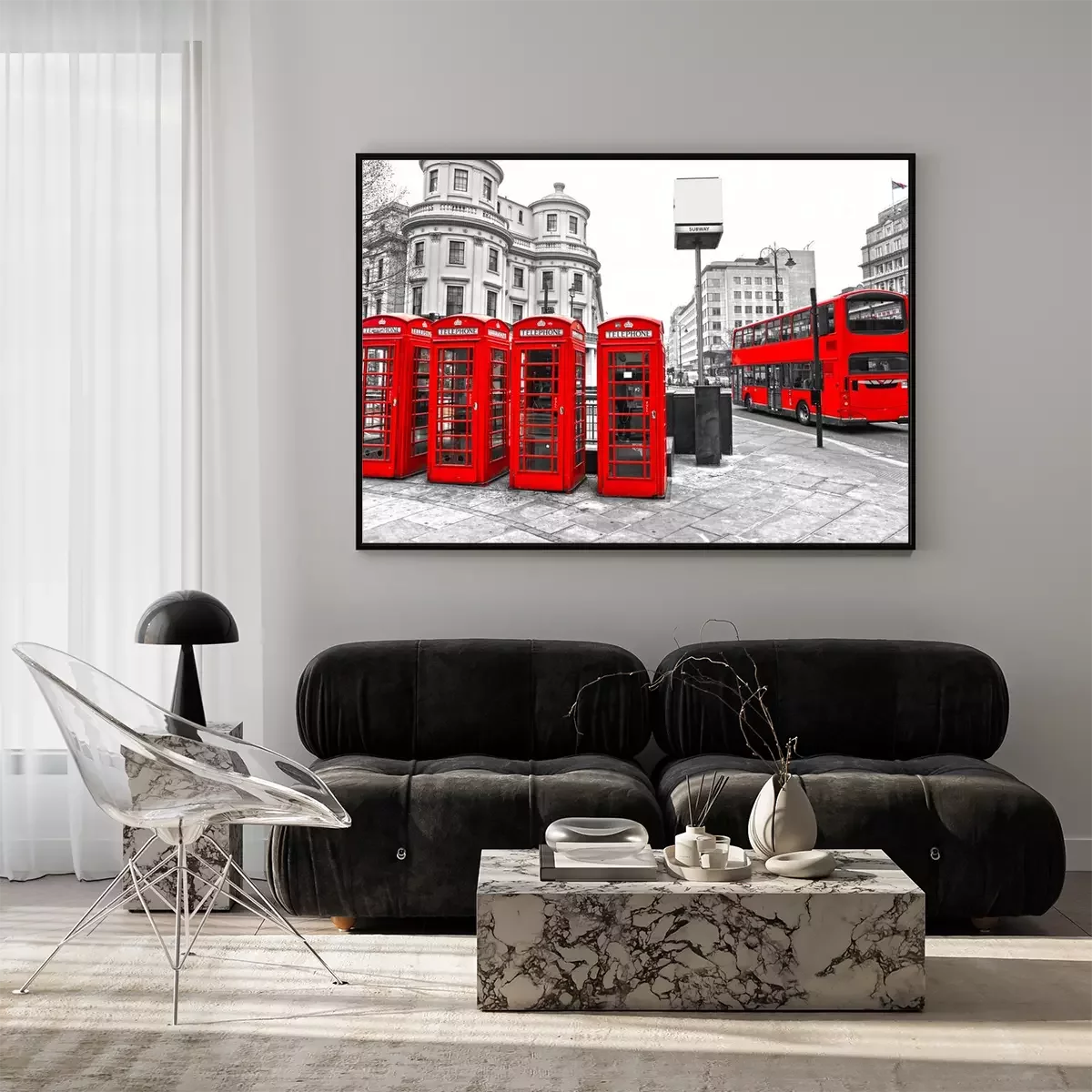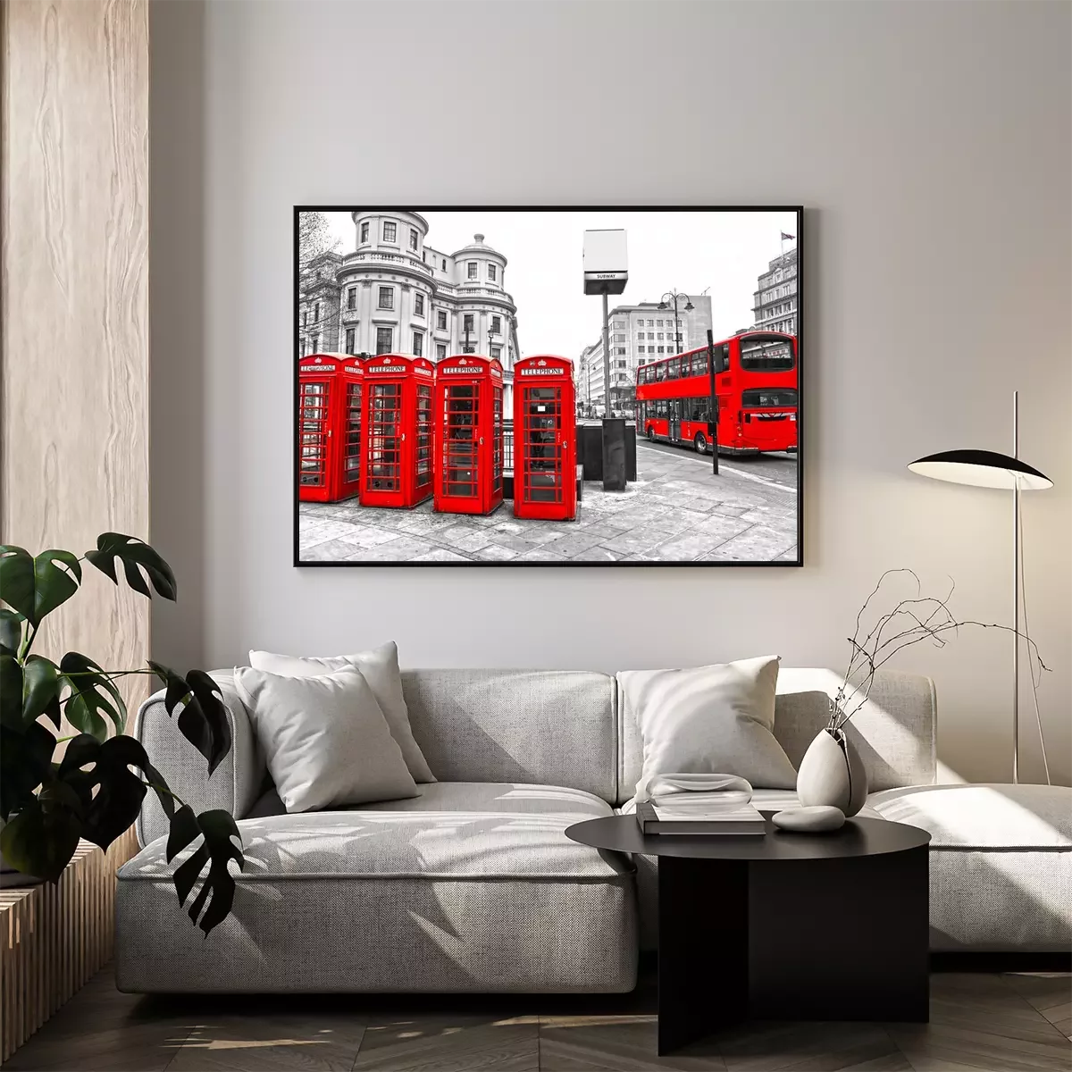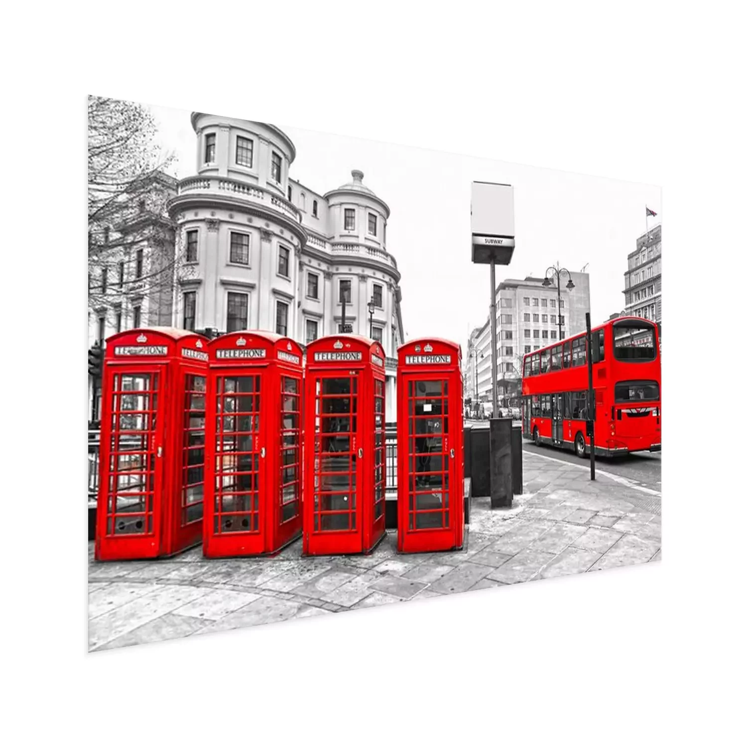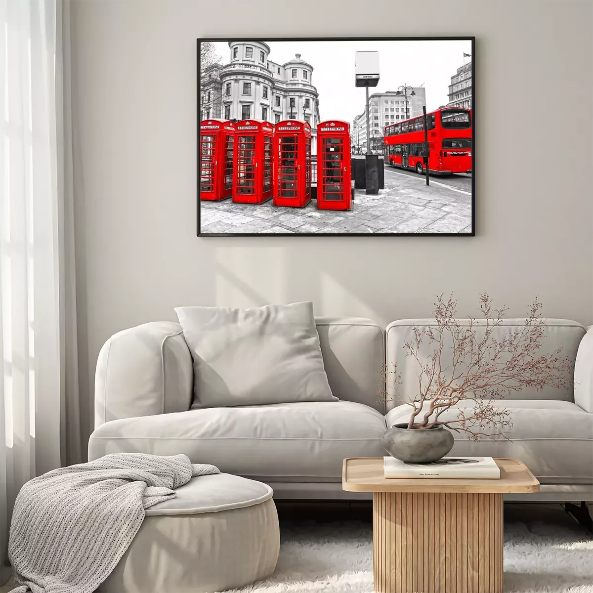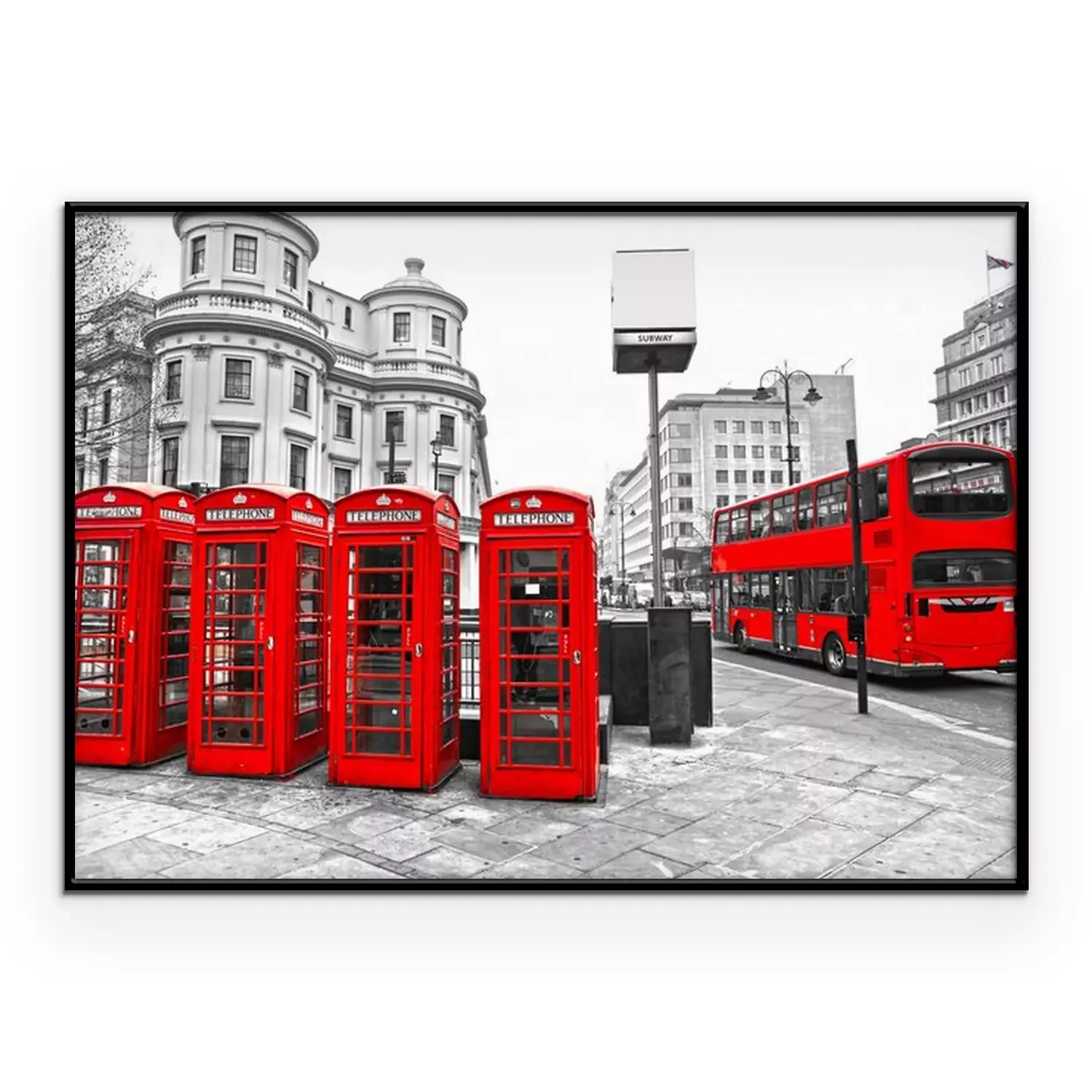 Poster  Autobus rouge de Londres et cabines téléphoniques