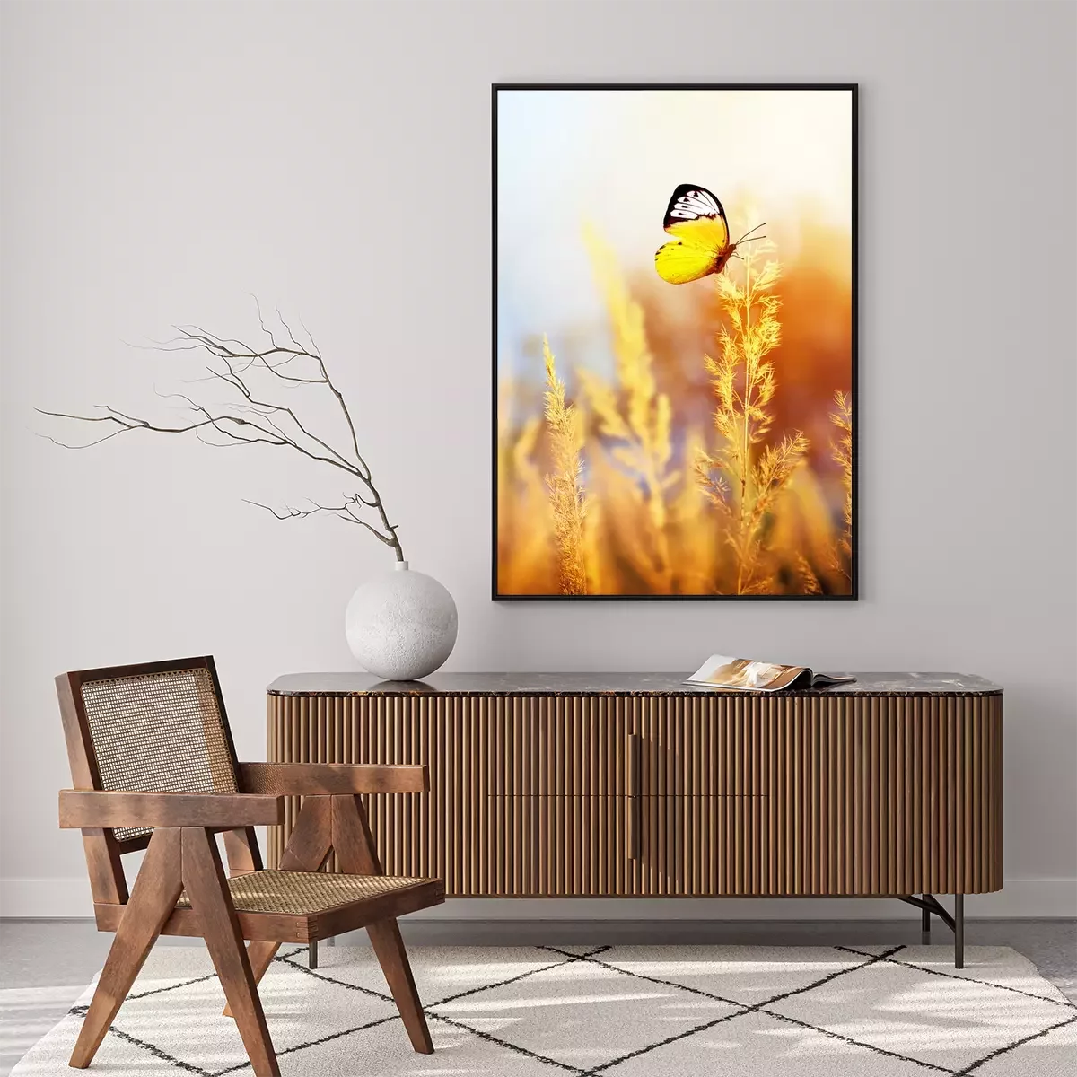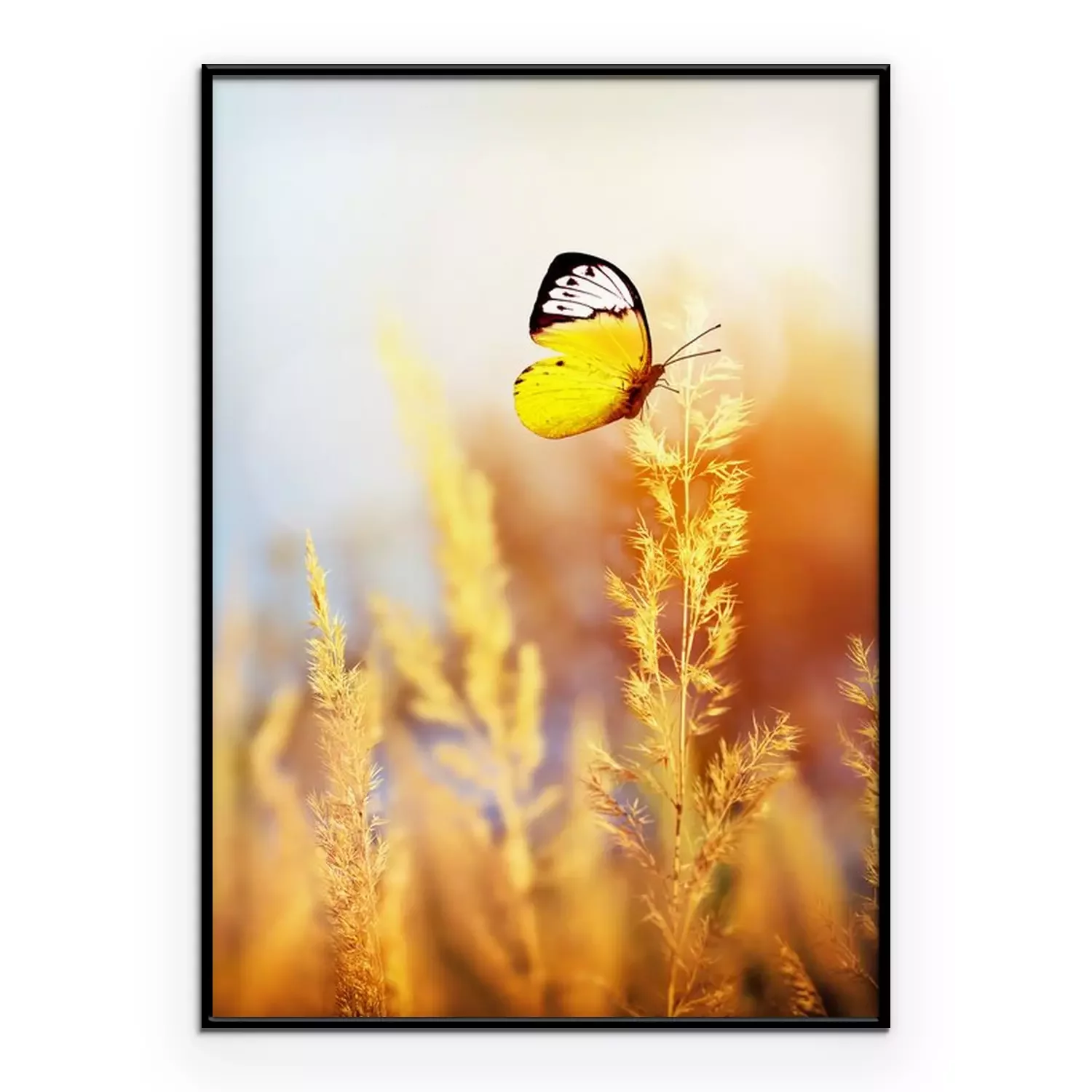 Poster  Autumn and summer landscape. Yellow field and blue sky.