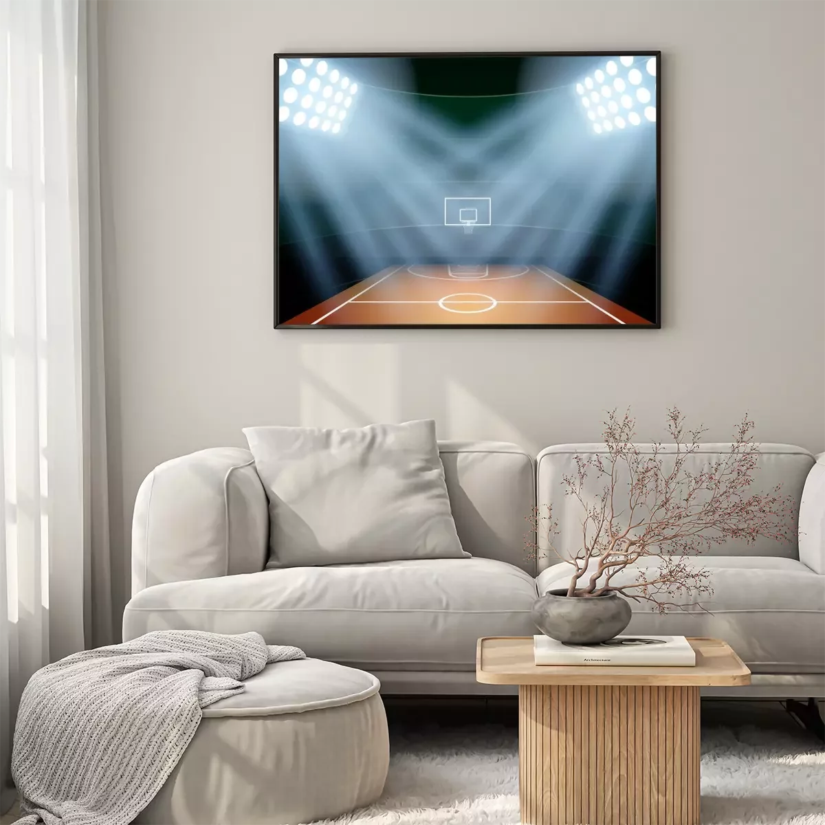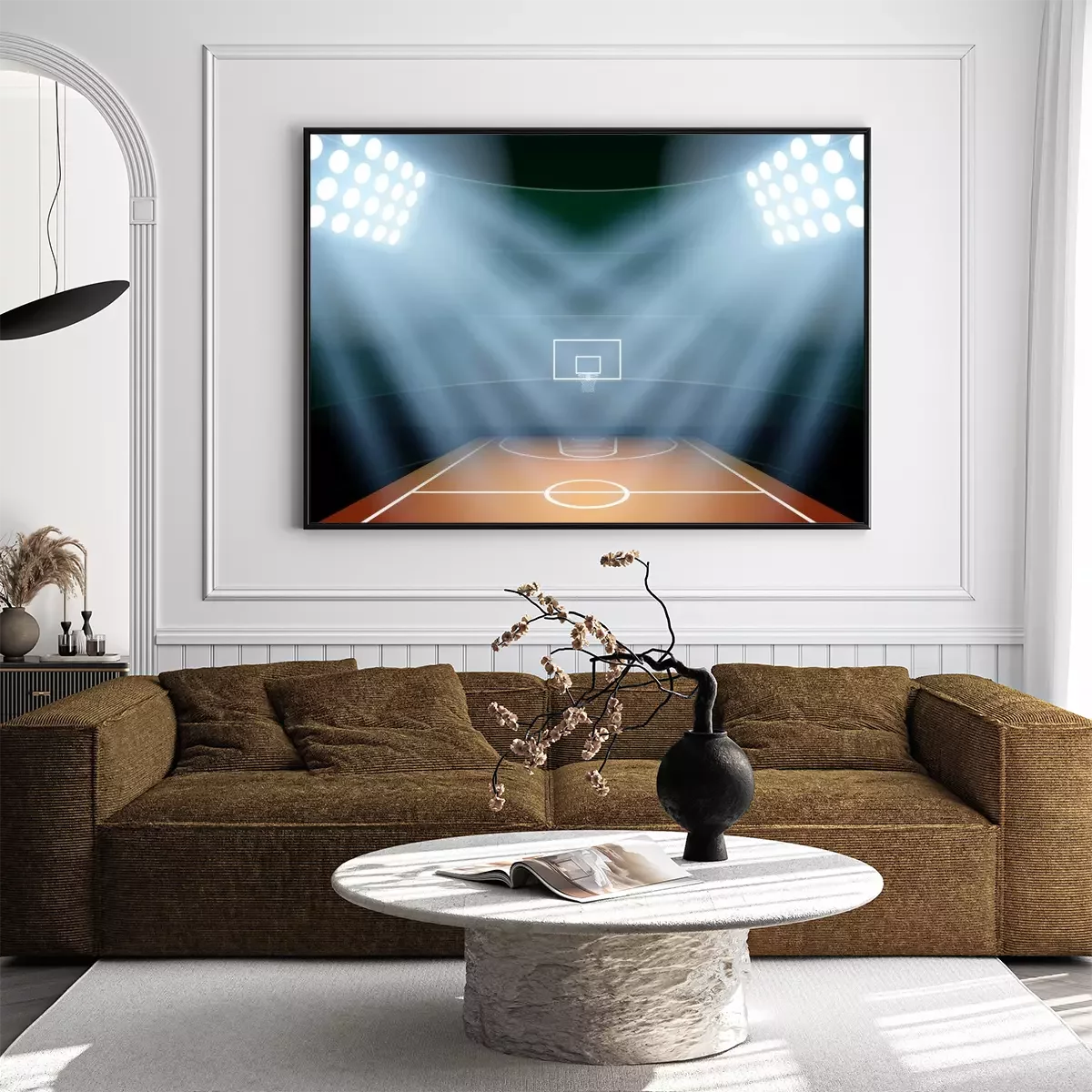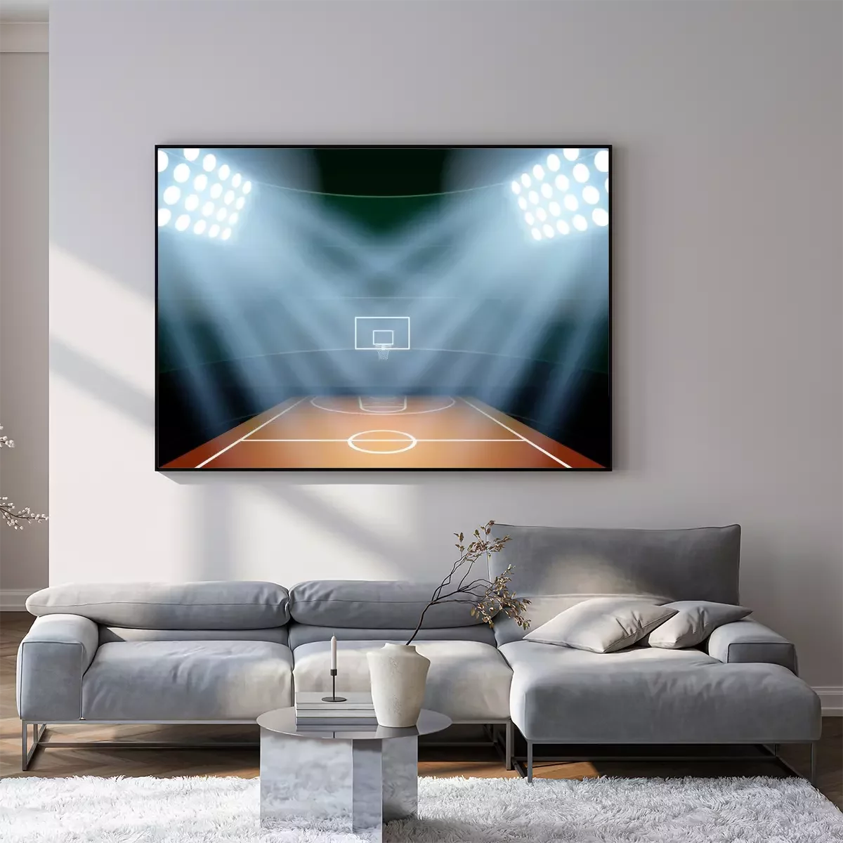 Poster : Background for posters night basketball stadium in the spotlight