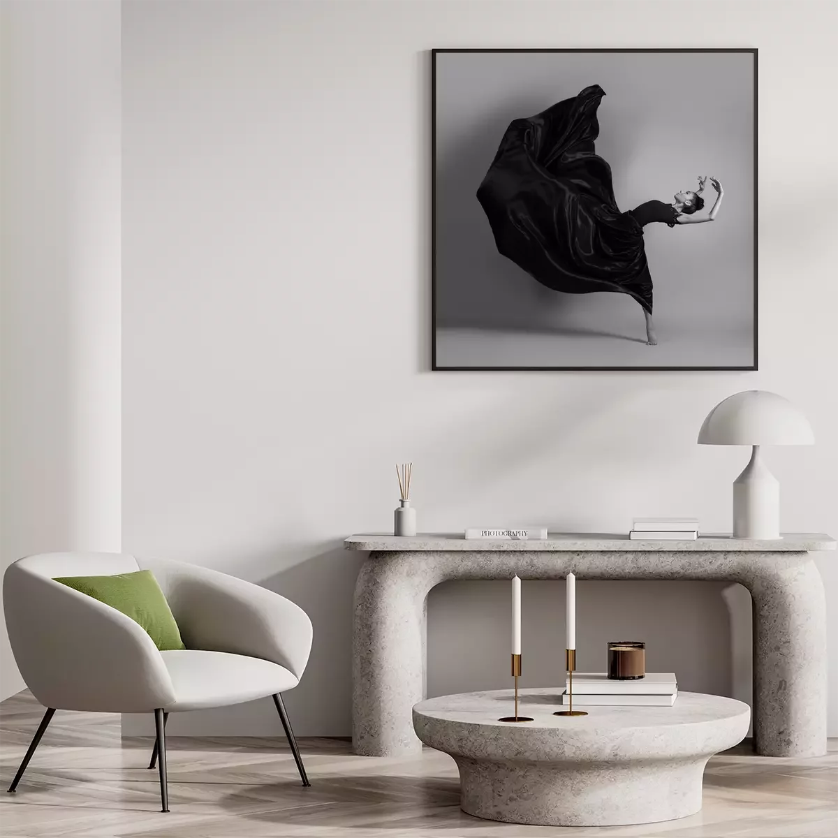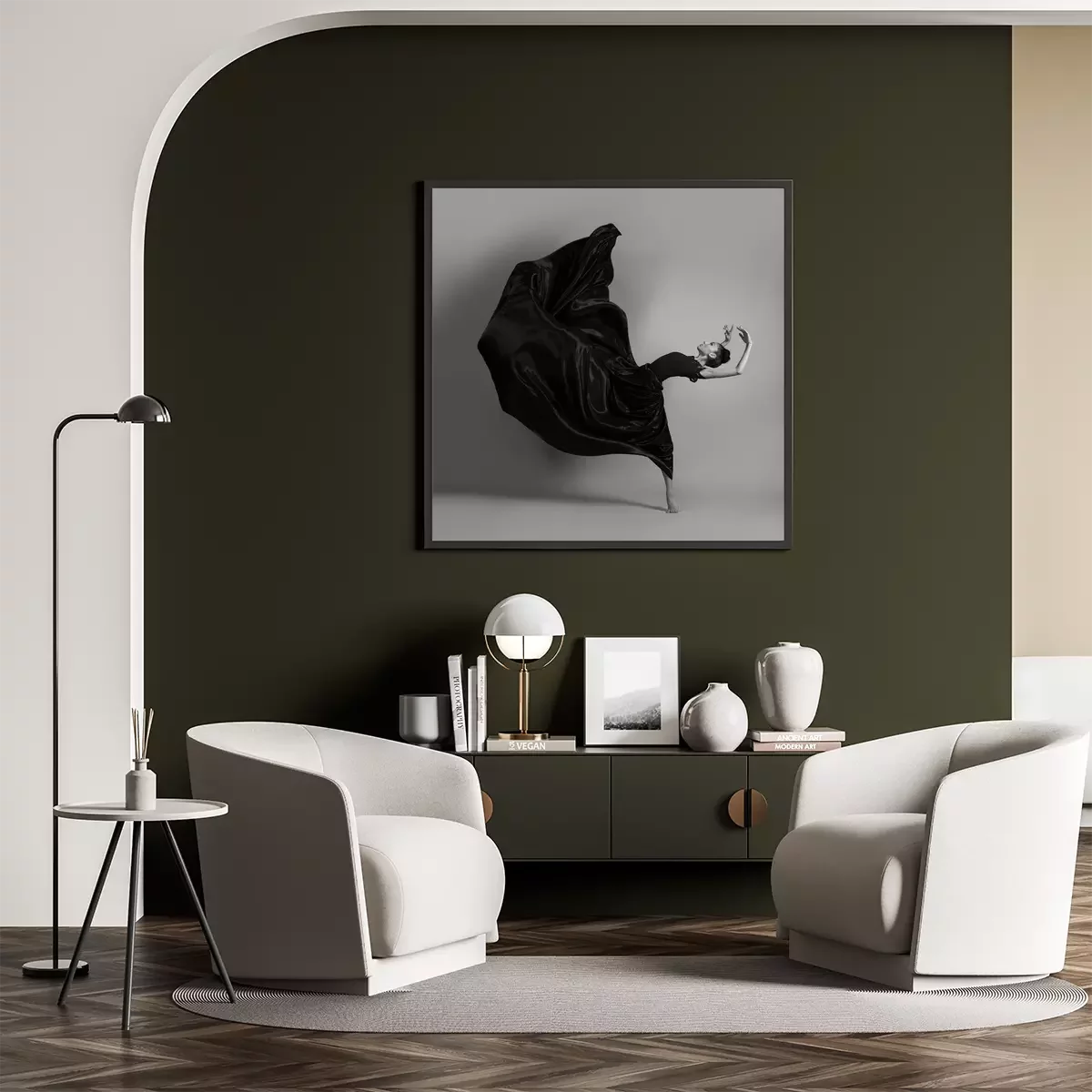 Poster : Ballerine en robe noire volante
