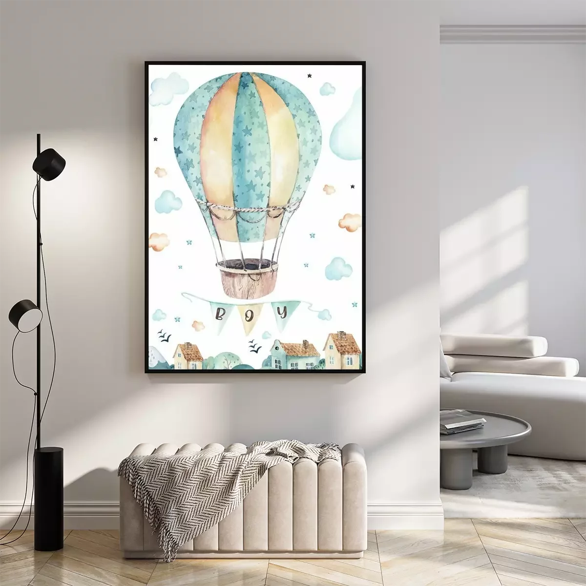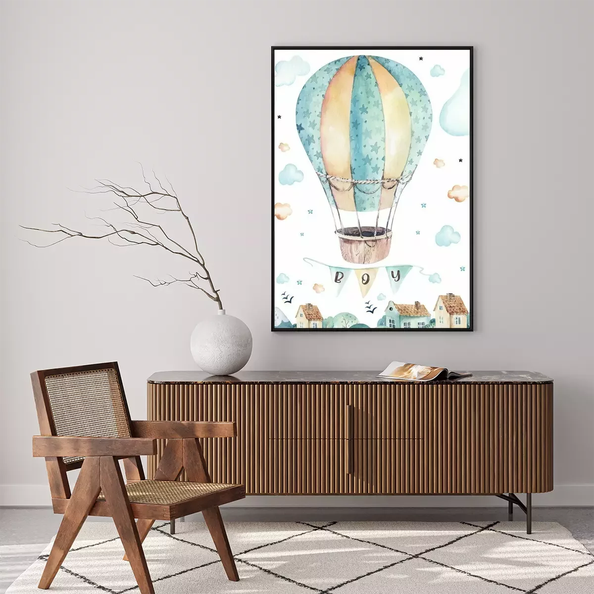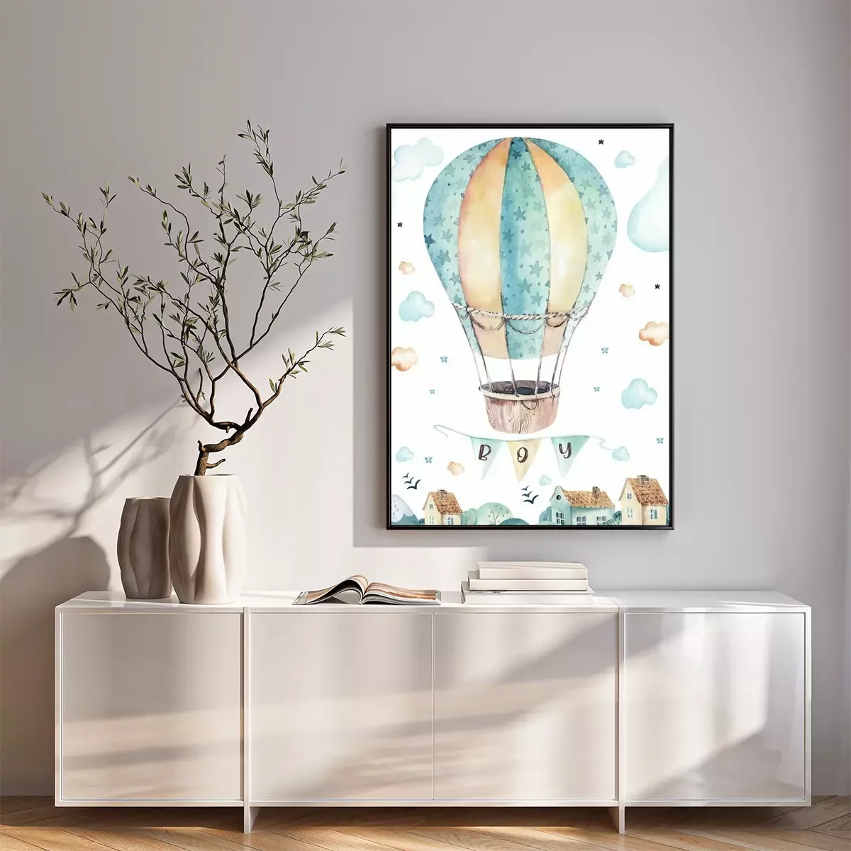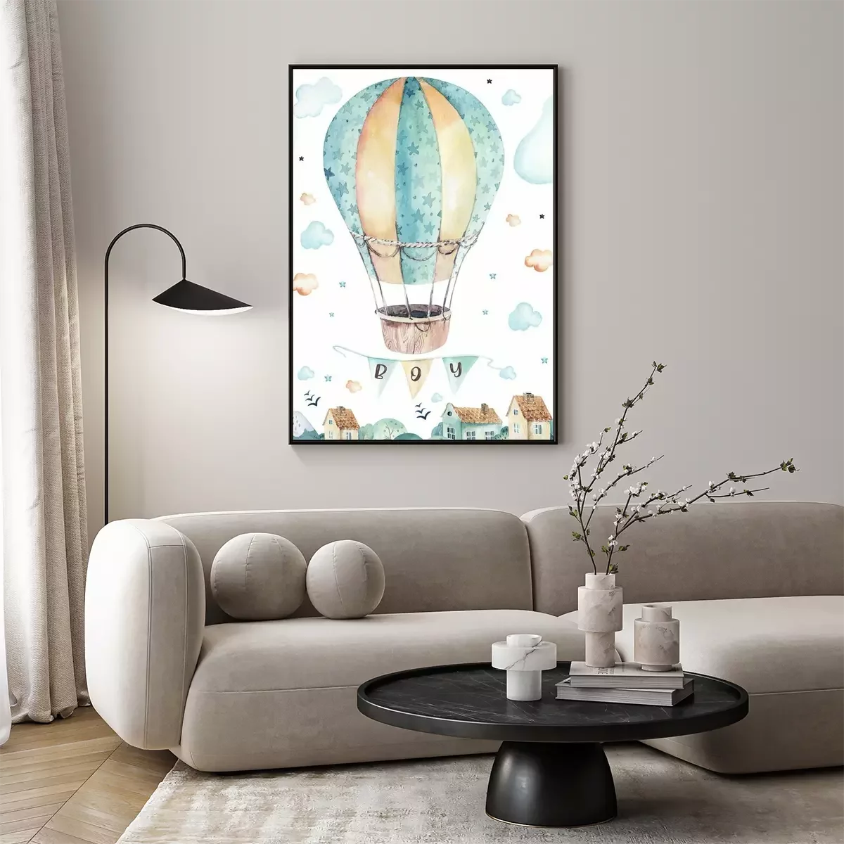 Avions, Montgolfières et ballons entre des nuages version aquarelleLivraison sans problème assurée par des transporteurs de confiance