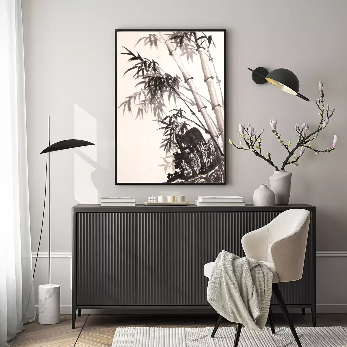 Poster  Bambou clair avec des branches sombres