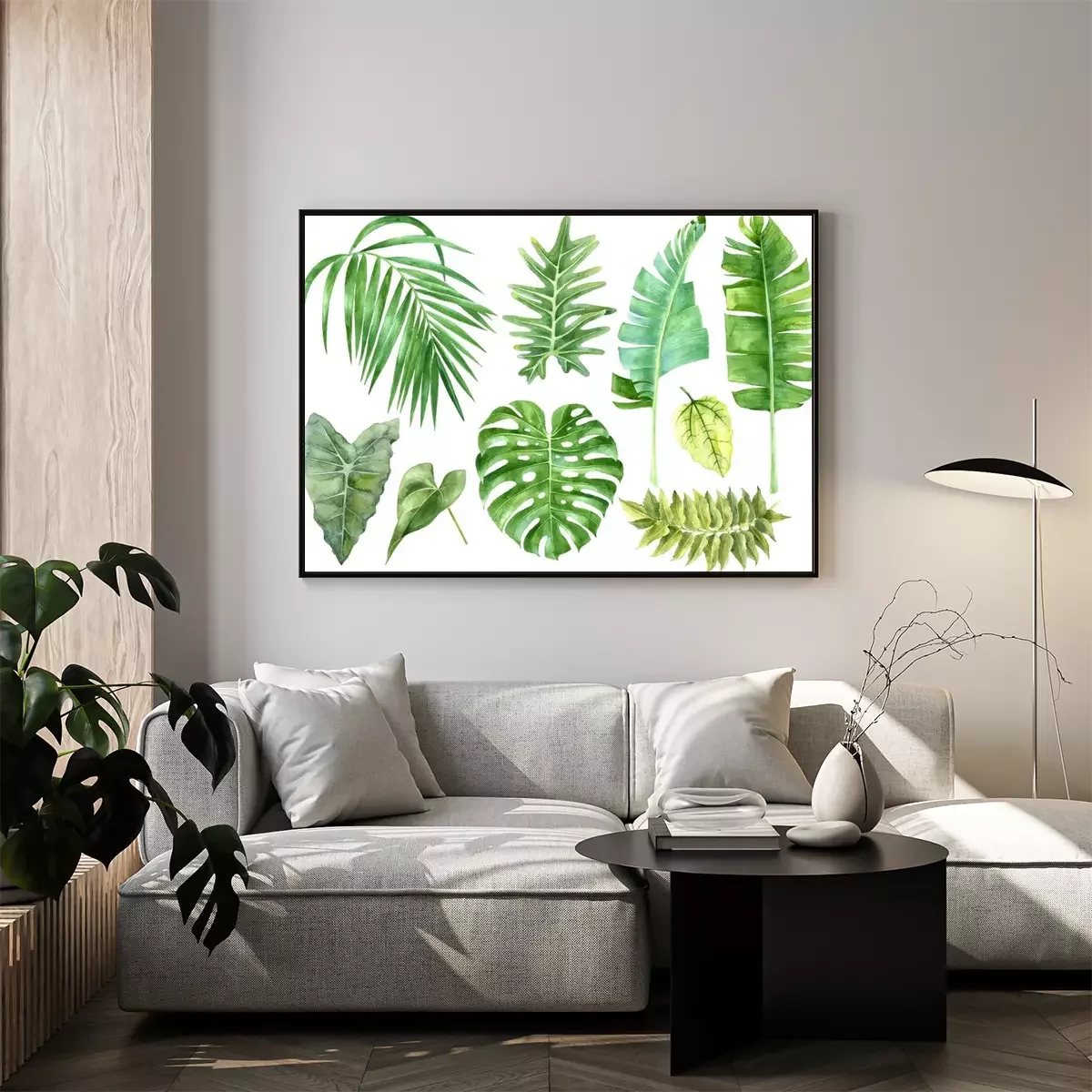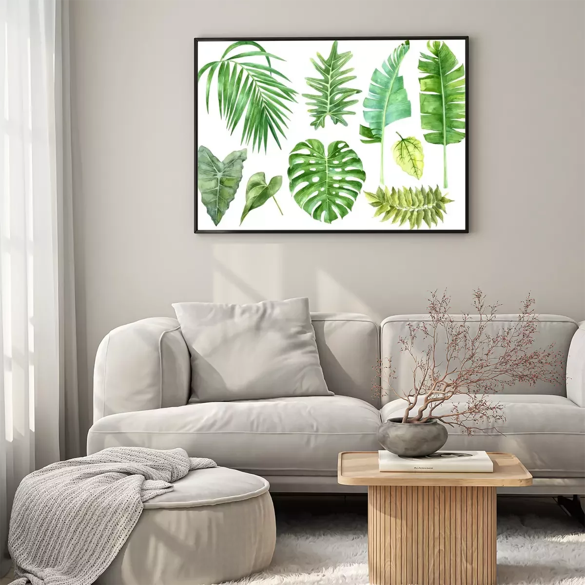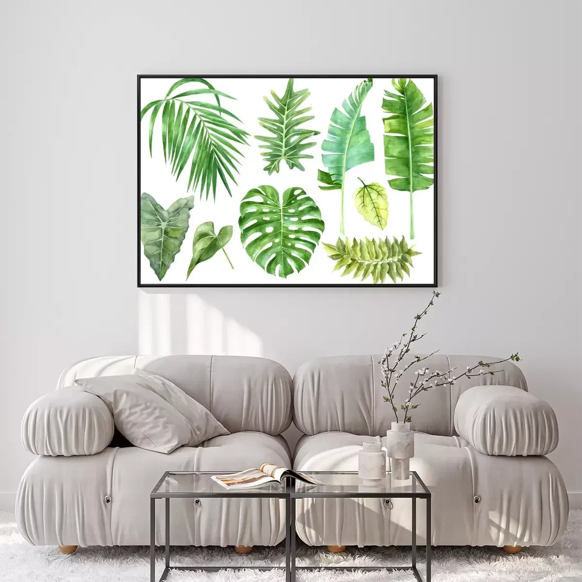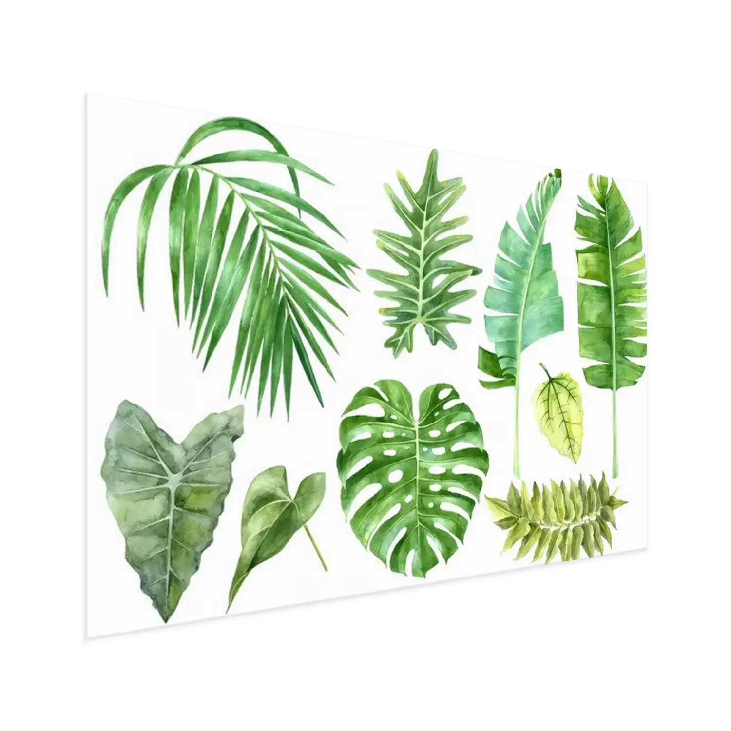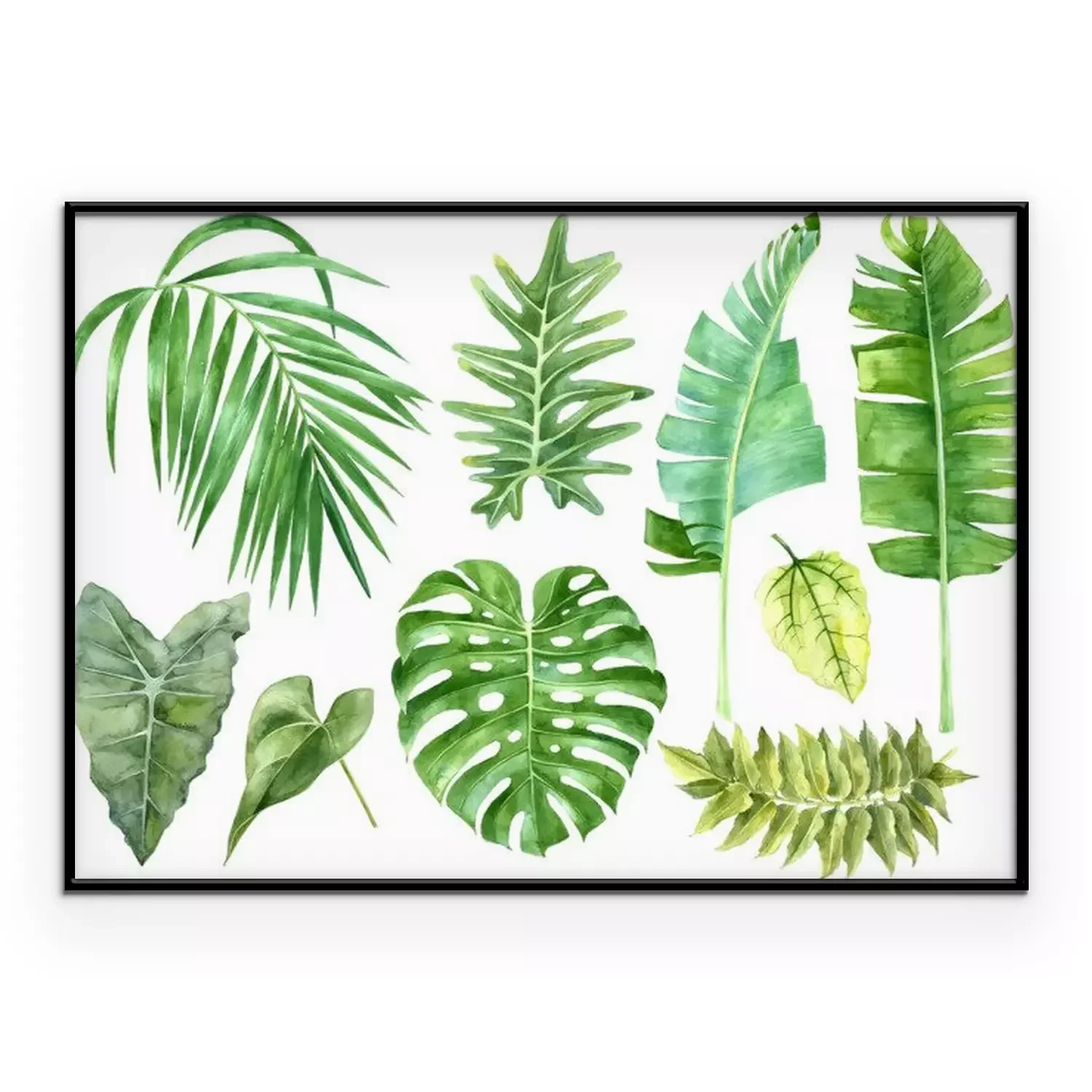 Poster : Banane verte, monstera et feuilles de palmier dans une édition aquarelle