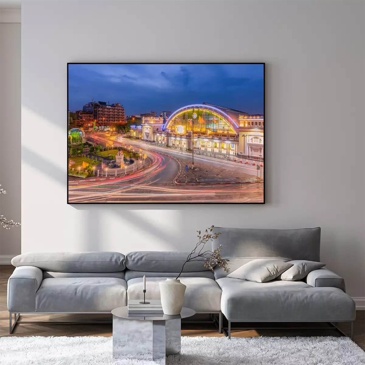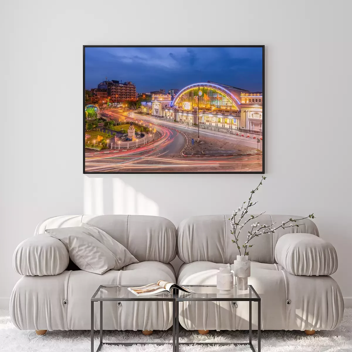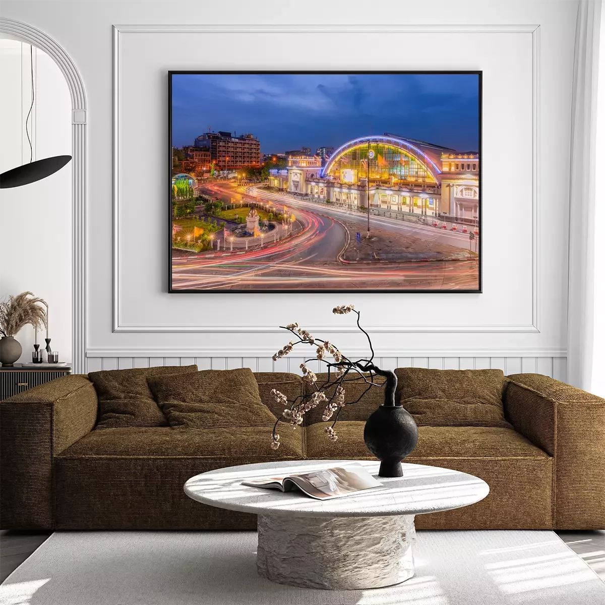 Poster  Bangkok Railway Station (Hua Lamphong Railway Station,MRT) and traffic at night in Bangkok, Thailand.