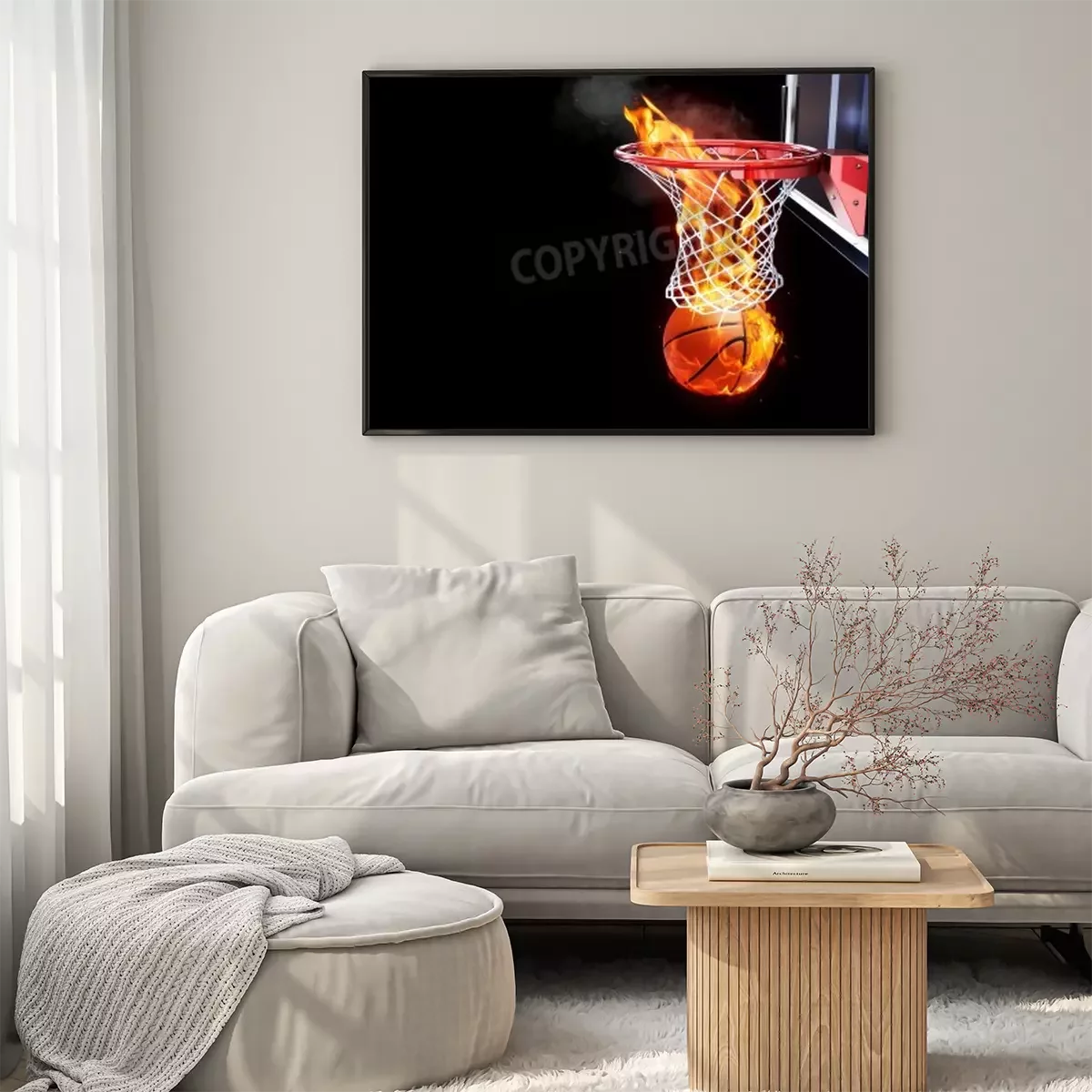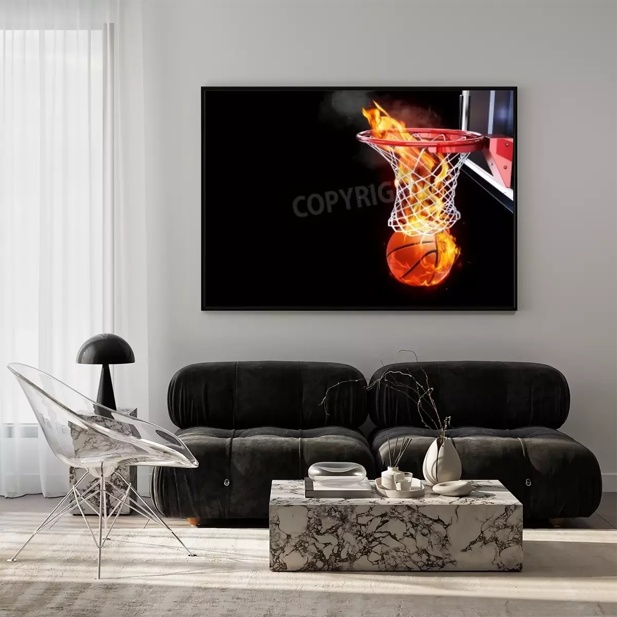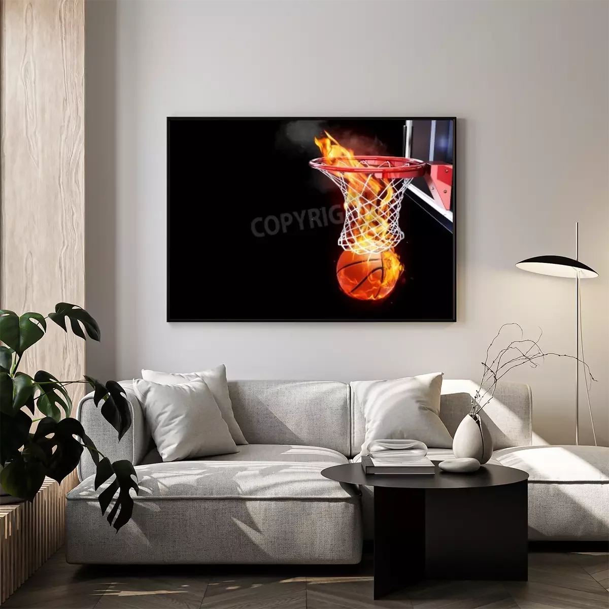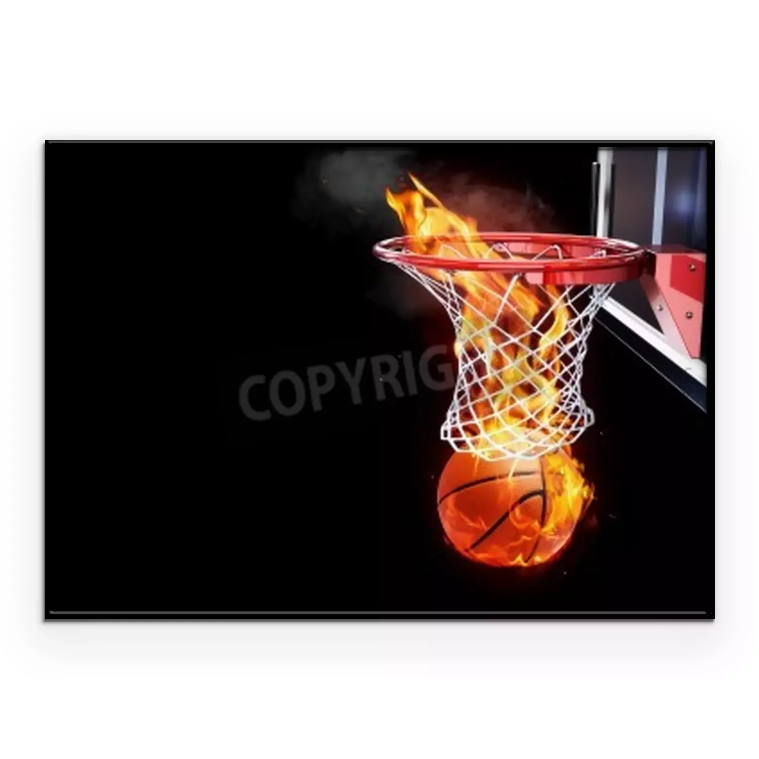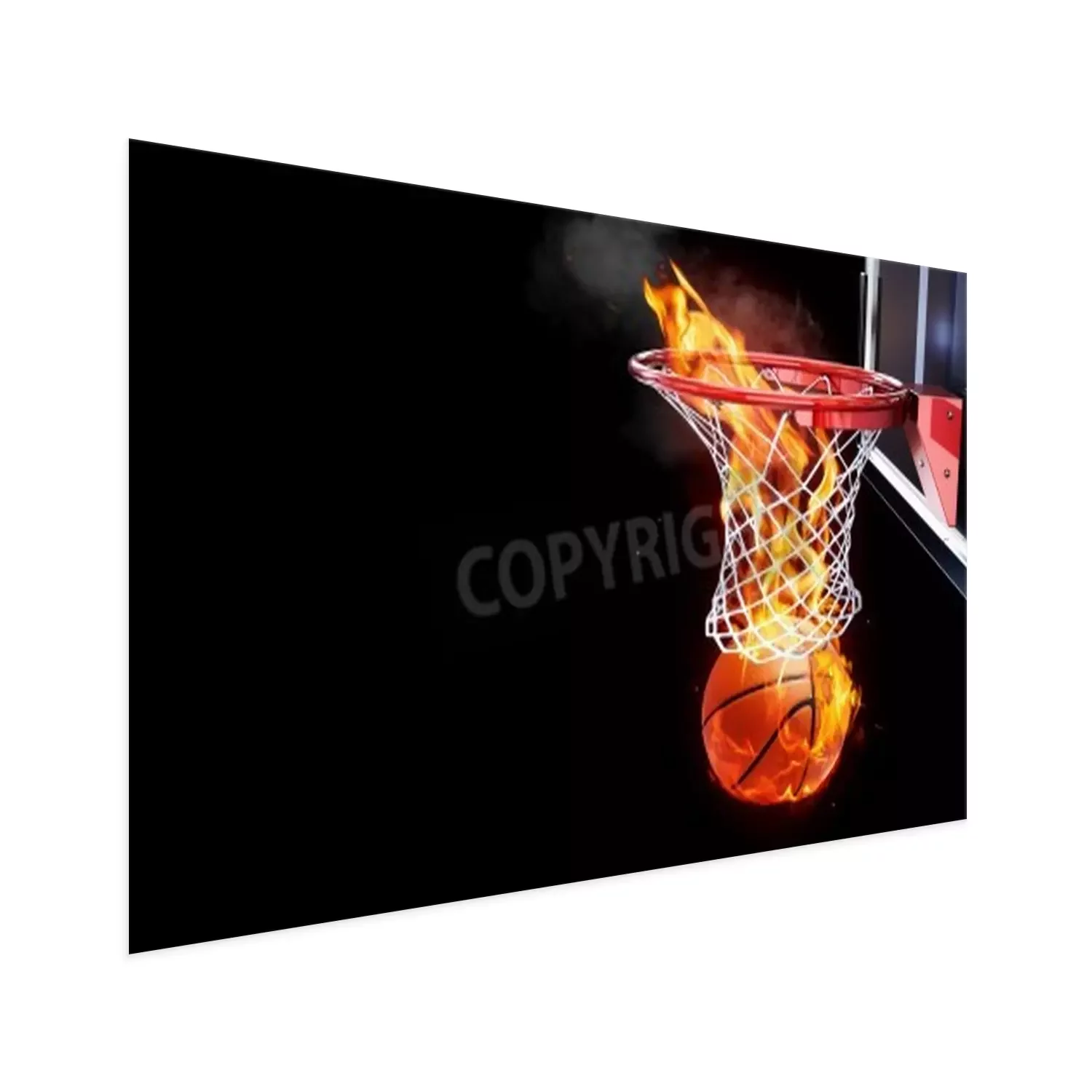 Poster  Basket Flaming passer par une chambre de filet de la cour pour le texte ou une copie espace sur un fond noir