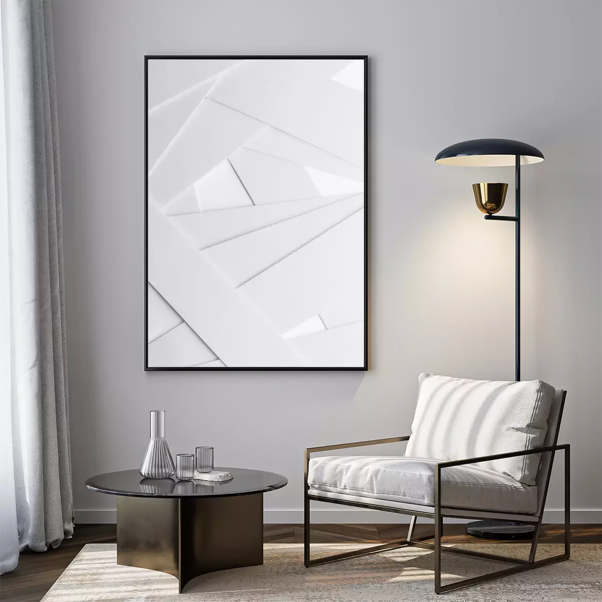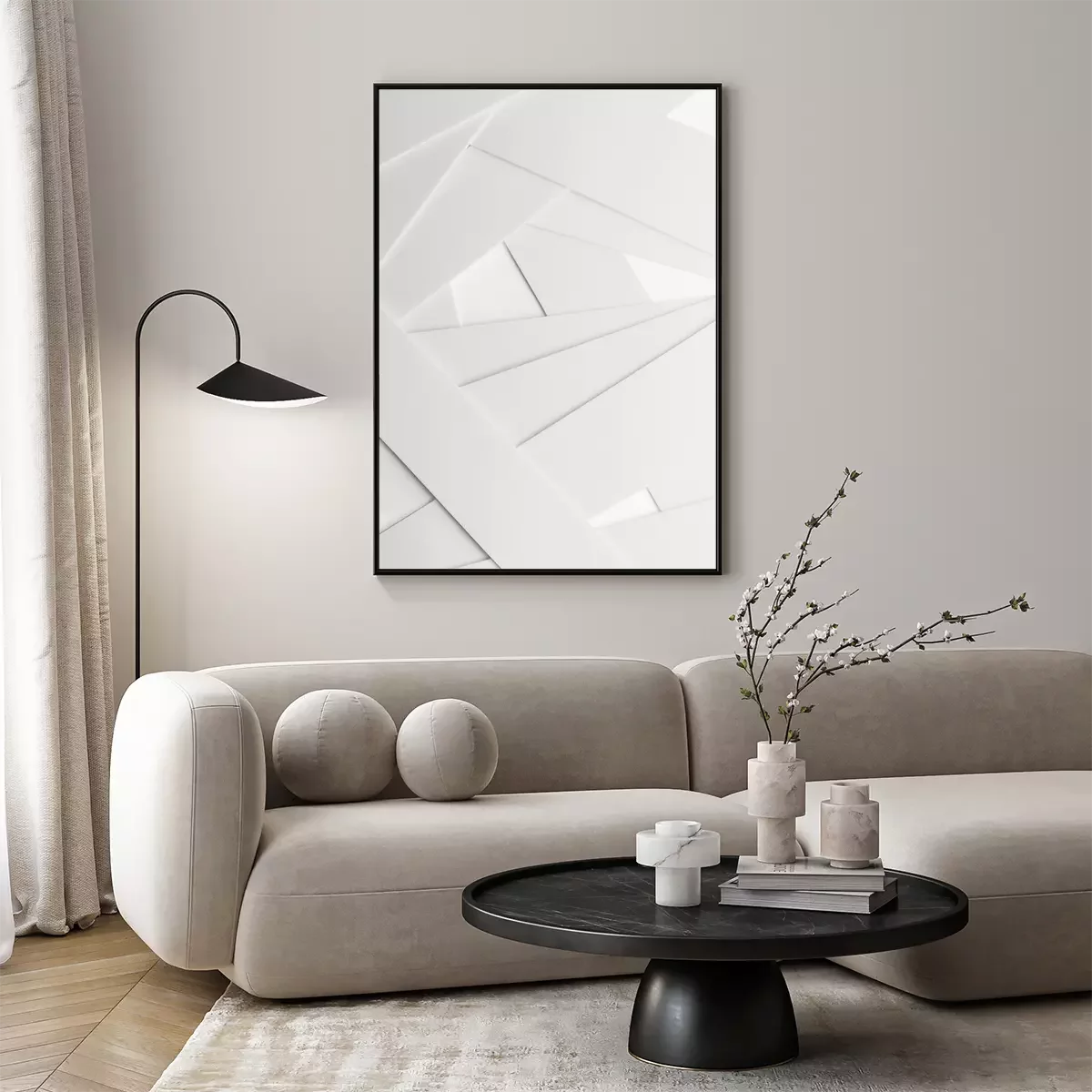 Poster : Basse composition géométrique avec des éléments blancs, abstrait