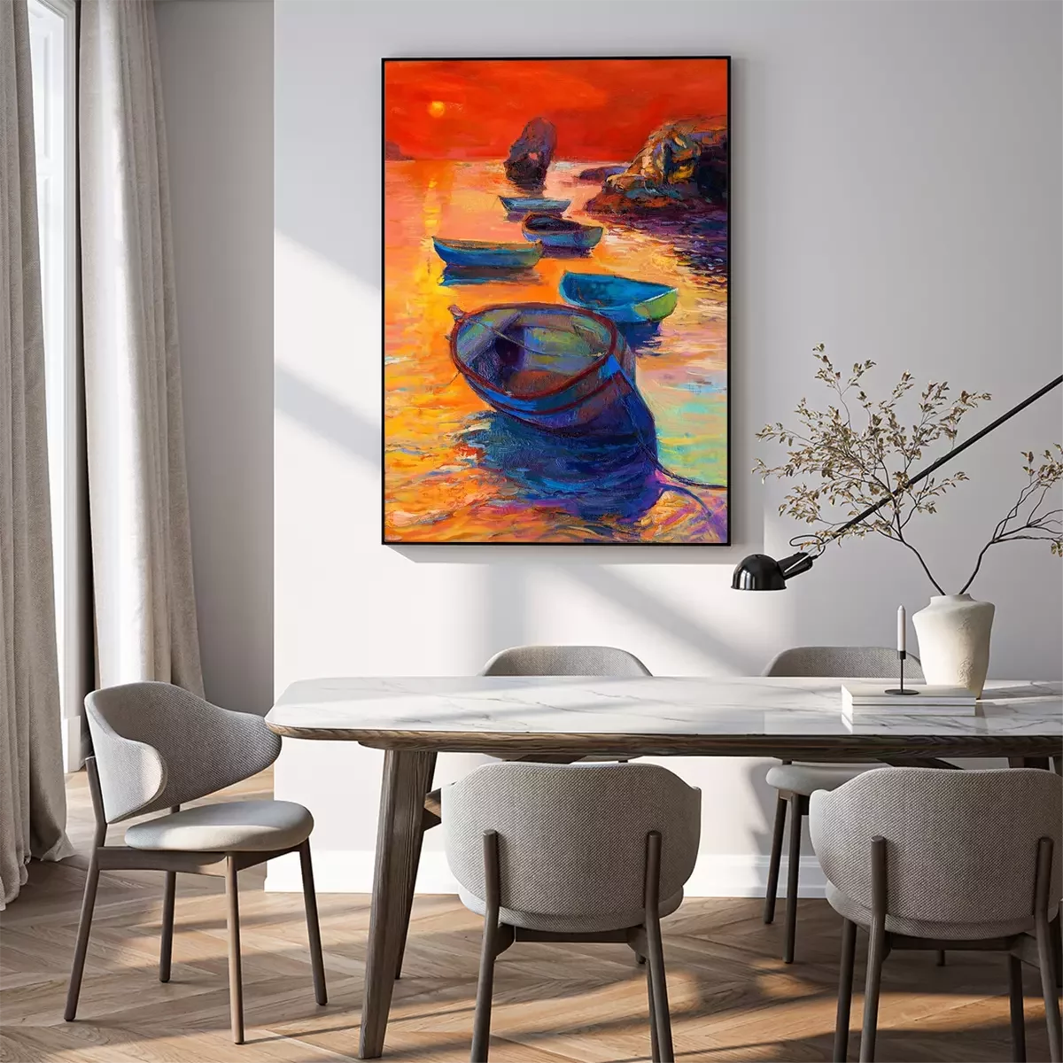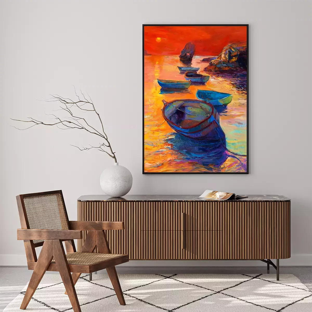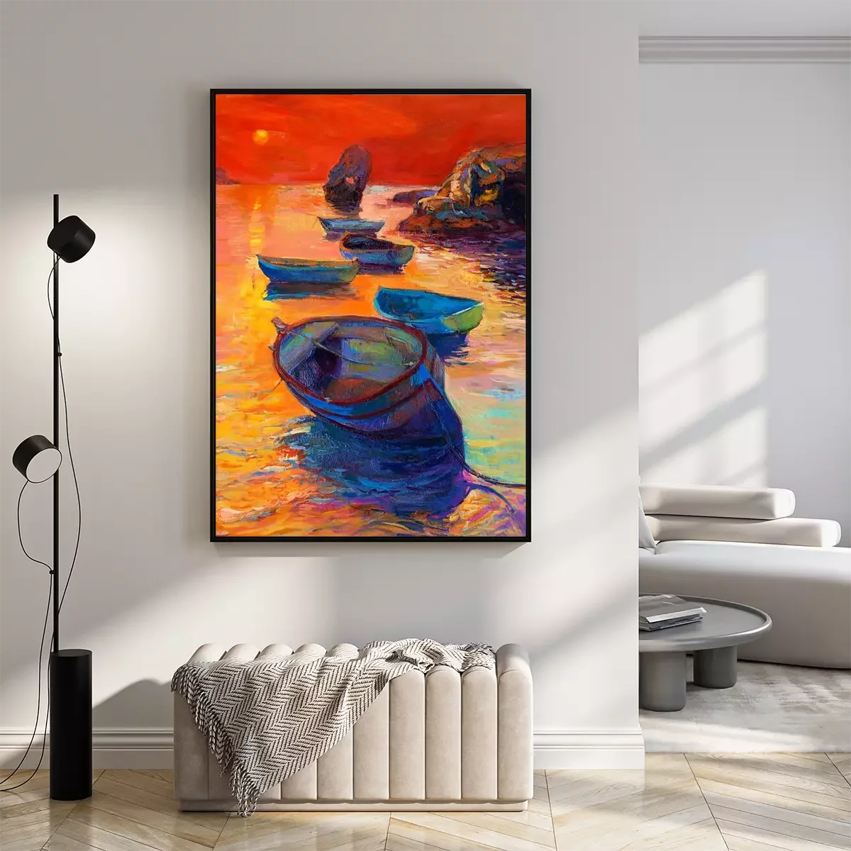 Poster : Bateaux de pêche et coucher de soleil
