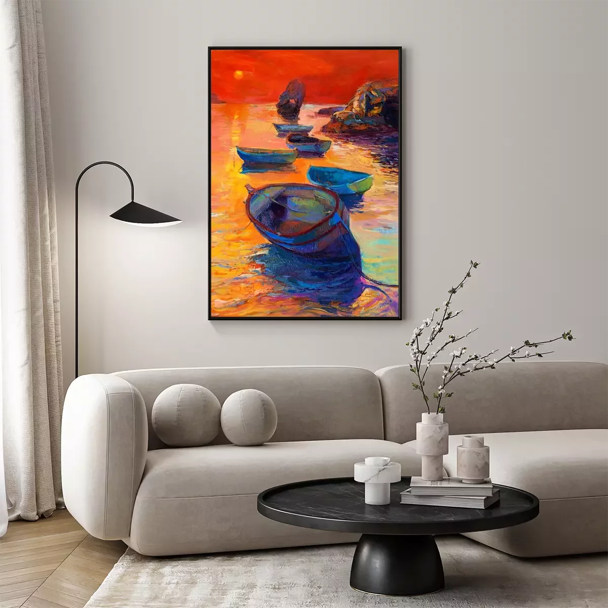 Poster  Bateaux de pêche et coucher de soleil